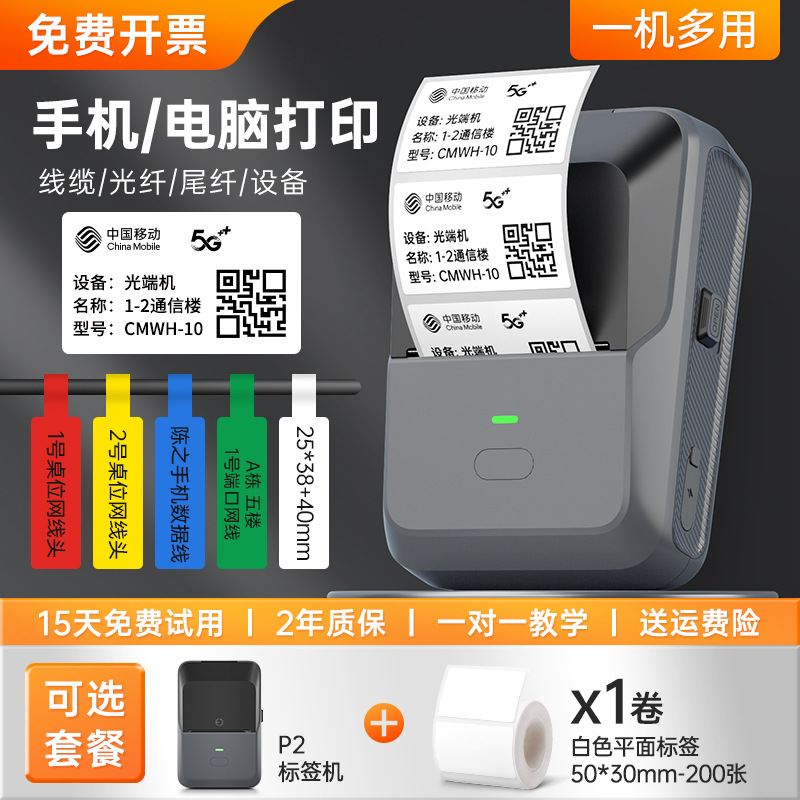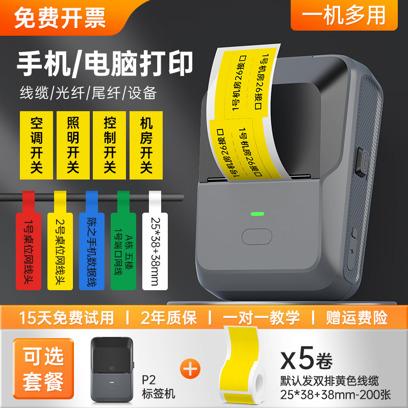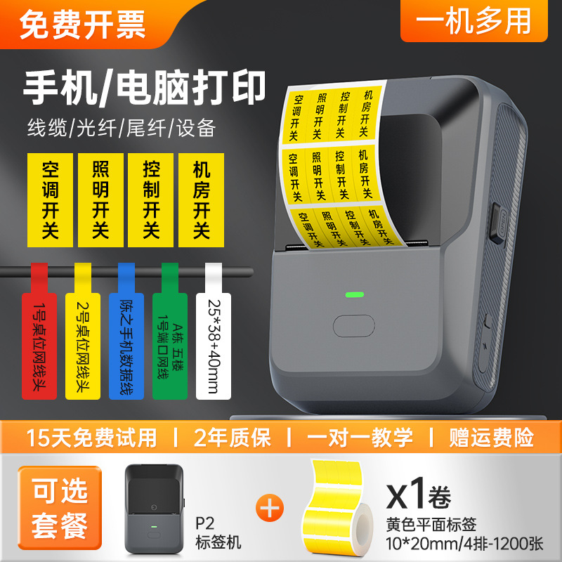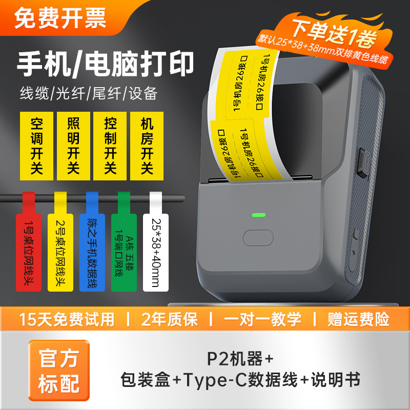 • P2+에는 2열 케이블 노란색 라벨 1롤이 포함되어 있습니다. [총 200매]