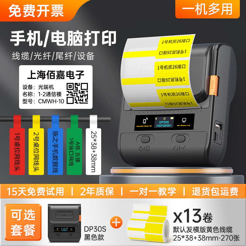 • DP30S [와이드 프린팅 + 컬러 스크린 디스플레이] + 가로 보드 케이블 라벨 13롤 [총 3510매]