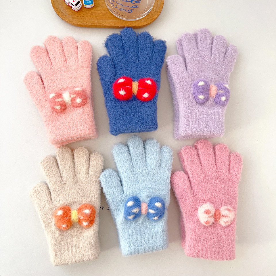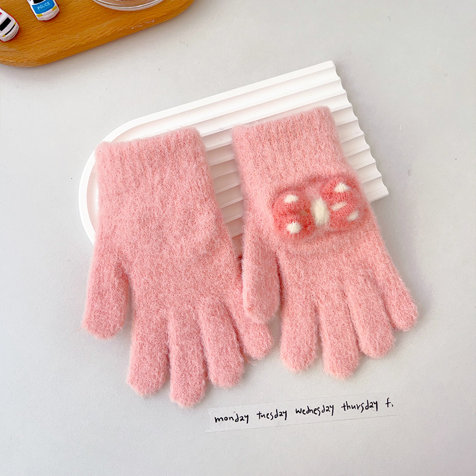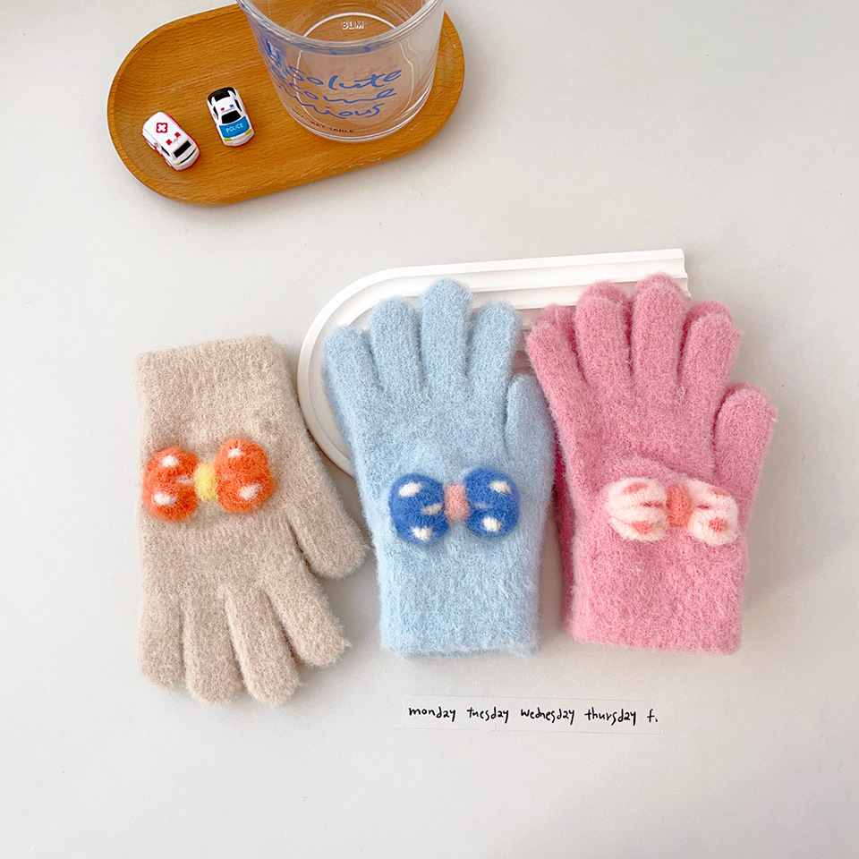가을과 겨울의 초등학생을위한 한국식 귀여운 니트 모직 장갑 한랭 방지 어린이 따뜻한 글쓰기 사이클링 손가락