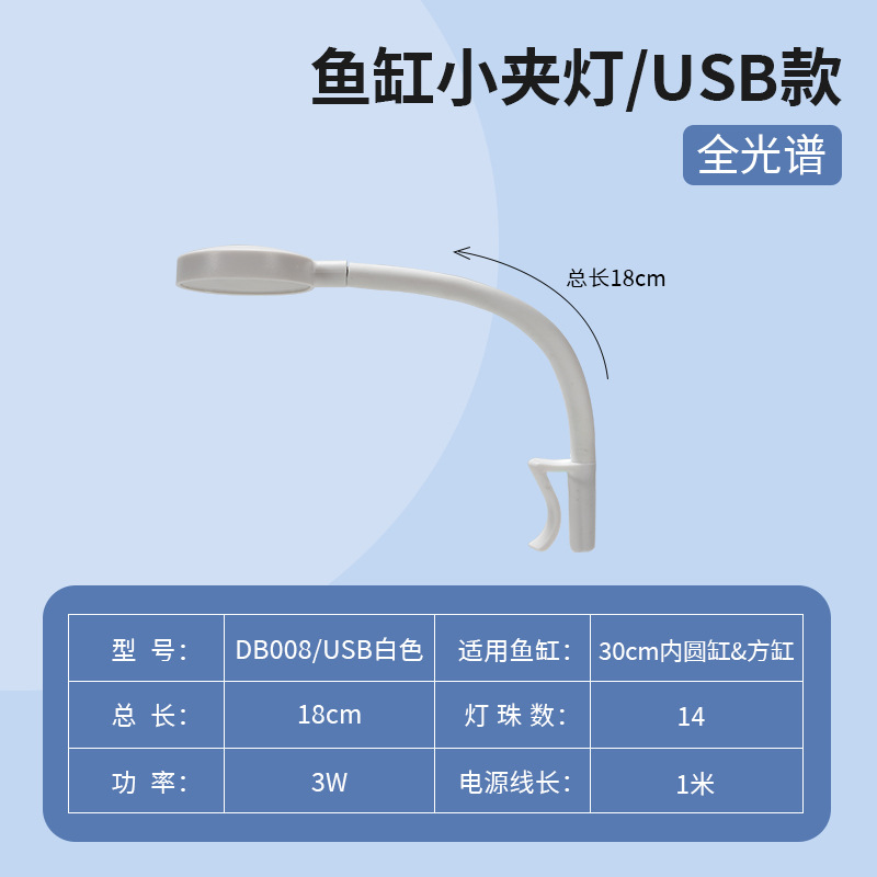 물고기 탱크 산호 빛 바다 탱크 보기 물고기 탱크 빛 작은 클립 빛 전체 스펙트럼 조명 물 잔디 빛 USB 플러그 Led 빛