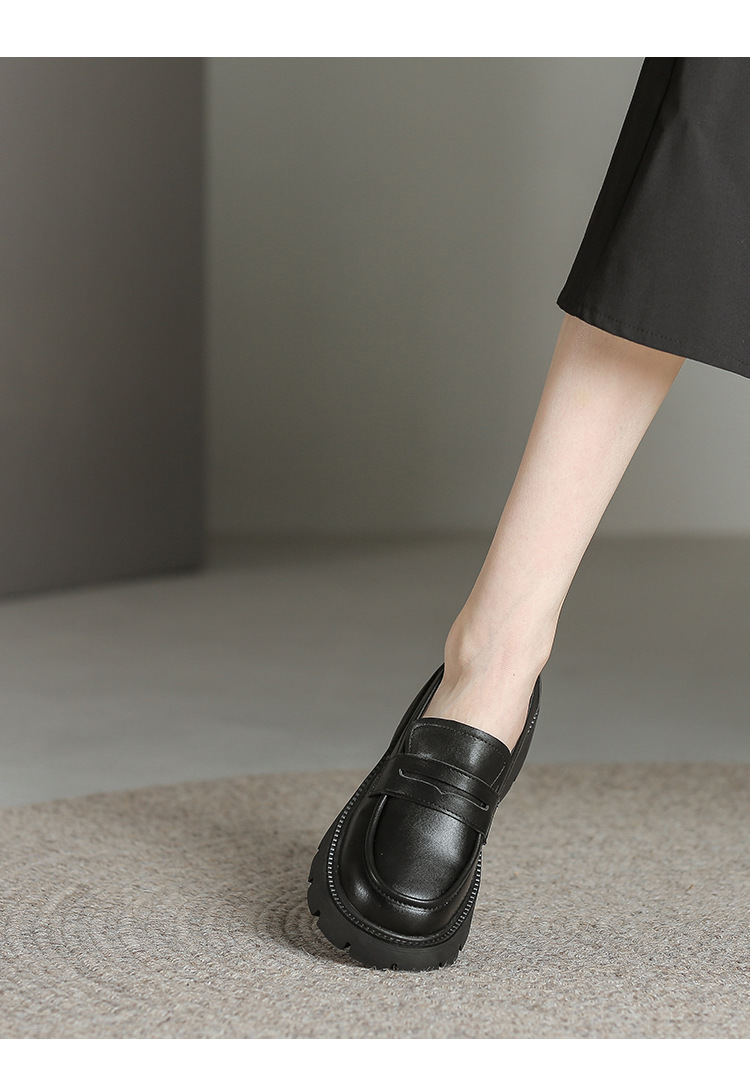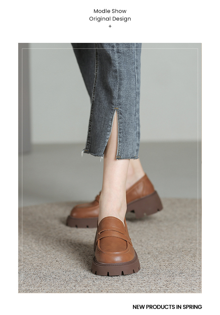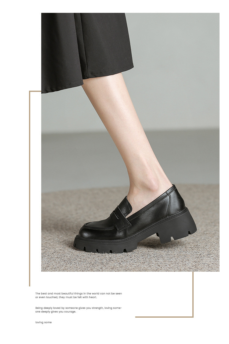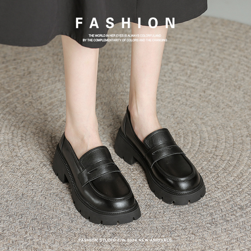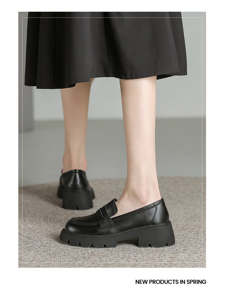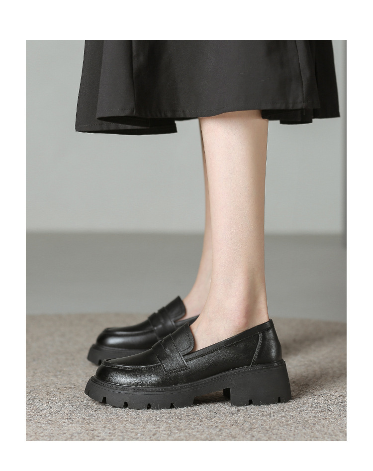 여성용 로퍼 영국 작업 슬립 온 가죽 간단한 봄과 가을 두꺼운 신발 요정 올 매치 소프트 착용 작은 가죽 신발스토어 가기