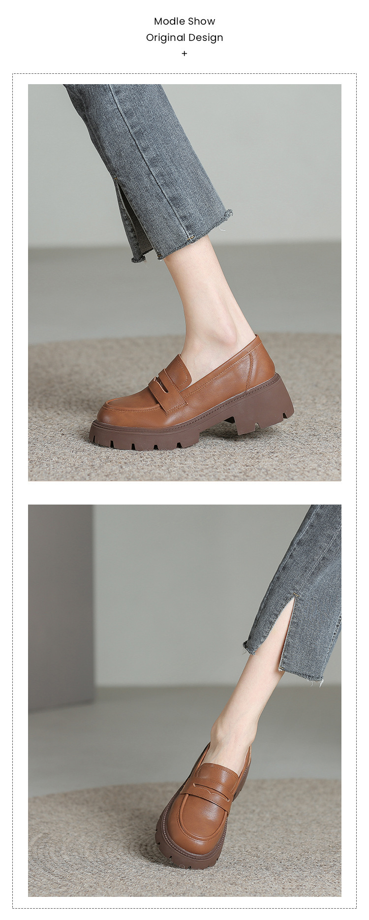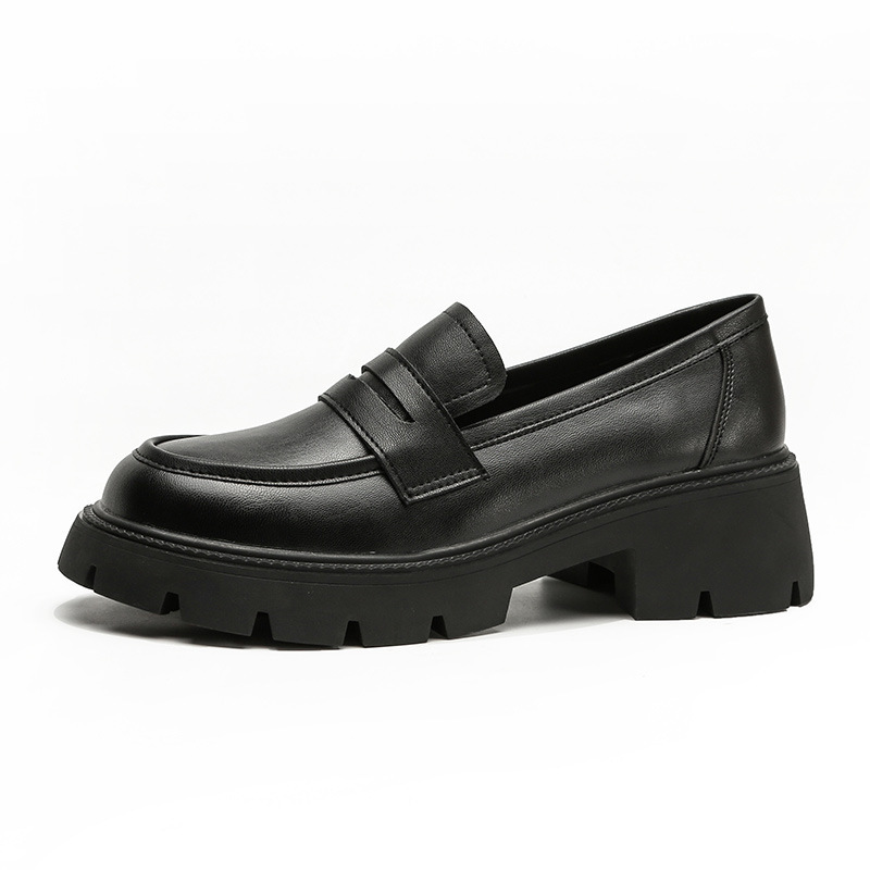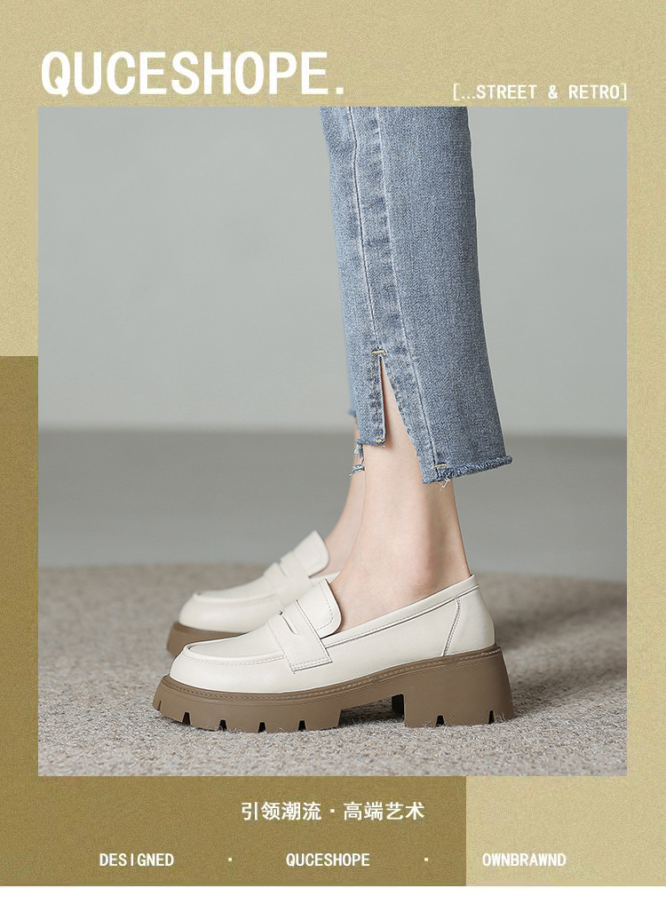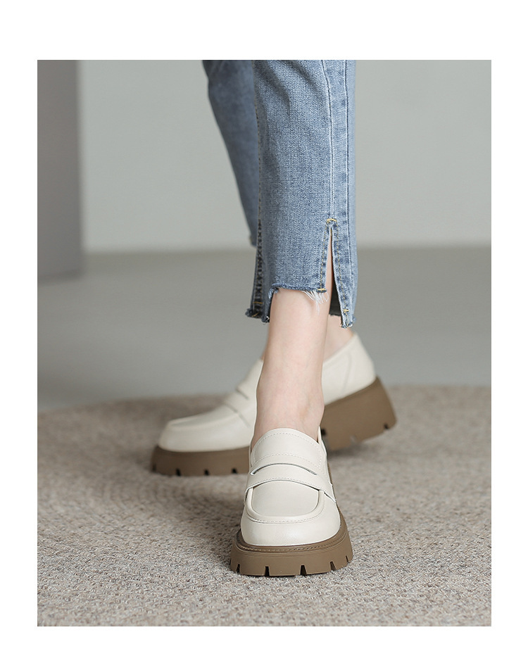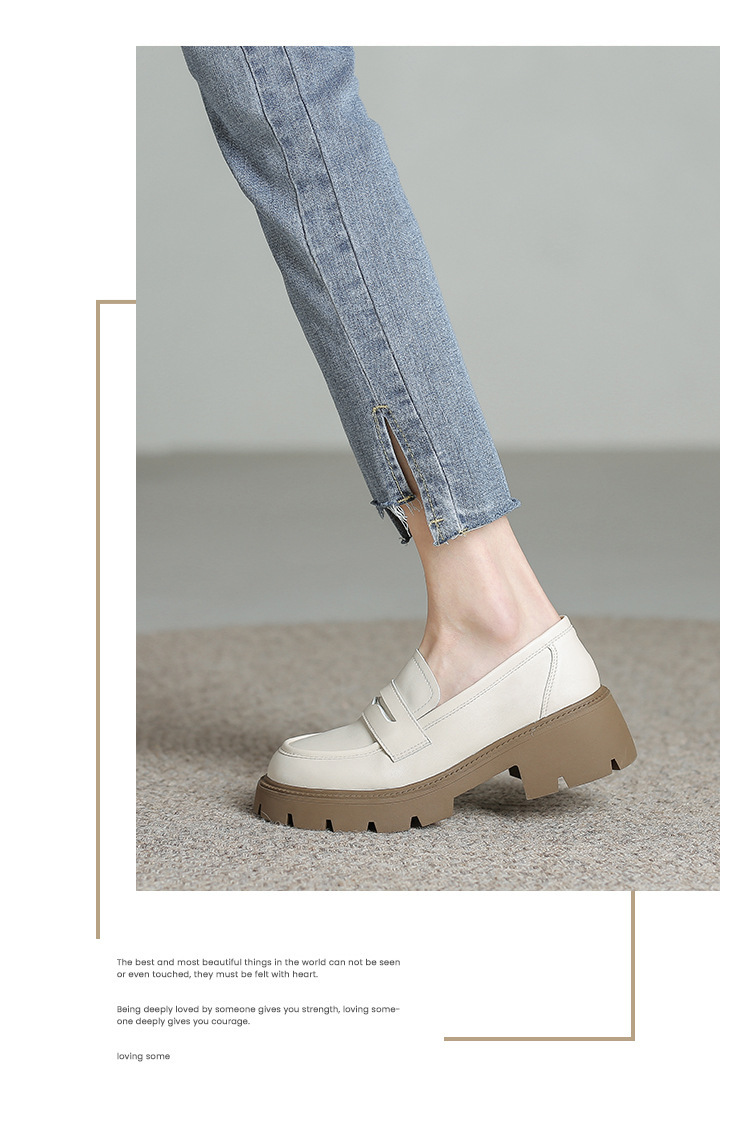 여성용 로퍼 영국 작업 슬립 온 가죽 간단한 봄과 가을 두꺼운 신발 요정 올 매치 소프트 착용 작은 가죽 신발스토어 가기