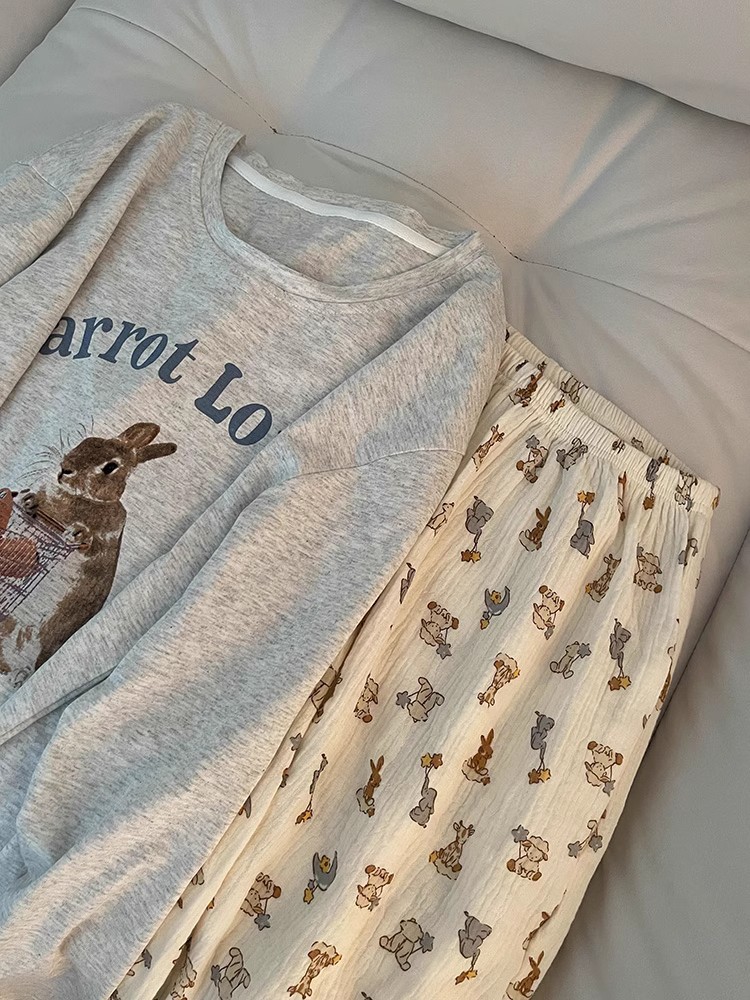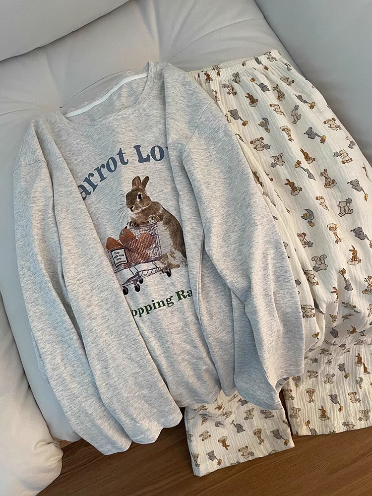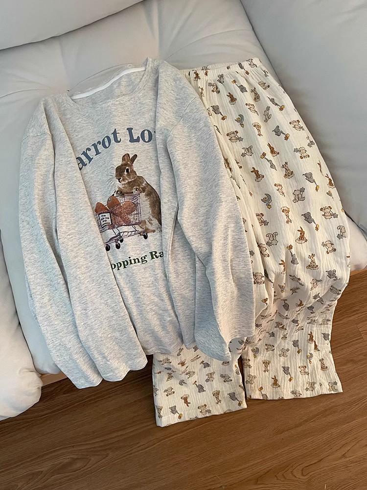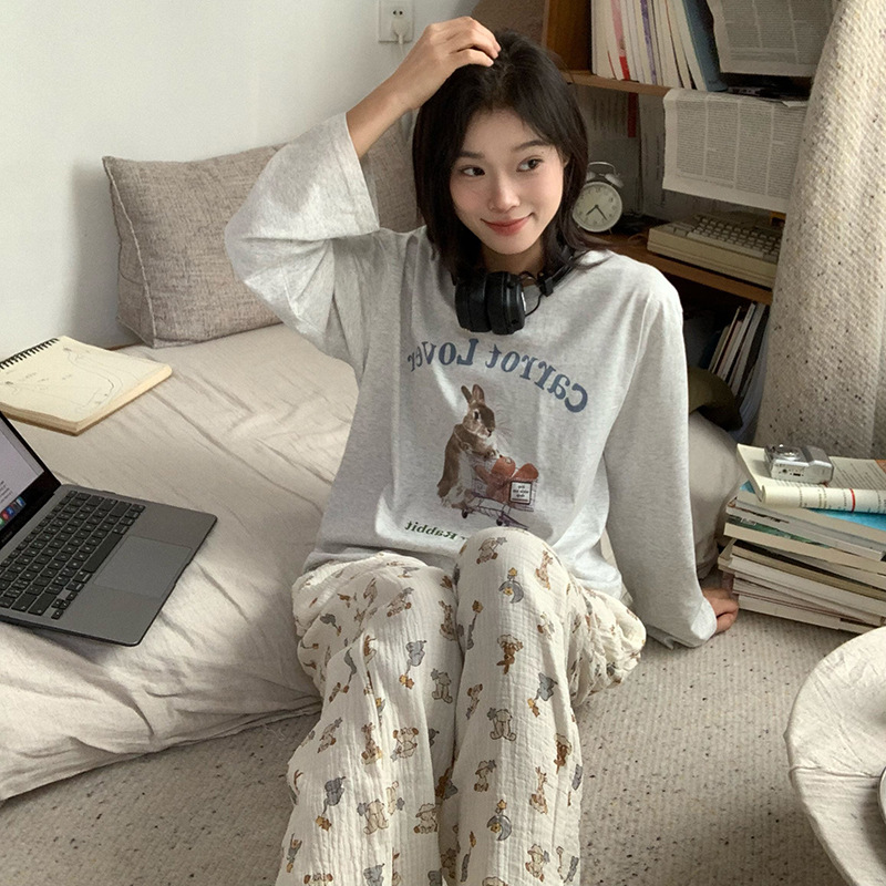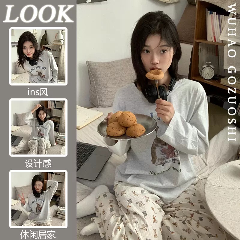 대외 무역 국경 인터넷 연예인 라이브 방송 한국 스타일 봄 가을 긴 소매 달콤한 파자마 여성 느슨한 홈 의류 세트 겨울스토어 가기