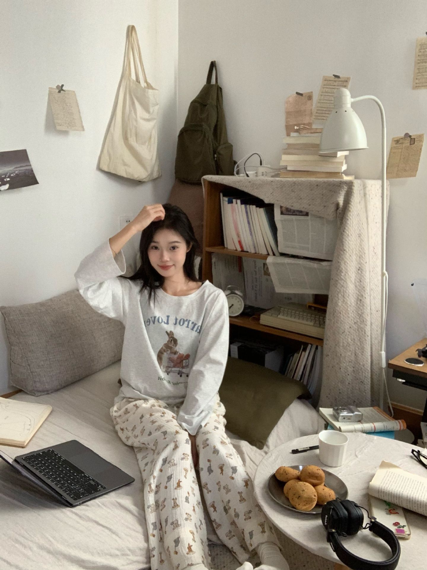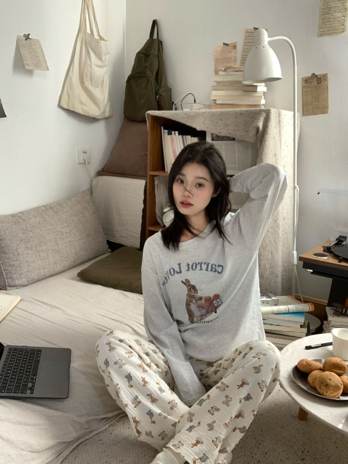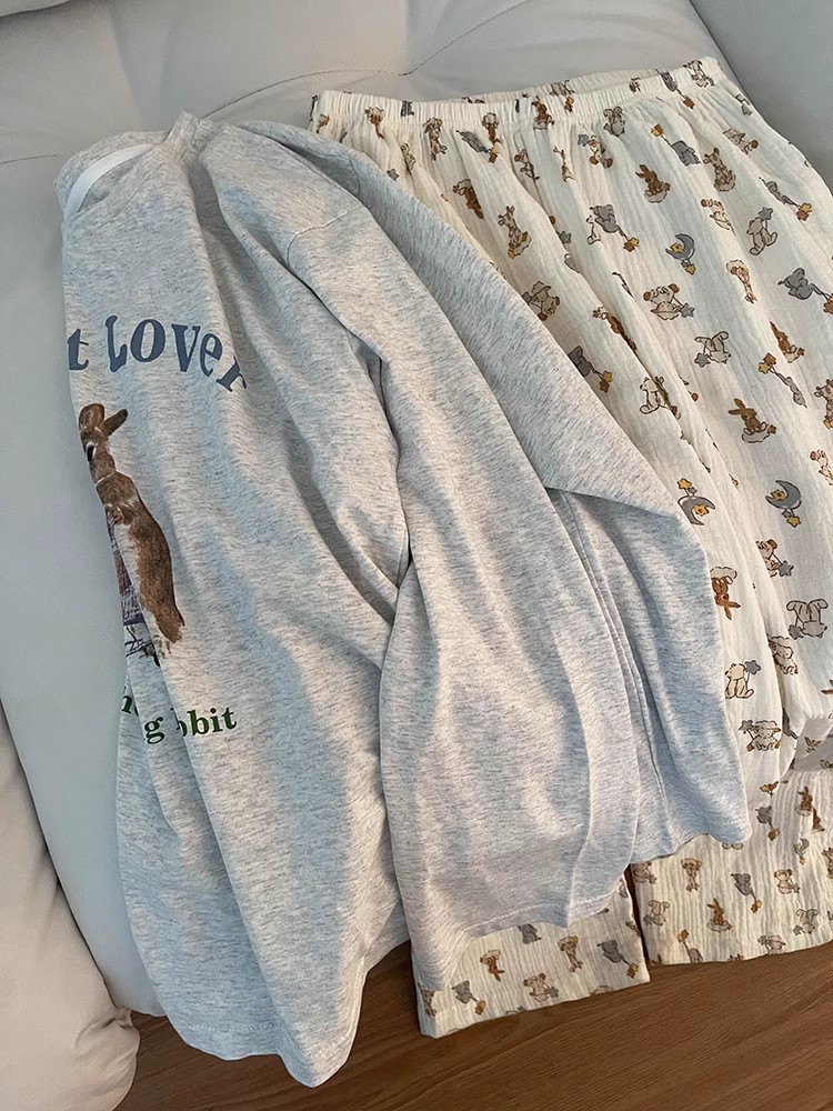 대외 무역 국경 인터넷 연예인 라이브 방송 한국 스타일 봄 가을 긴 소매 달콤한 파자마 여성 느슨한 홈 의류 세트 겨울스토어 가기