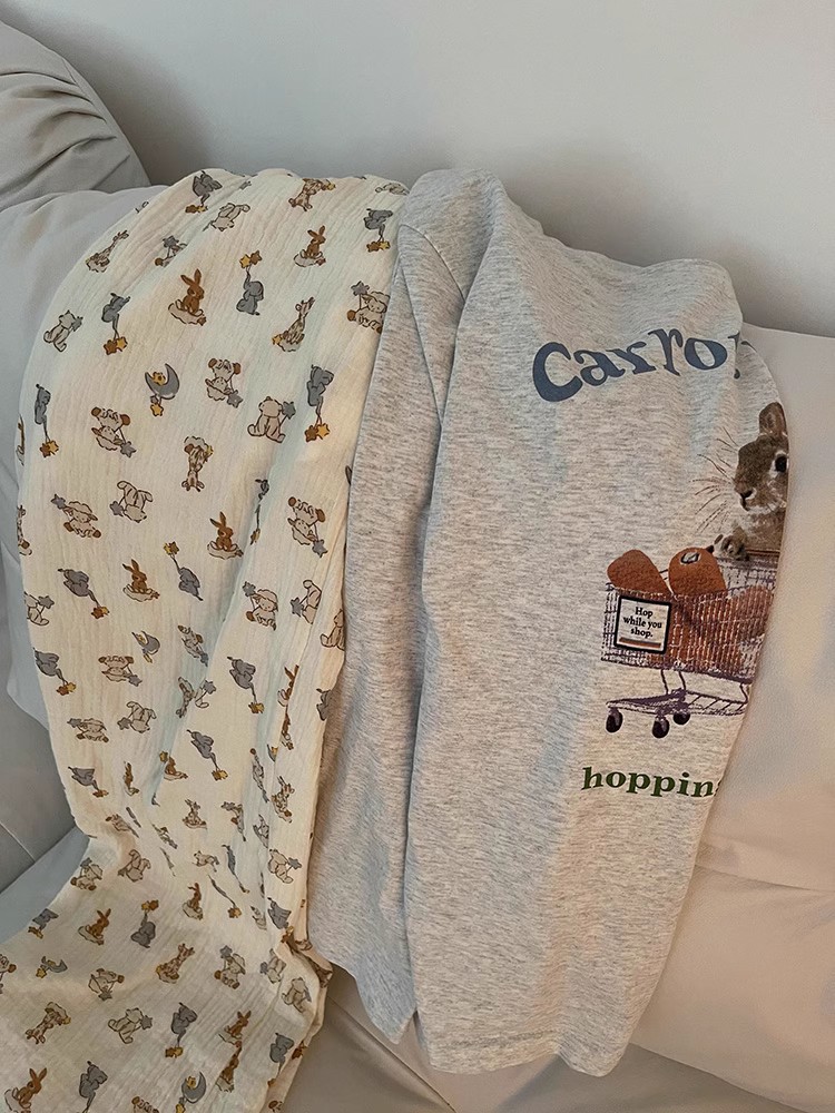 • 회색 토끼 유모차 주름 바지 더블 길이