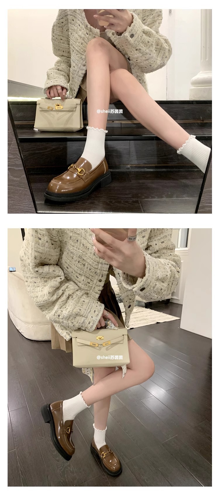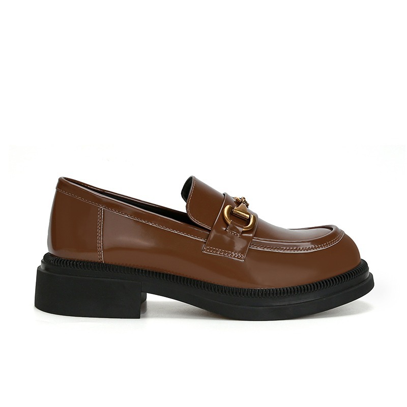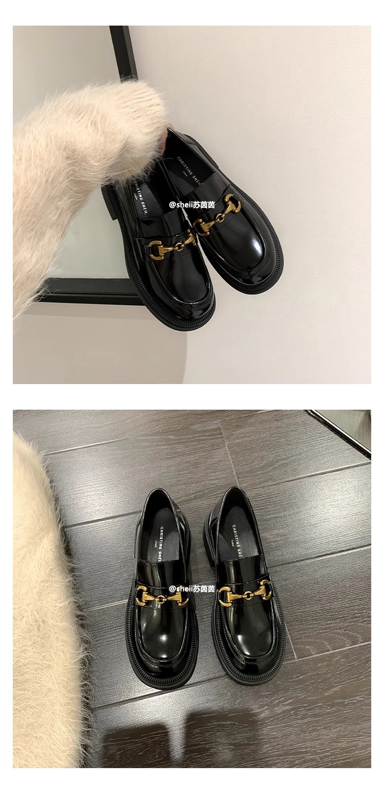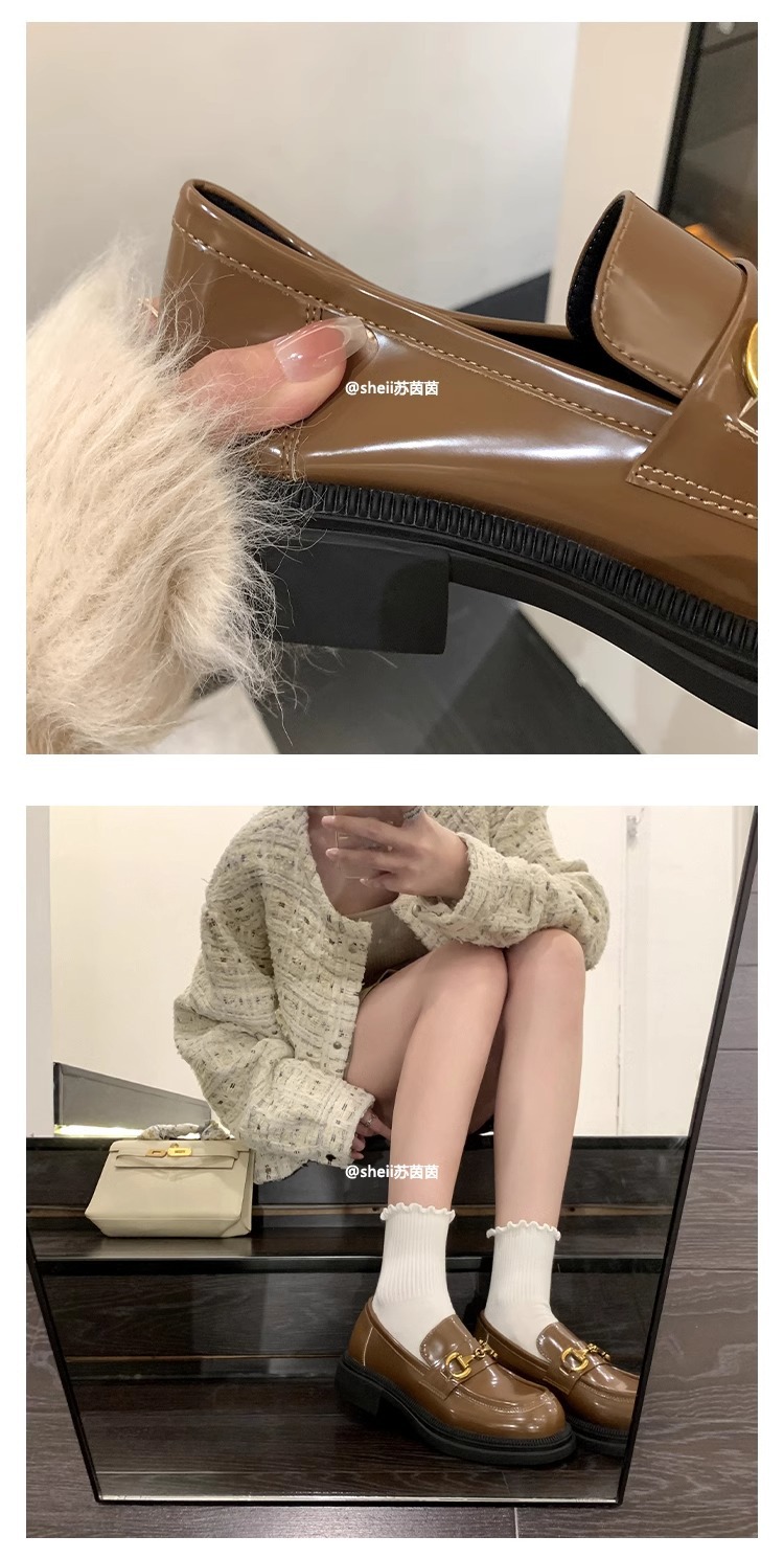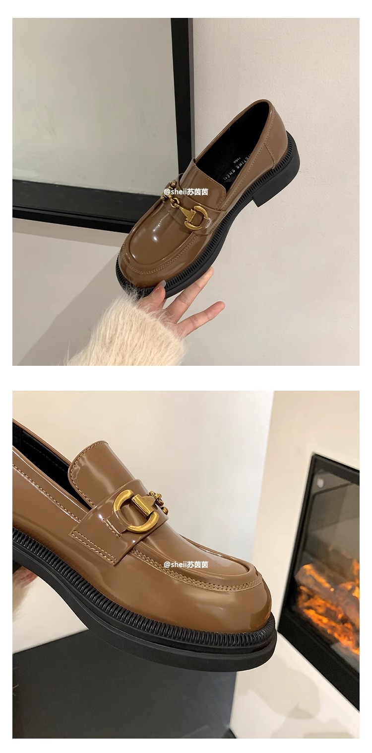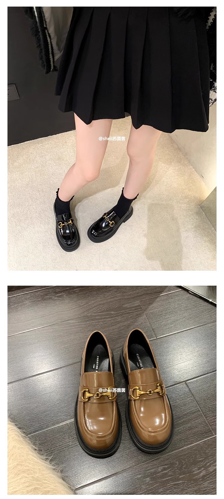 양가죽 버전~브레 팰리스~말굽형 라운드 토 두꺼운 굽 두꺼운 밑창 여성용 가죽 로퍼 신발 가을 겨울 신상 패션스토어 가기