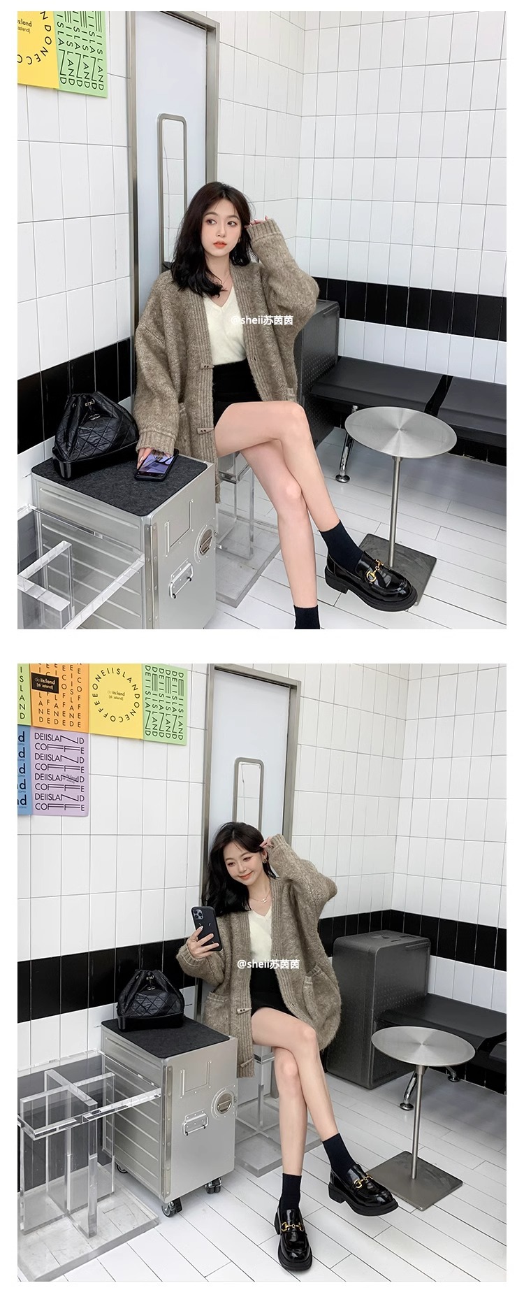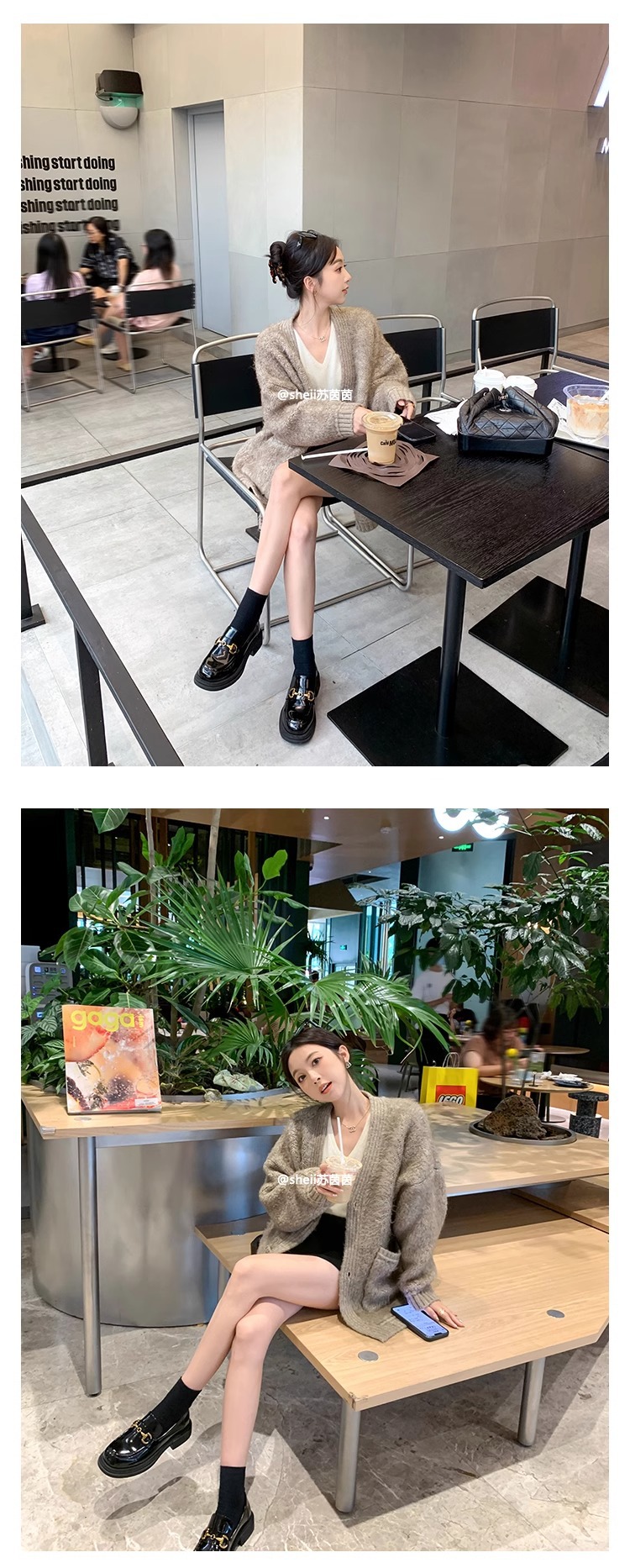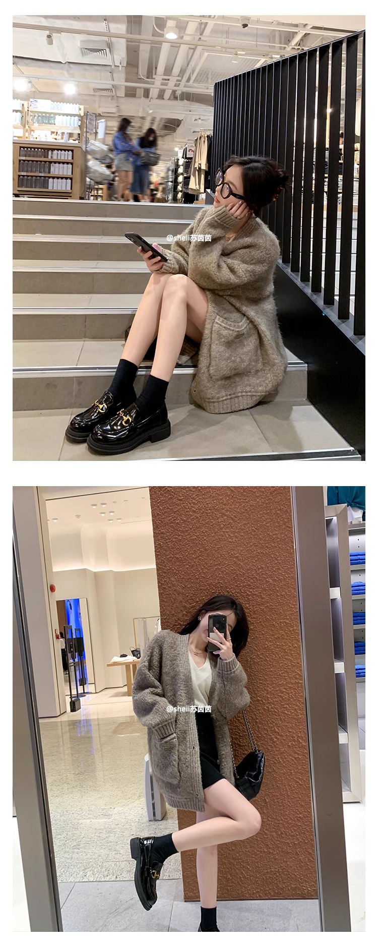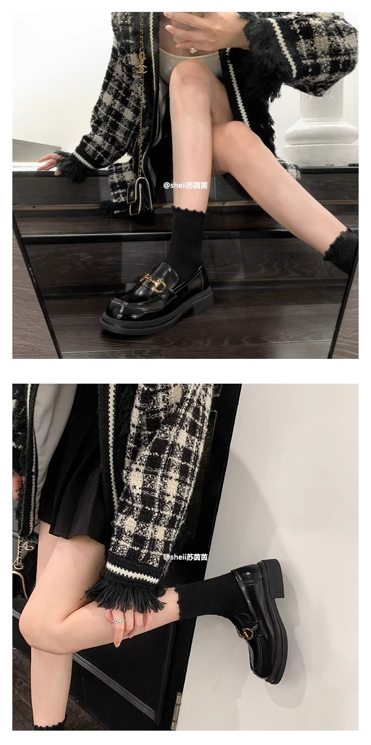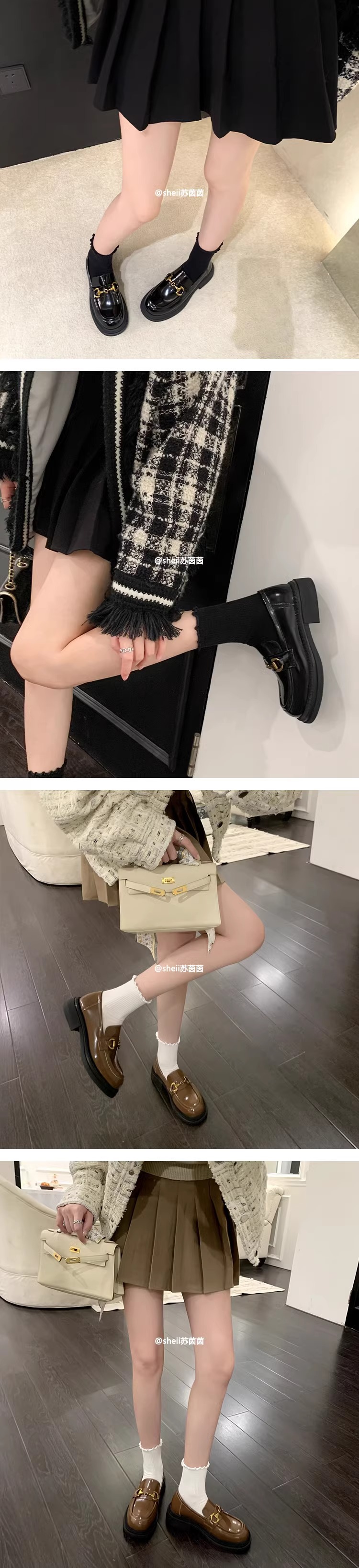 양가죽 버전~브레 팰리스~말굽형 라운드 토 두꺼운 굽 두꺼운 밑창 여성용 가죽 로퍼 신발 가을 겨울 신상 패션스토어 가기