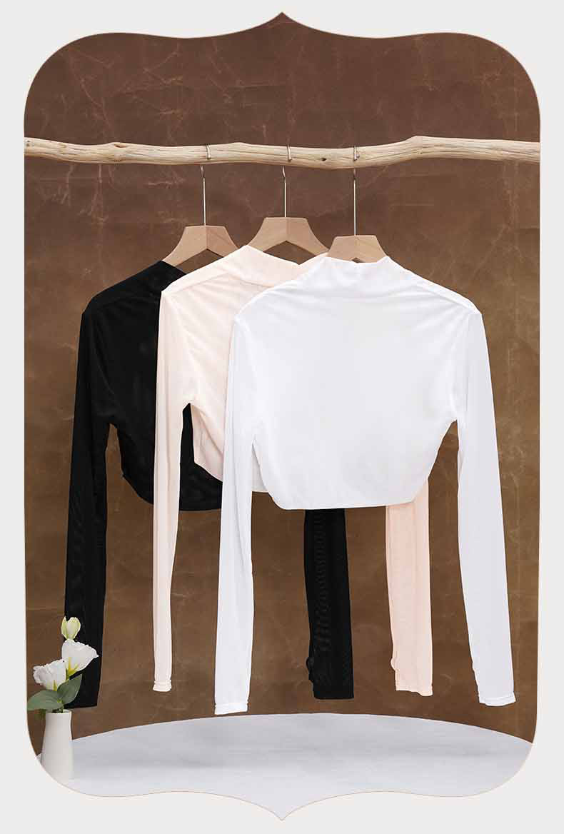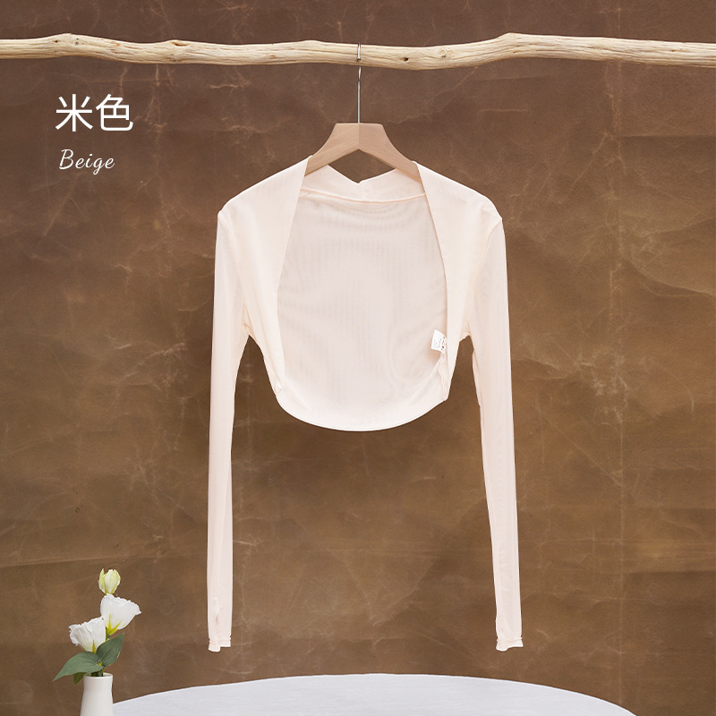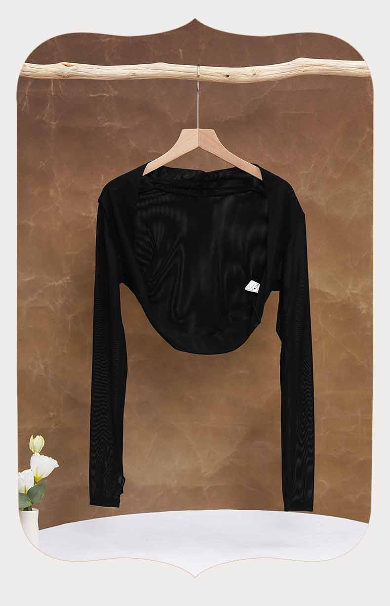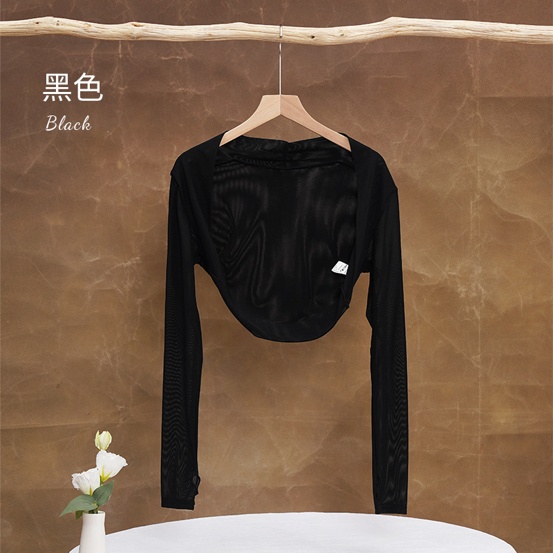 댄스 의류 연습 옷 여성용 메쉬 긴팔 목도리 탑 어깨 발레 옷 연습 옷 요가 옷