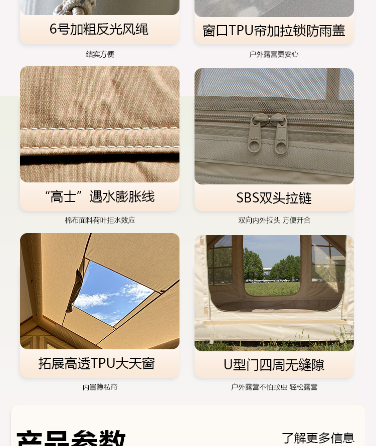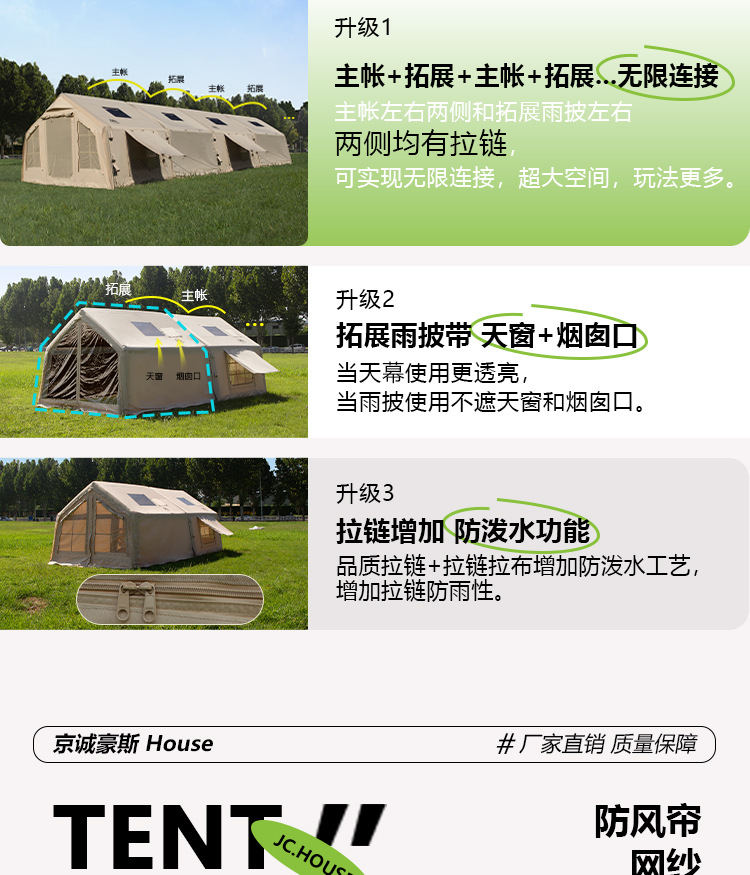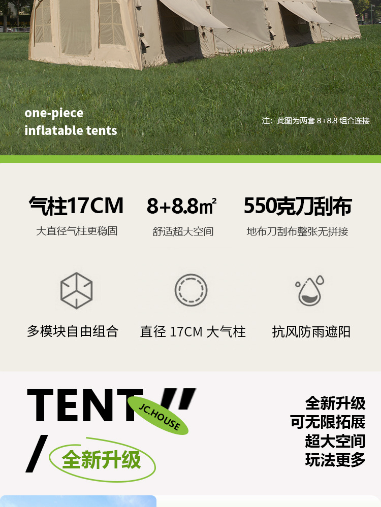 징청하우스 JcHouse8+8.8 ㎡ 팽창형 천막 캠핑 야외 면 천막 확장형 천막스토어 가기
