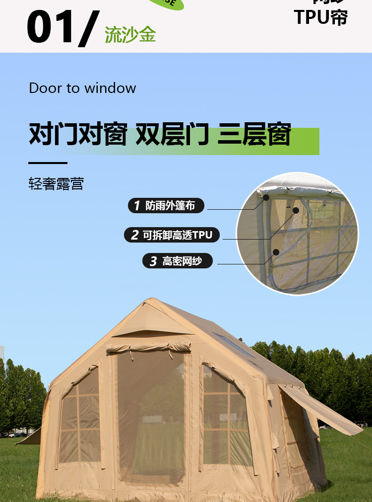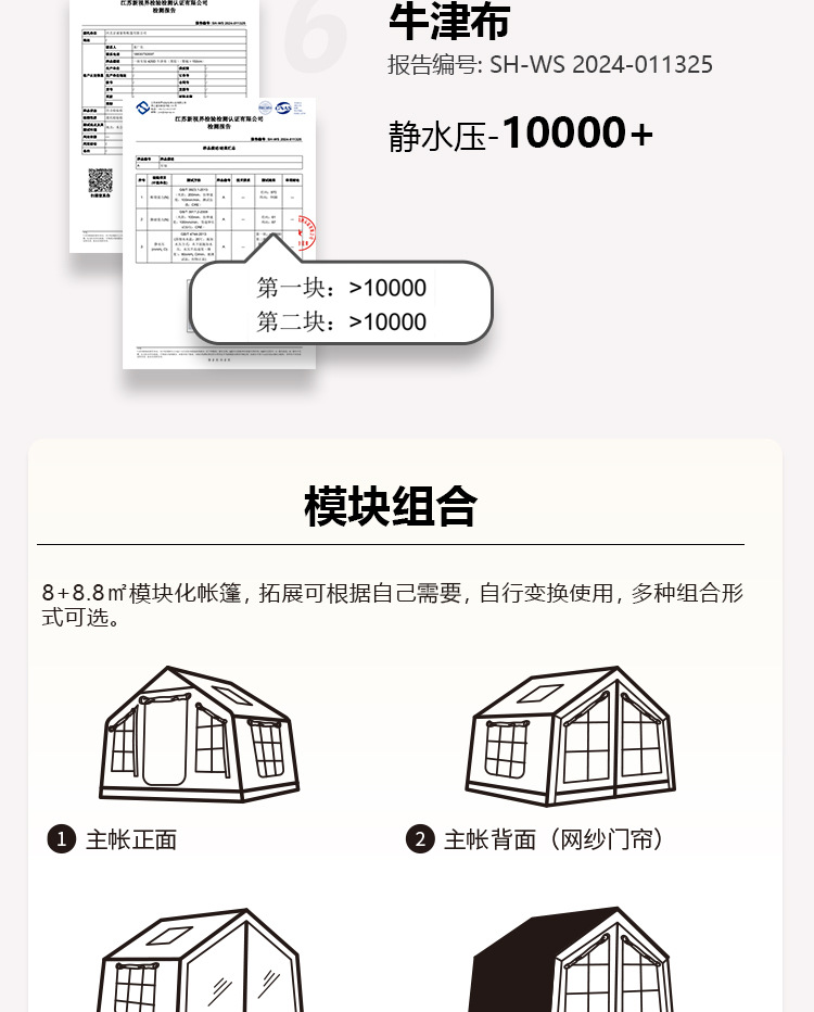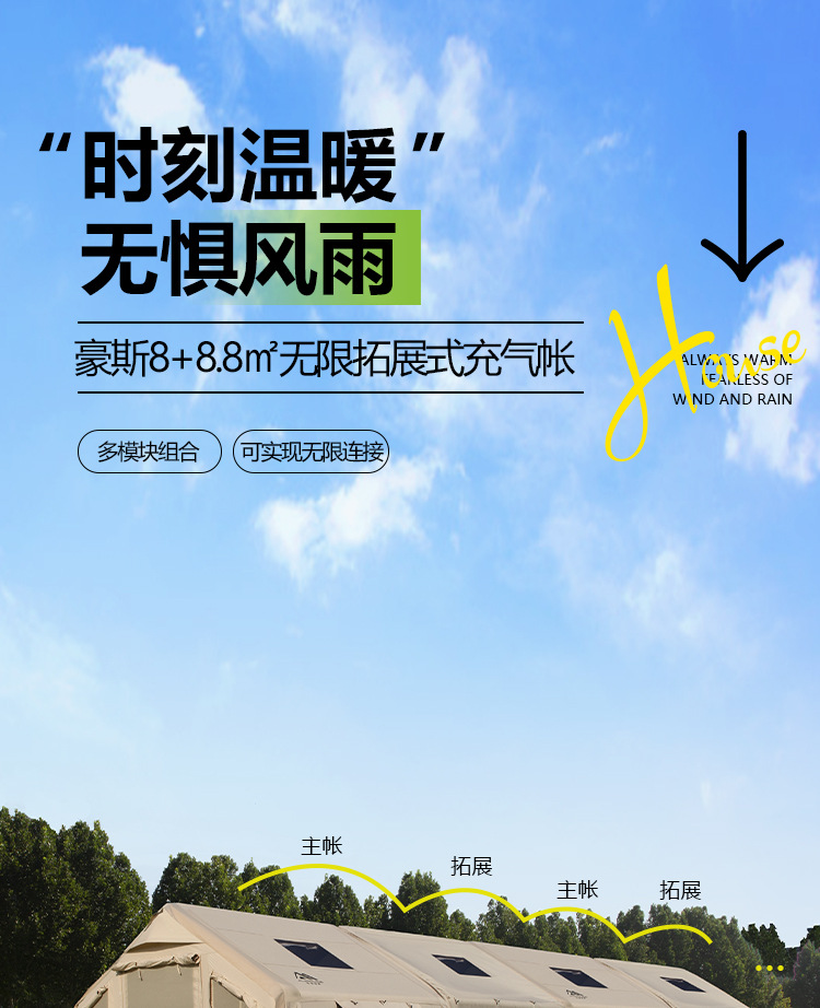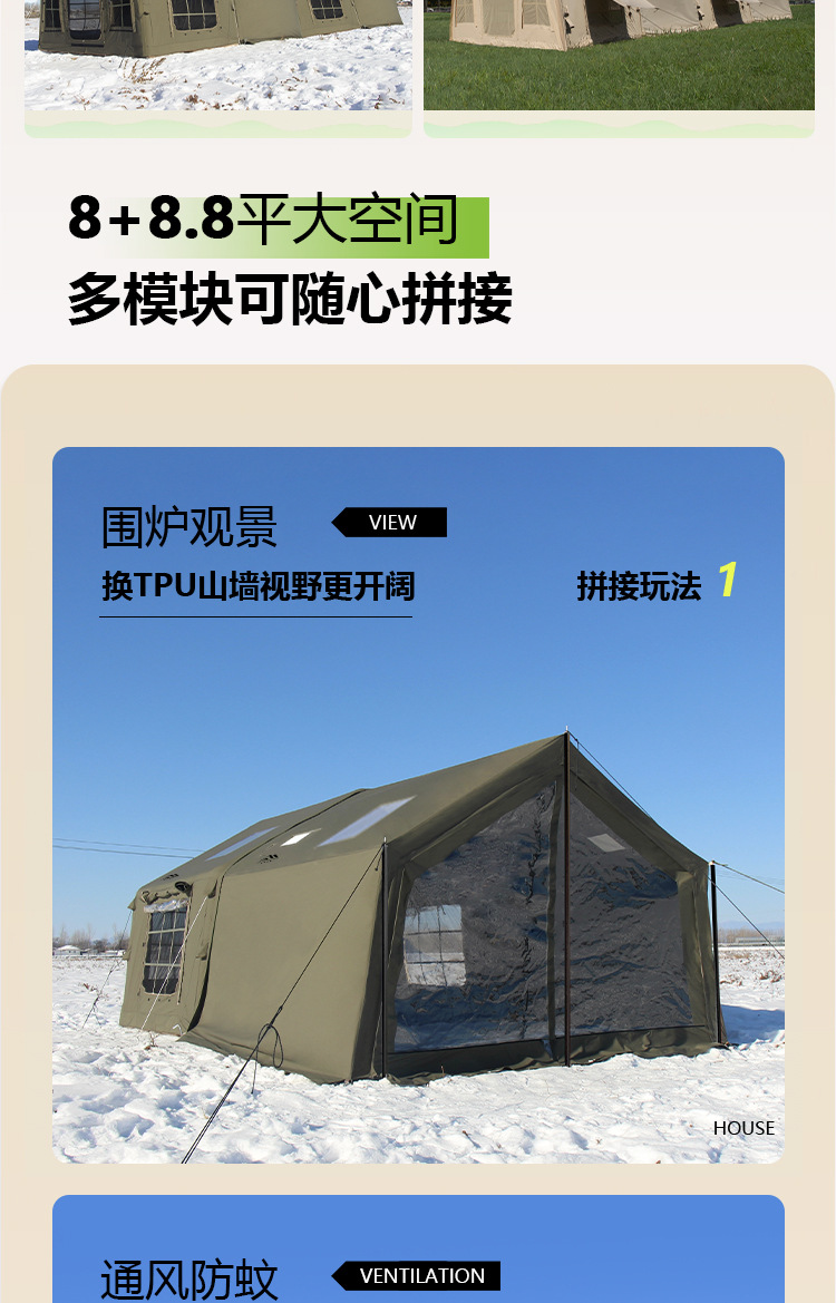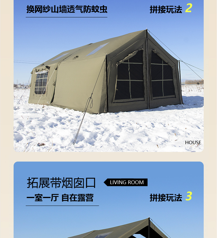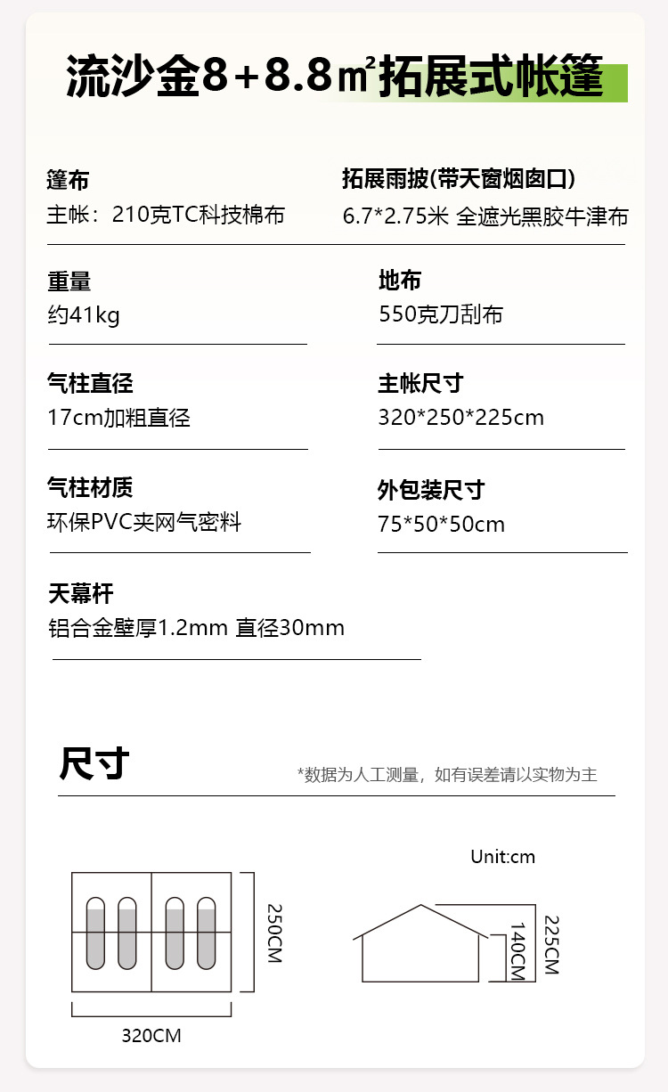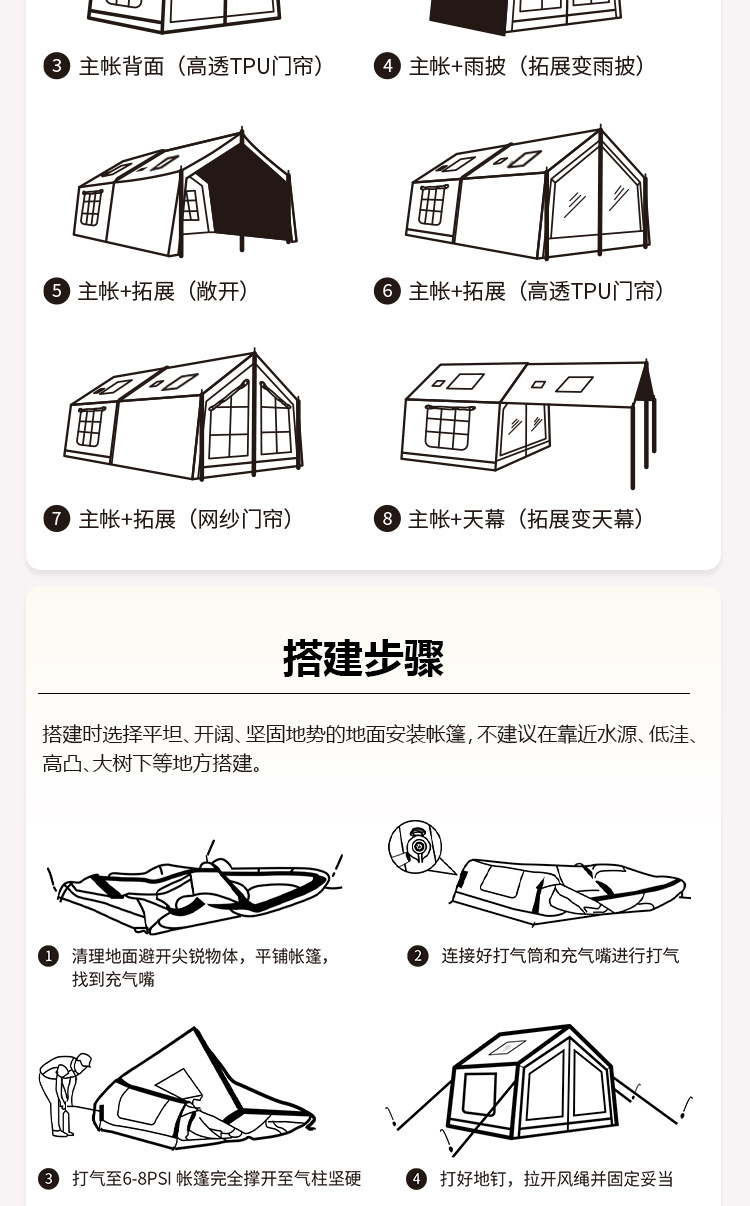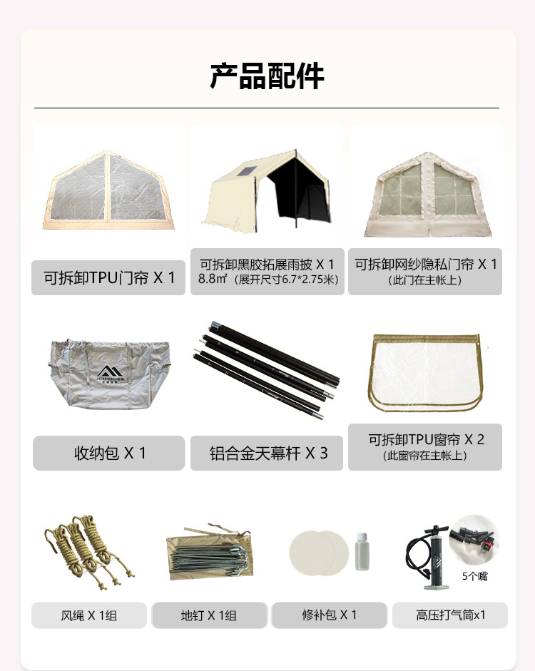 • 베이지 8+8.8㎡(업그레이드 모델) (확장 공기 기둥 + 메인 텐트 + 확장 + 탈착식 TPU 커튼 + 캐노피 폴 3개 전체 세트)