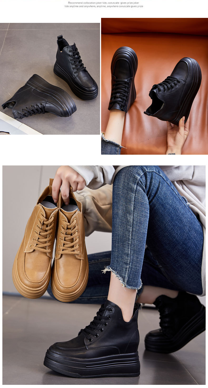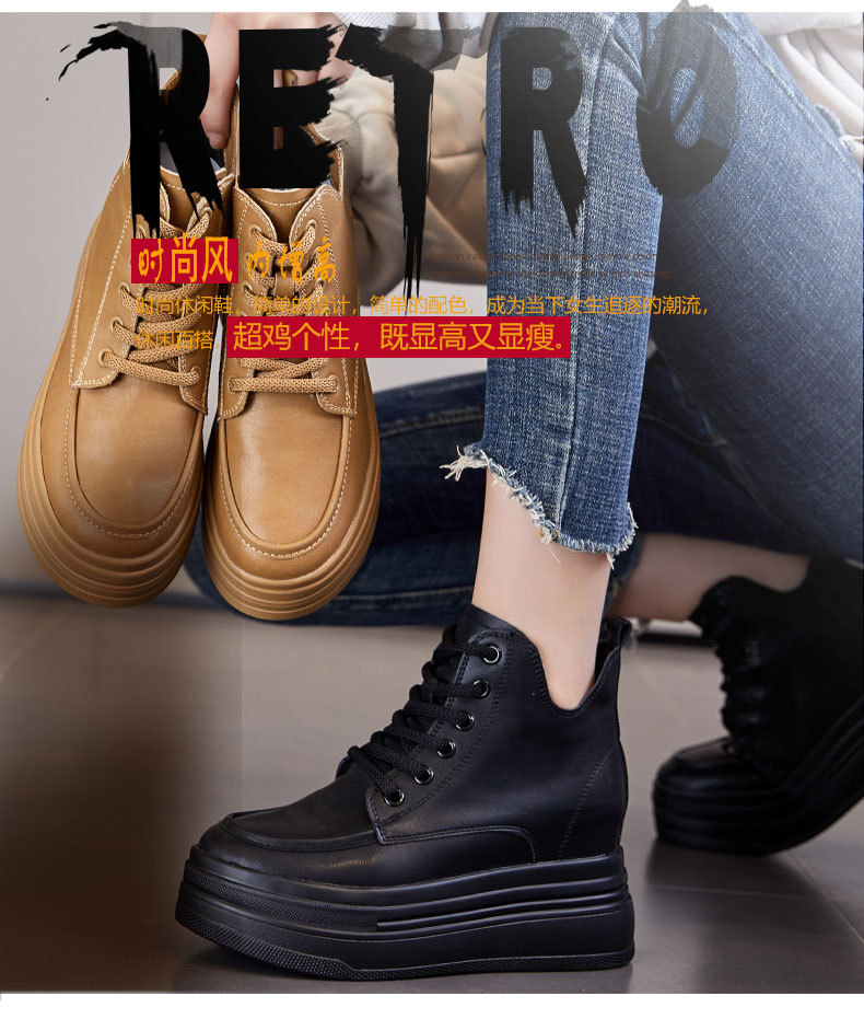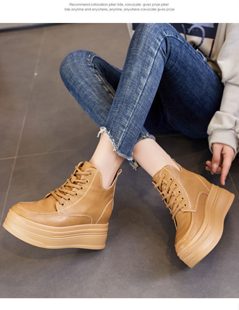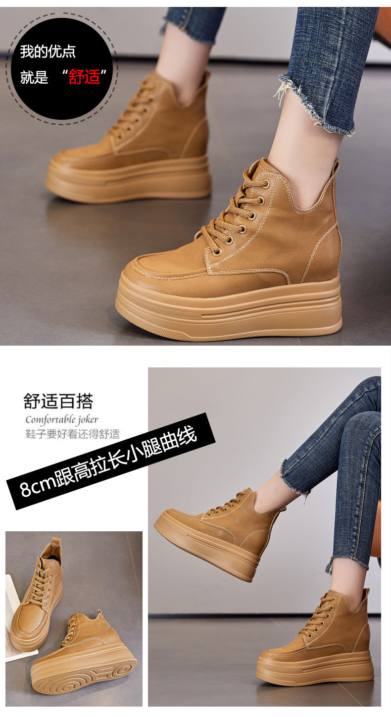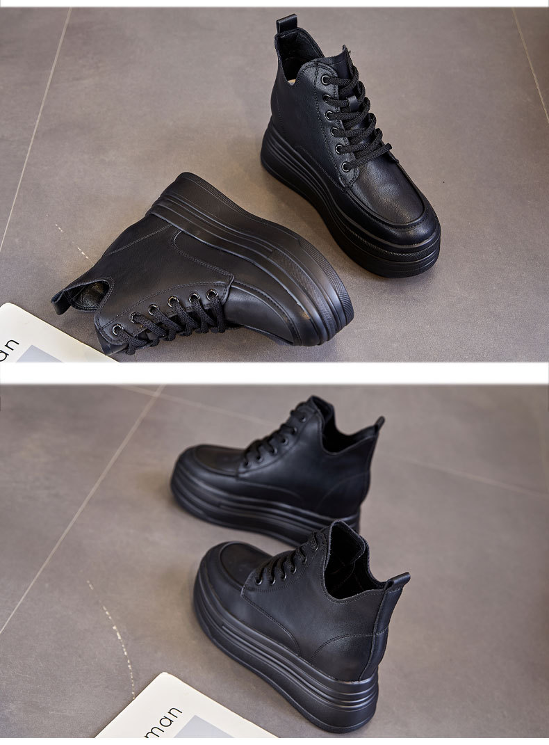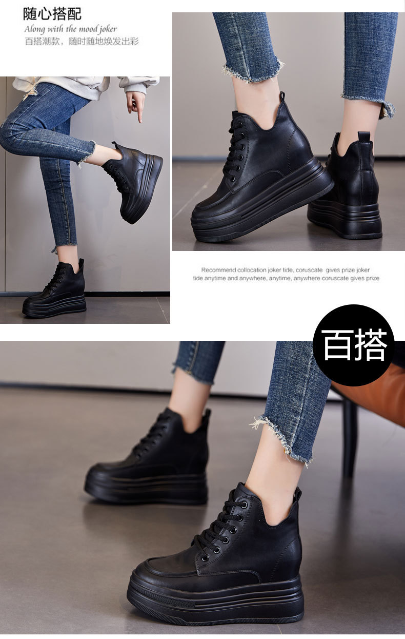 마틴 부츠 높이 증가 여성 신발 가을 및 겨울 새로운 영국 스타일 두꺼운 바닥 가죽 부츠 미드 배럴 캐주얼 신발 짧은 부츠 신발스토어 가기
