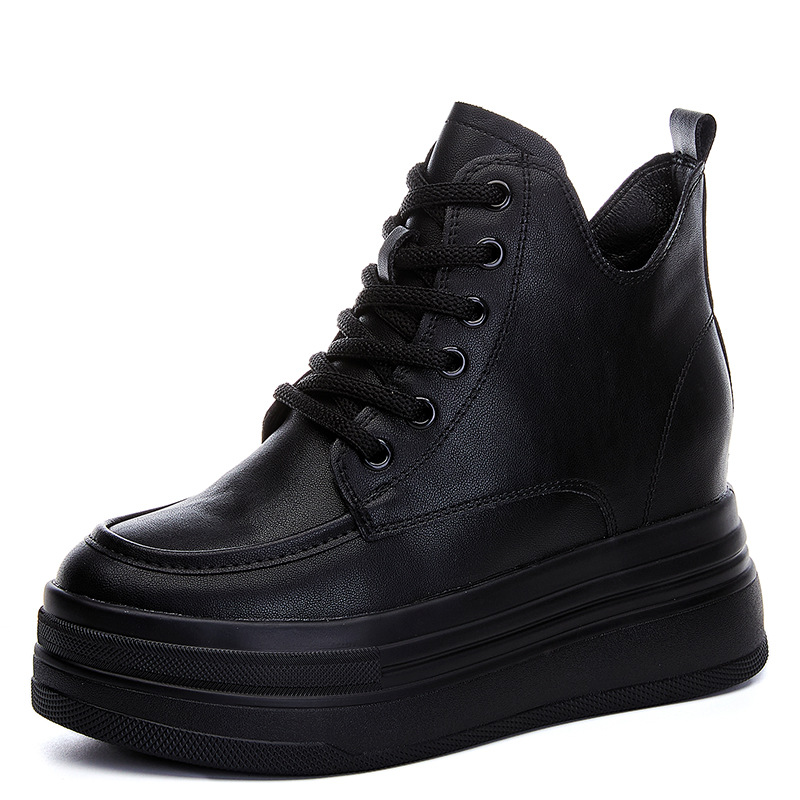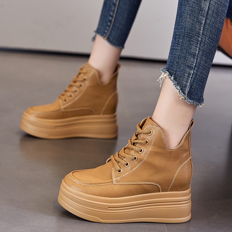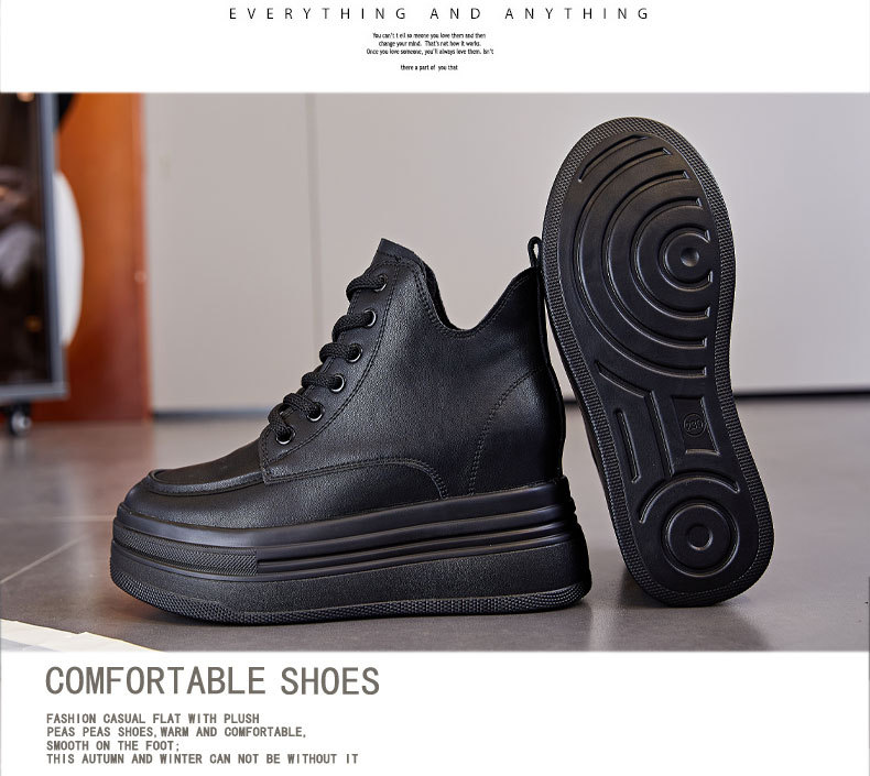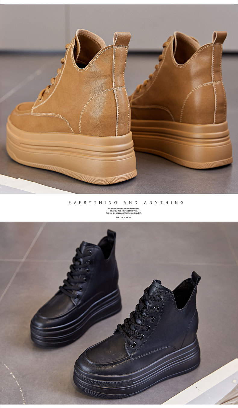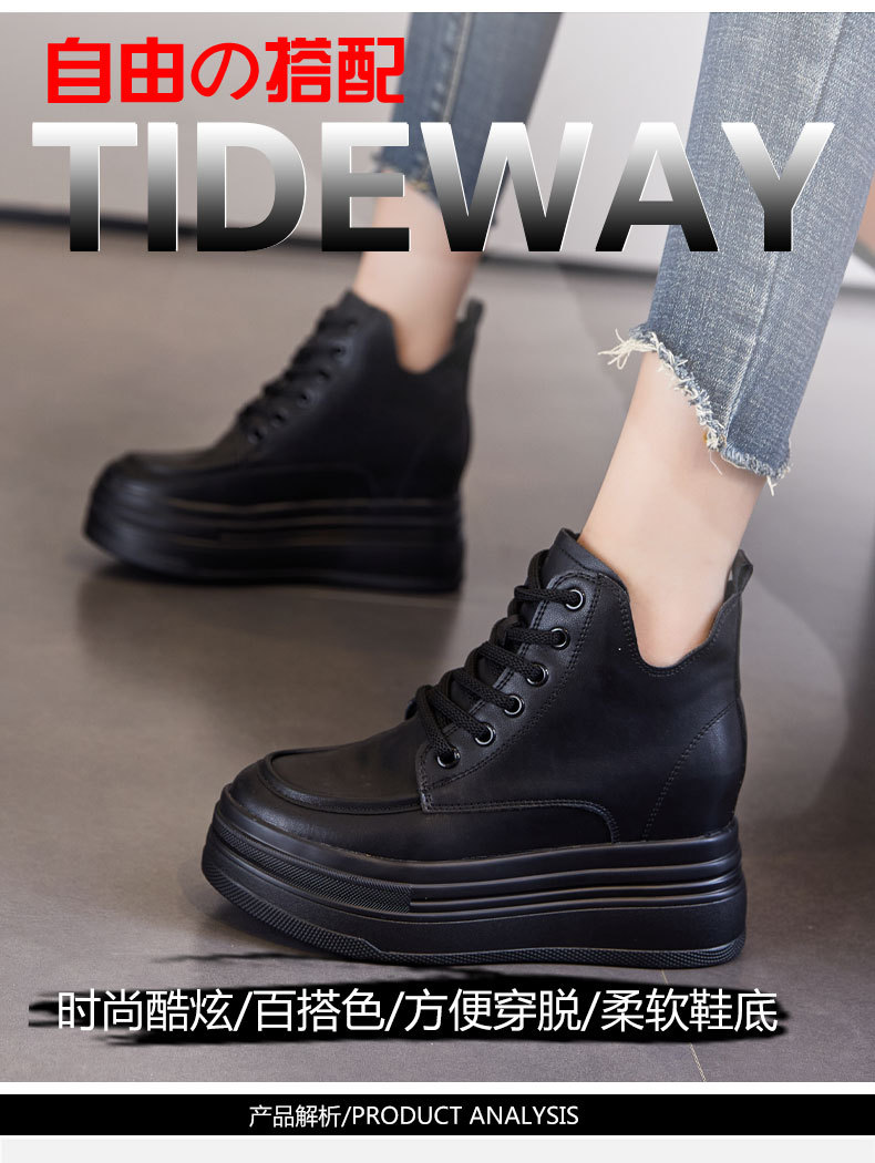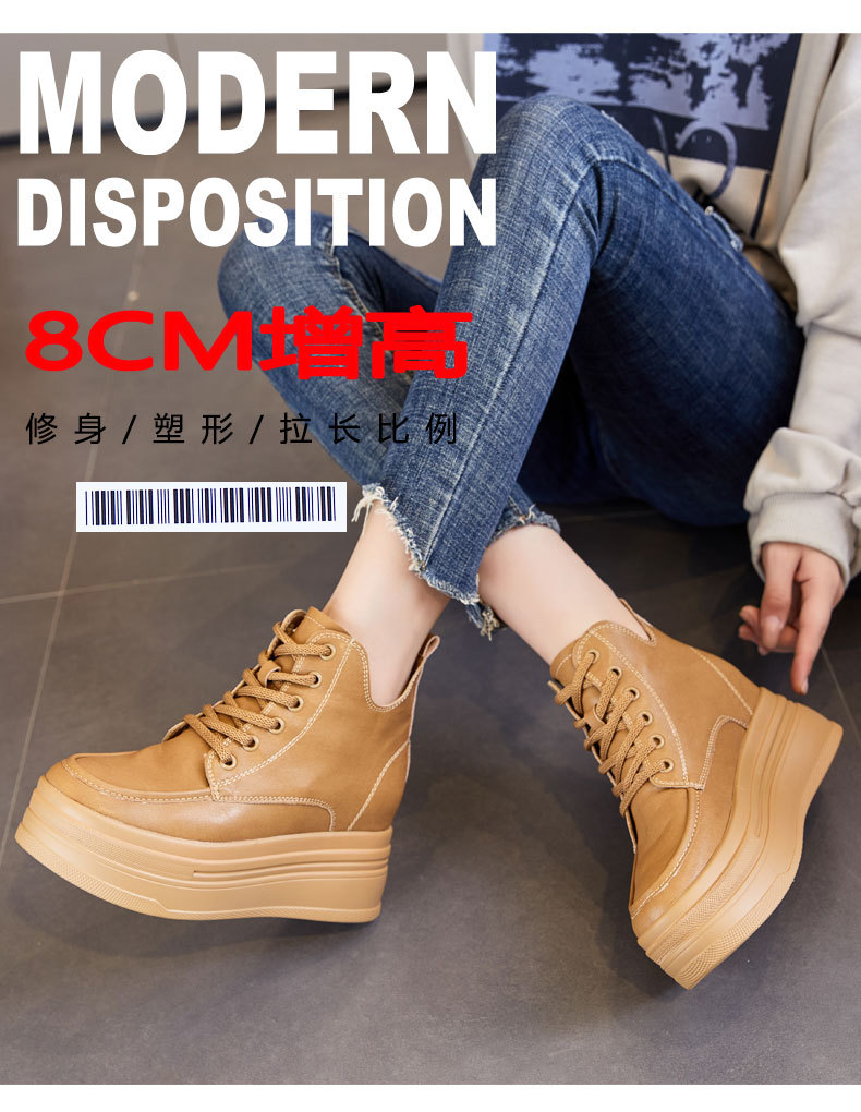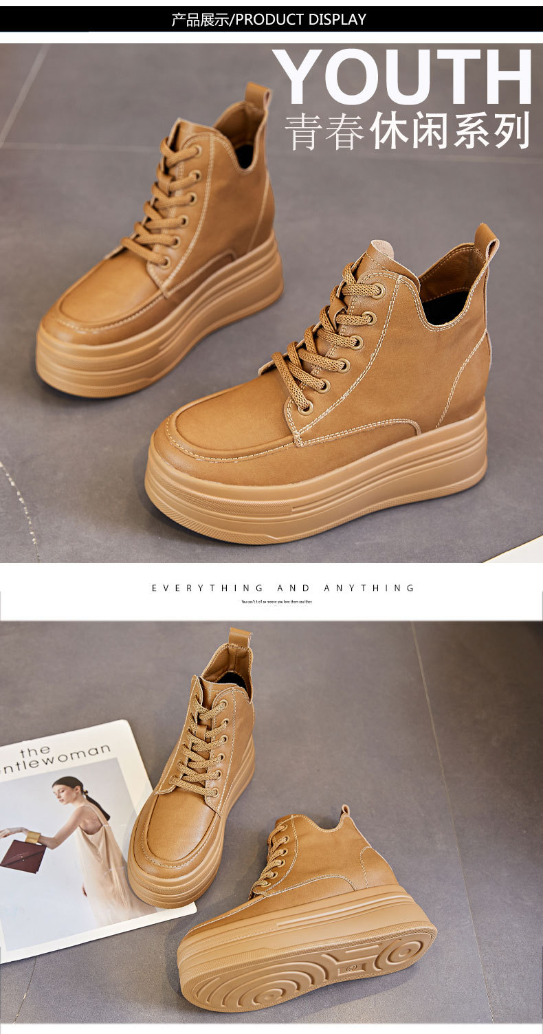 마틴 부츠 높이 증가 여성 신발 가을 및 겨울 새로운 영국 스타일 두꺼운 바닥 가죽 부츠 미드 배럴 캐주얼 신발 짧은 부츠 신발스토어 가기