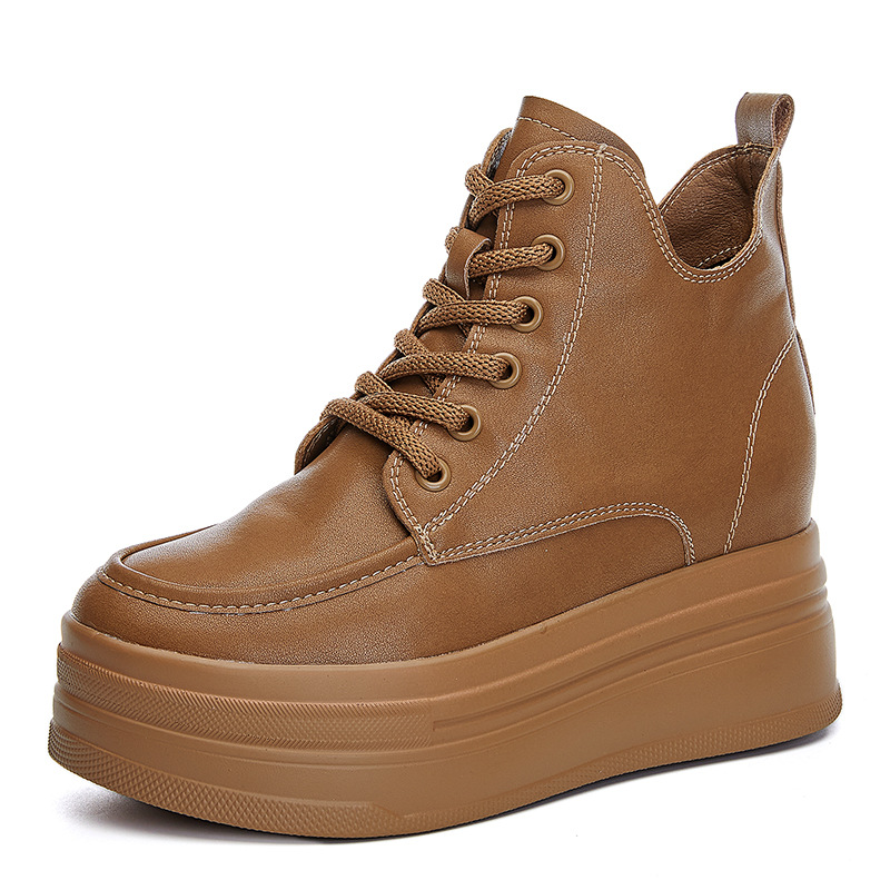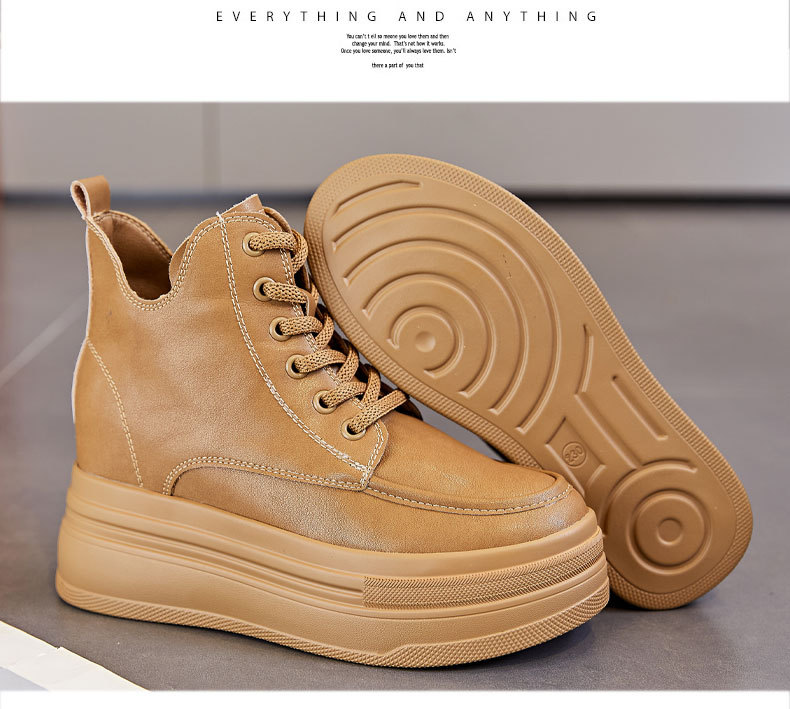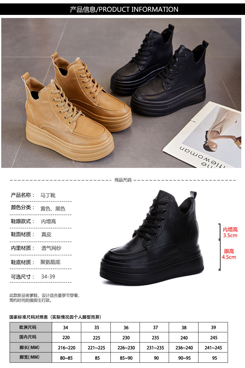 마틴 부츠 높이 증가 여성 신발 가을 및 겨울 새로운 영국 스타일 두꺼운 바닥 가죽 부츠 미드 배럴 캐주얼 신발 짧은 부츠 신발