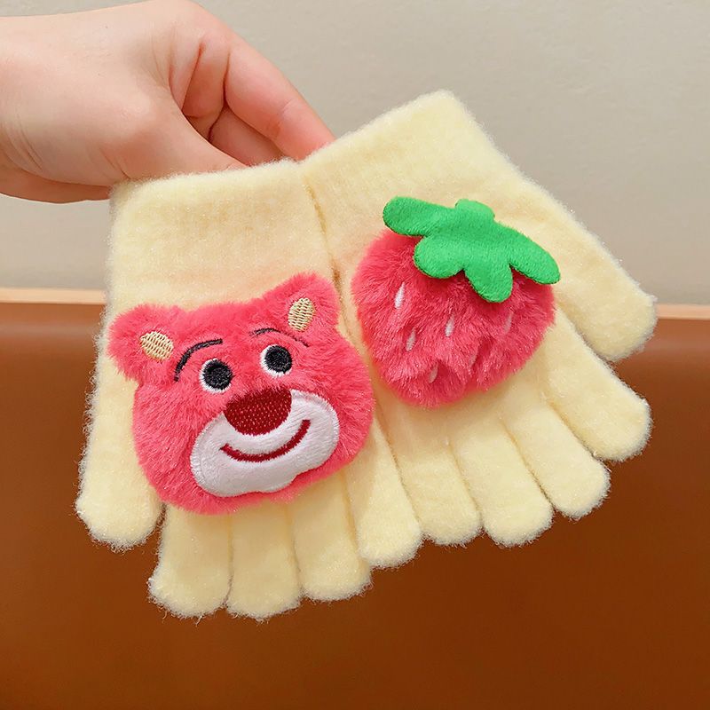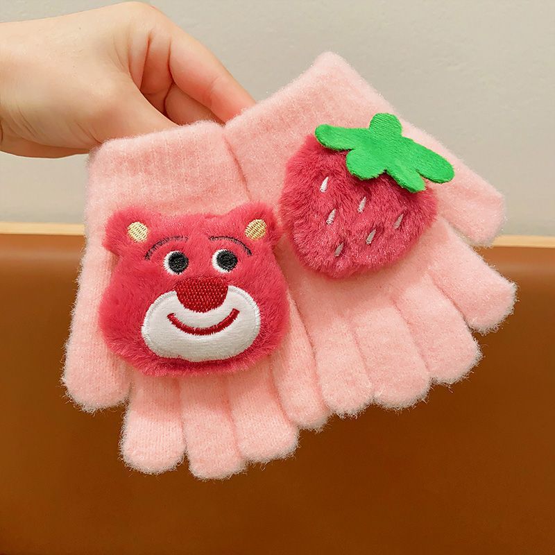 어린이 장갑 2-6 세 소녀 따뜻한 다섯 손가락 세트 귀여운 딸기 곰 만화 아기 봉제 두꺼운 손가락 세트스토어 가기