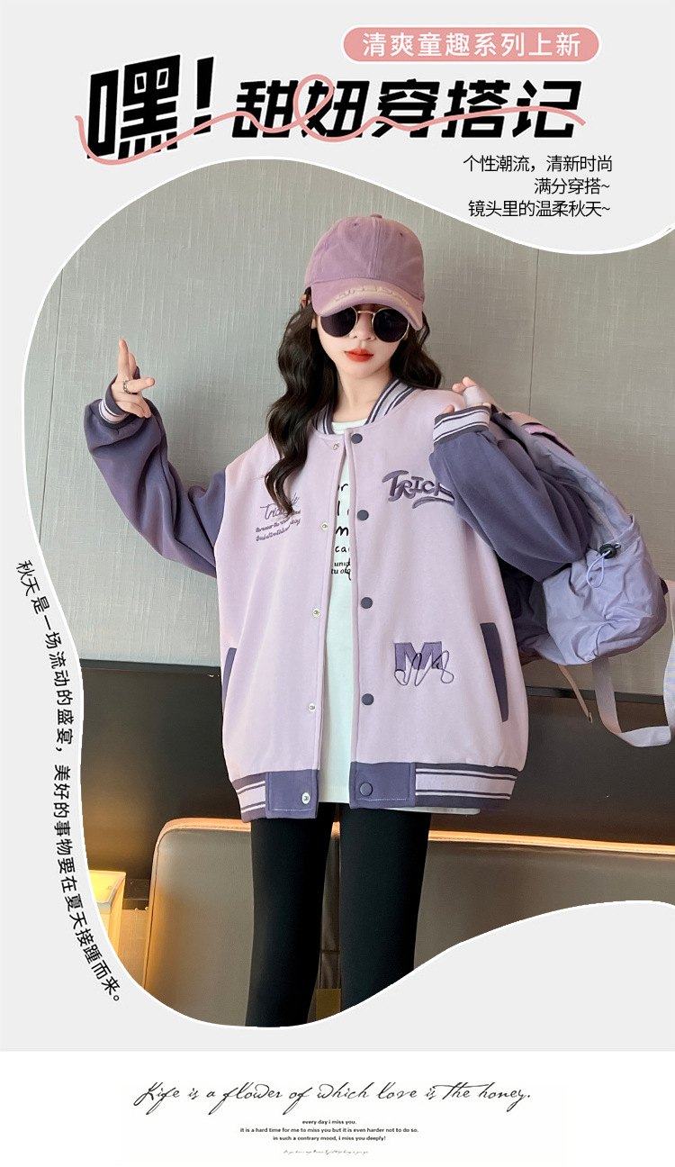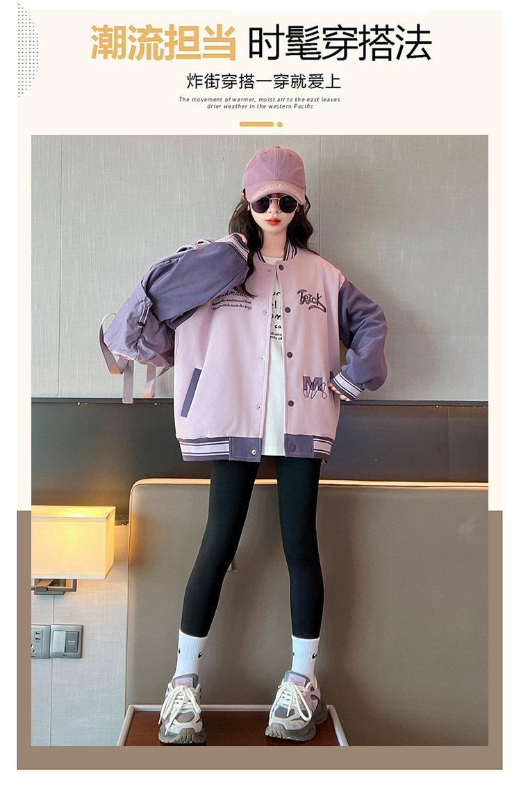 여자 가을 자수 TR 편지 야구 세트 코트 2024 새로운 어린이 스타일리스트 캐주얼 스포츠 재킷 윈드브레이커스토어 가기