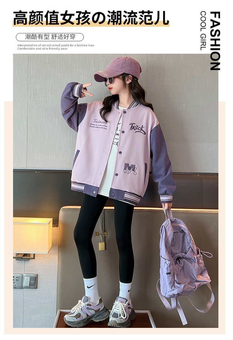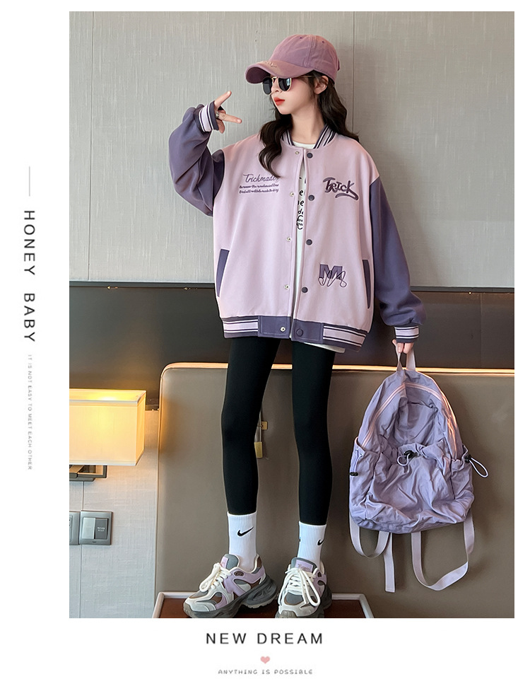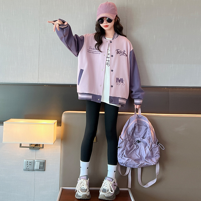 여자 가을 자수 TR 편지 야구 세트 코트 2024 새로운 어린이 스타일리스트 캐주얼 스포츠 재킷 윈드브레이커