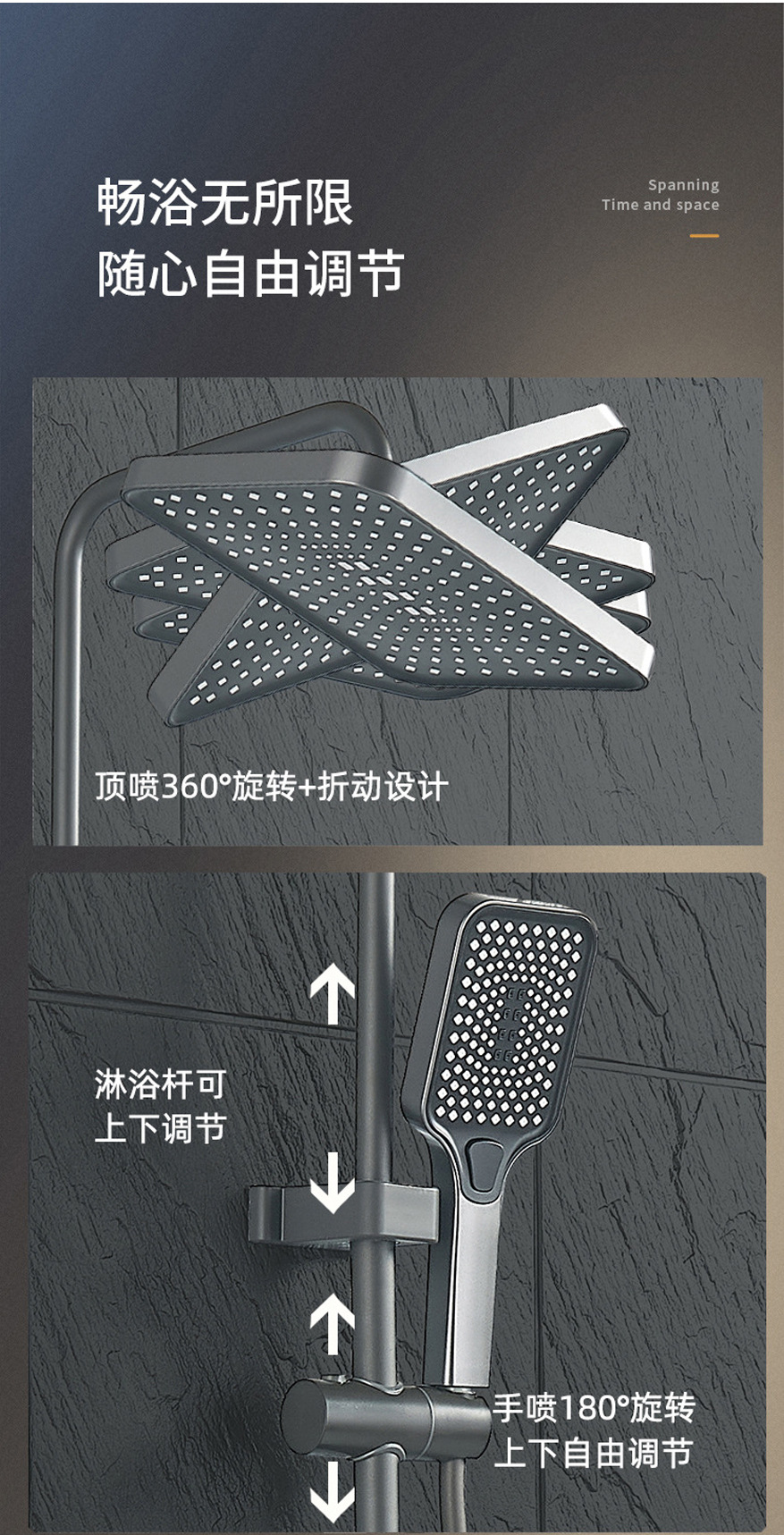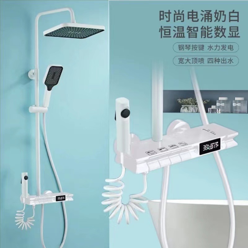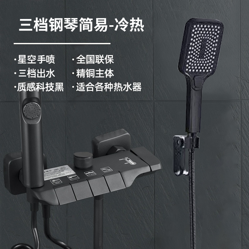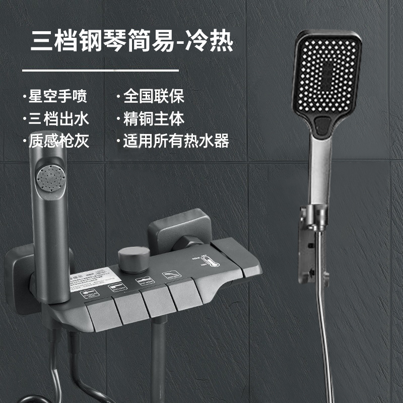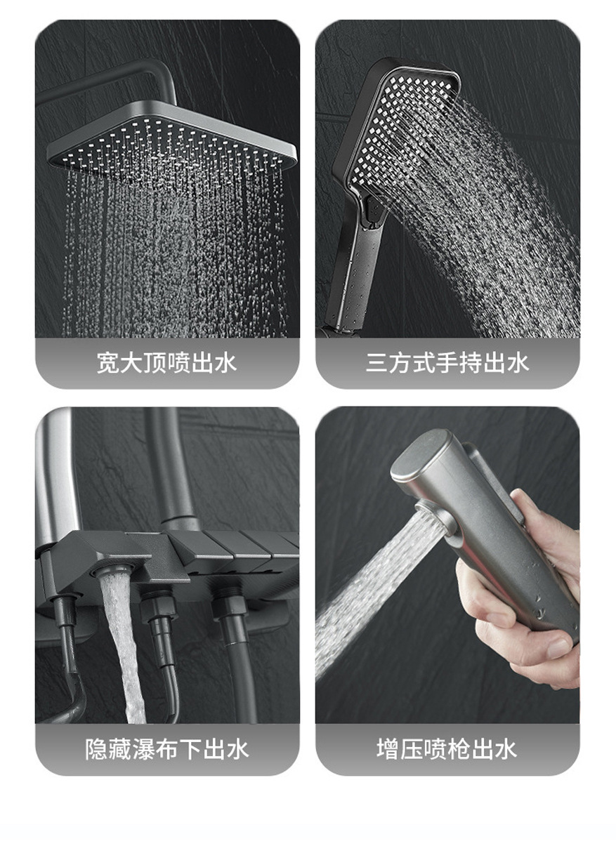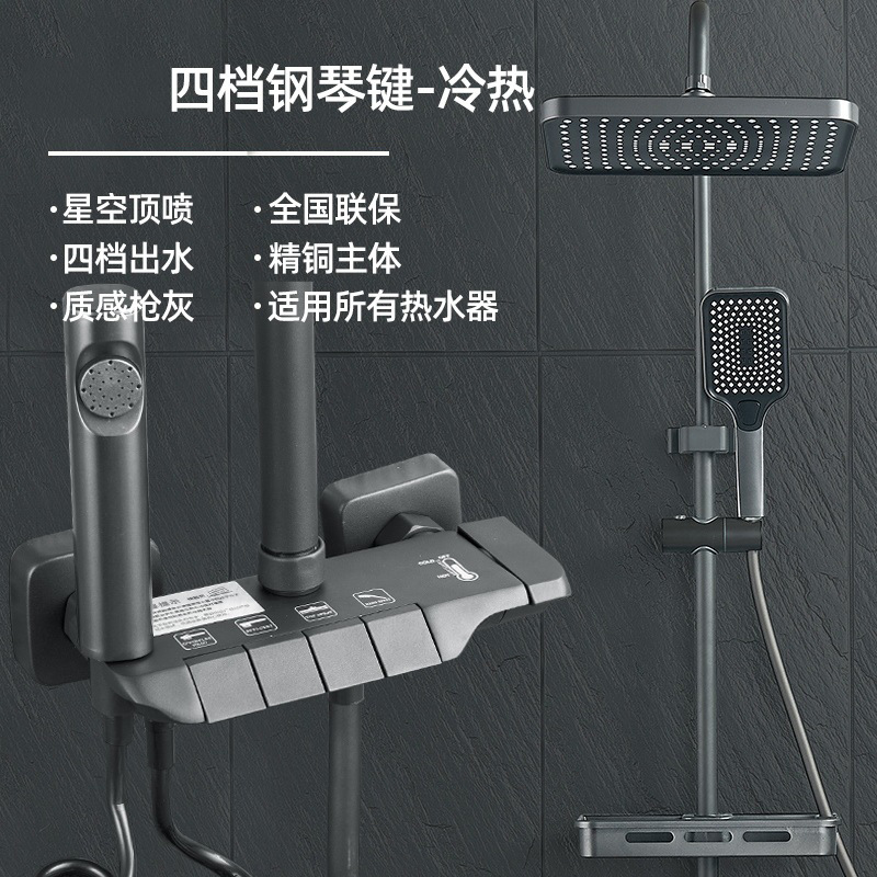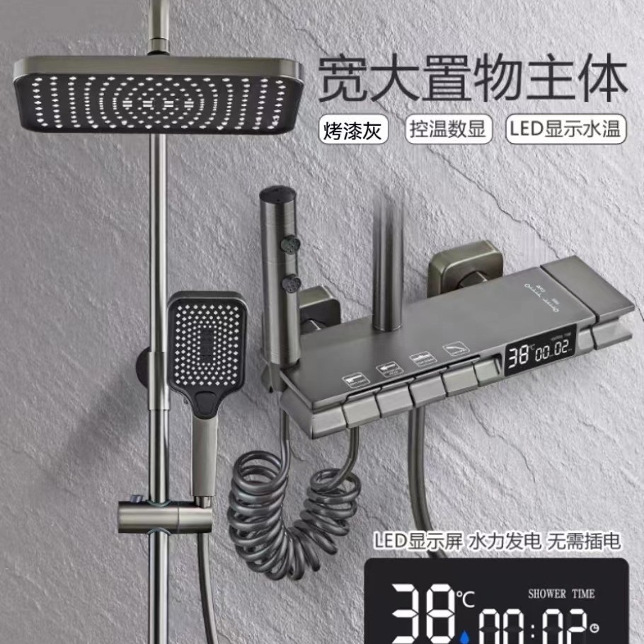 건메탈 그레이 피아노 키 디자인 온도조절 디지털 디스플레이 레인 샤워기, 올코퍼 샤워기, 가정용 욕실 샤워기 세트스토어 가기