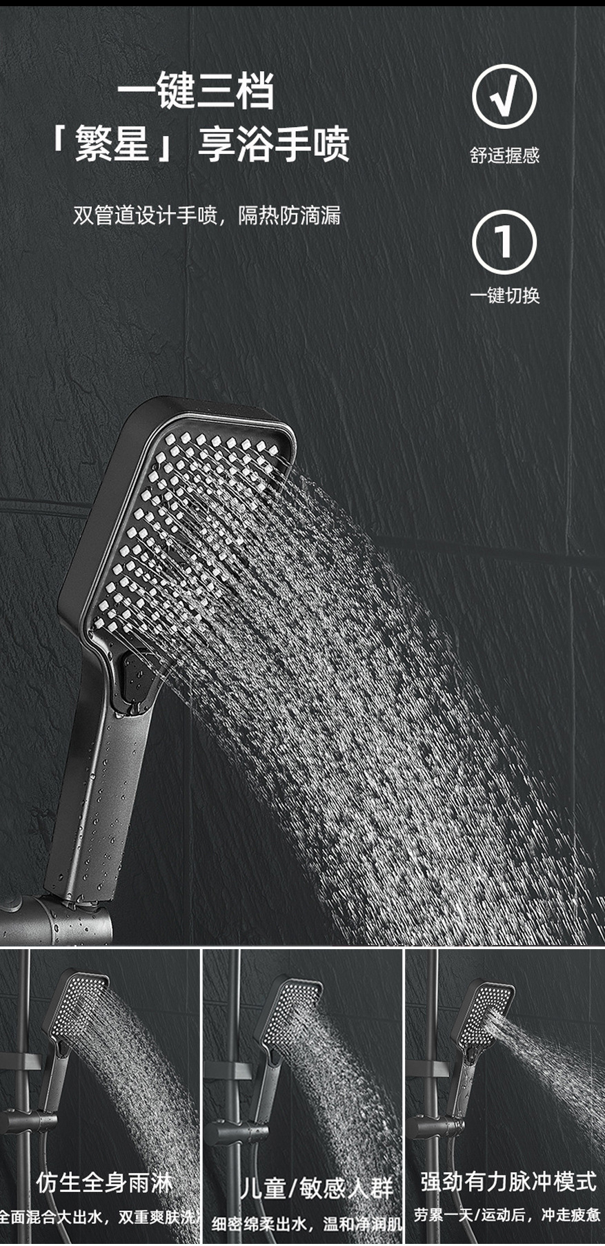 건메탈 그레이 피아노 키 디자인 온도조절 디지털 디스플레이 레인 샤워기, 올코퍼 샤워기, 가정용 욕실 샤워기 세트