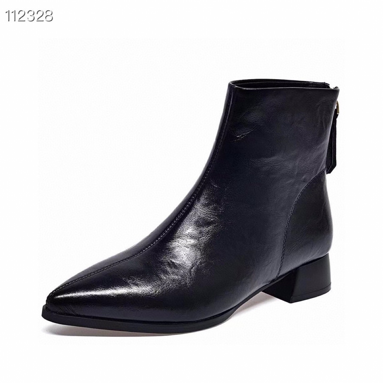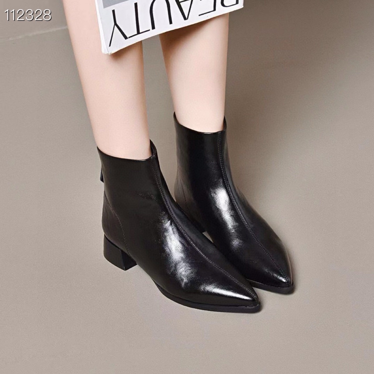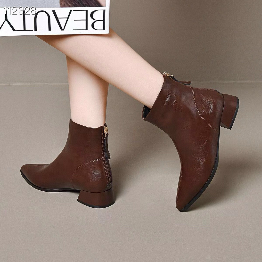 뾰족한 플랫 쇼트 부츠 여성의 가을과 겨울 기모 2024 새로운 봄과 가을 마틴 부츠 영국 스타일 청키 힐 가죽 신발스토어 가기