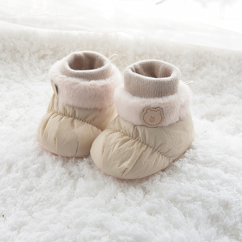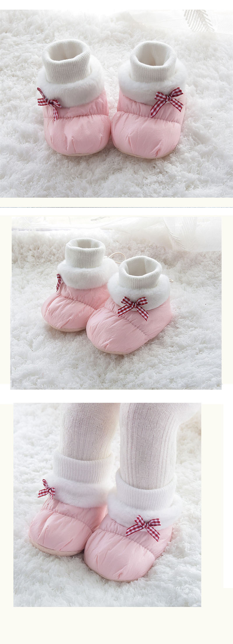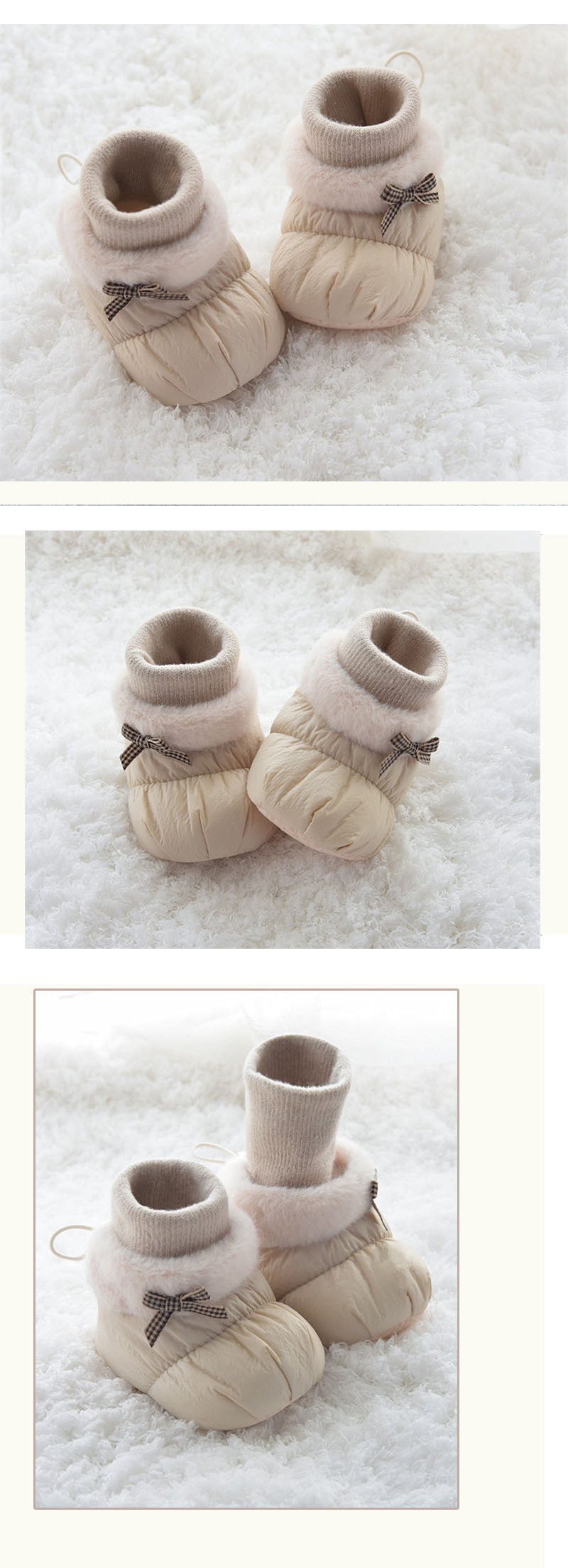 产品2个尺码:内长12cm适合3-6个月 内长13cm适合7-12个月(具体以脚长为准)鞋面羽绒布防水