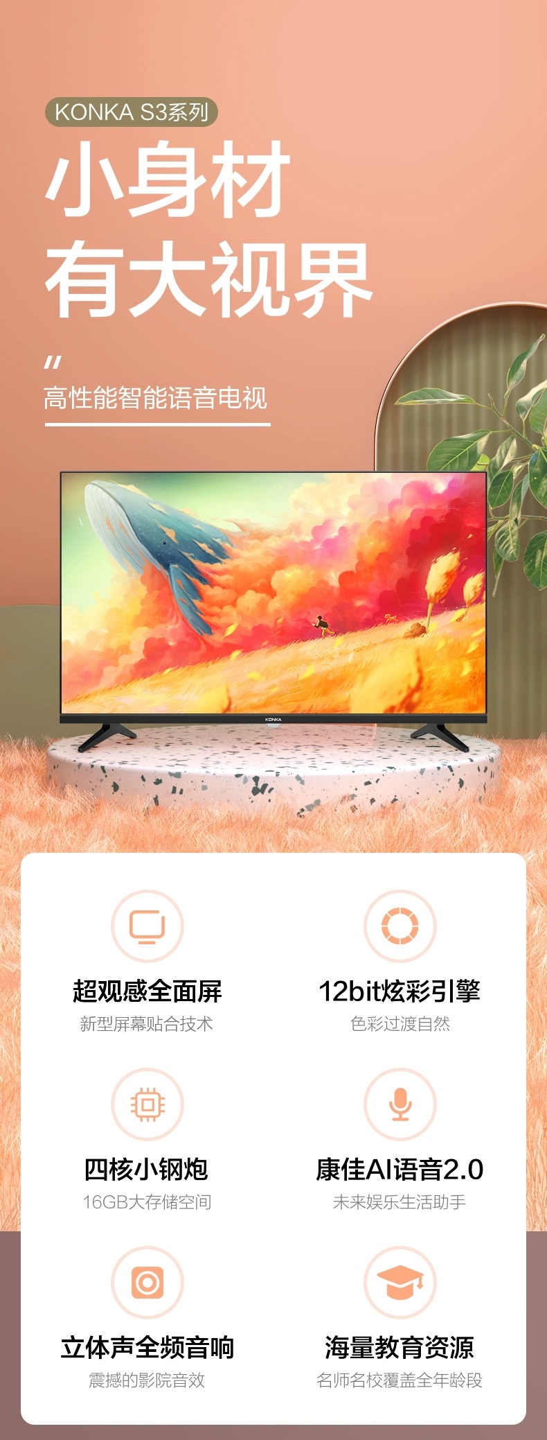 43 "금속 풀 스크린 16G 대형 메모리 43S3 풀 HD 지능형 음성 LCD TV 와이파이 스마트스토어 가기