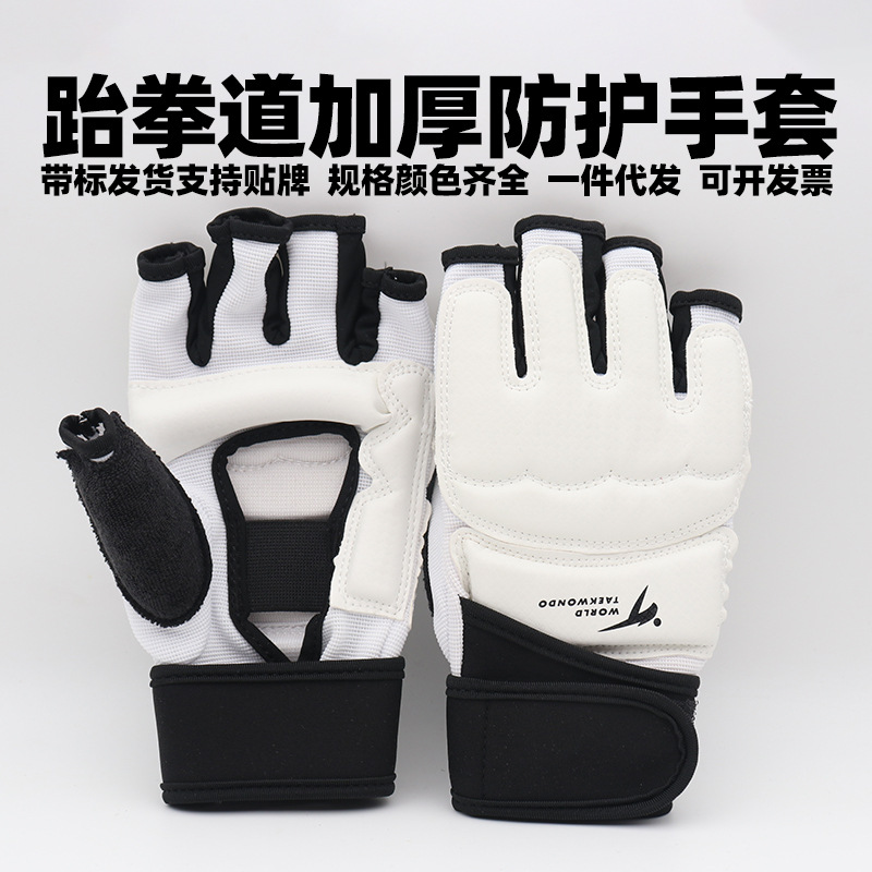 화이트 복싱 태권도 두꺼운 보호 발 커버 장갑 반 손가락 손목 보호자 어린이 초등학생 훈련 샌다 보호자