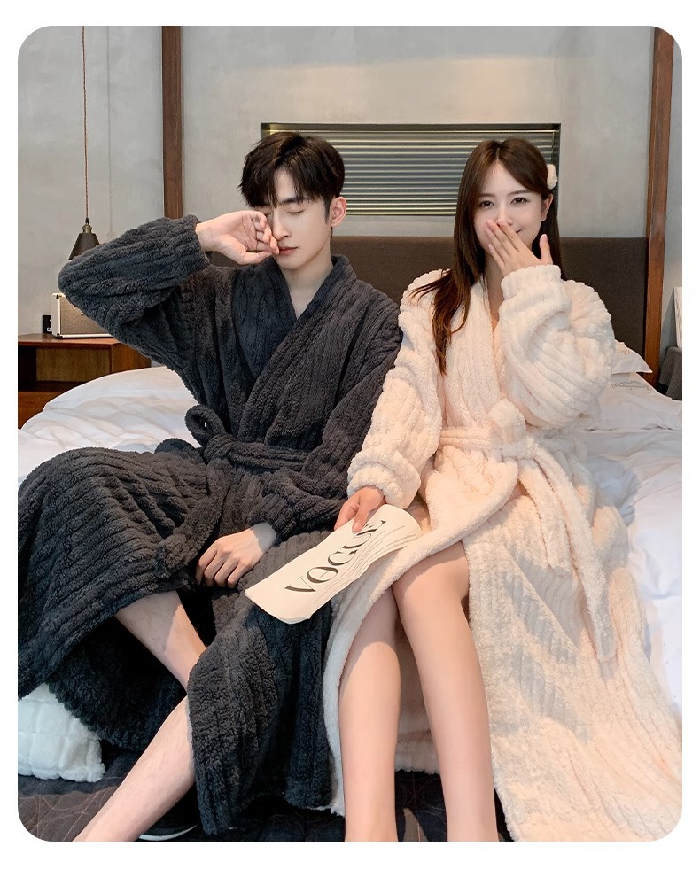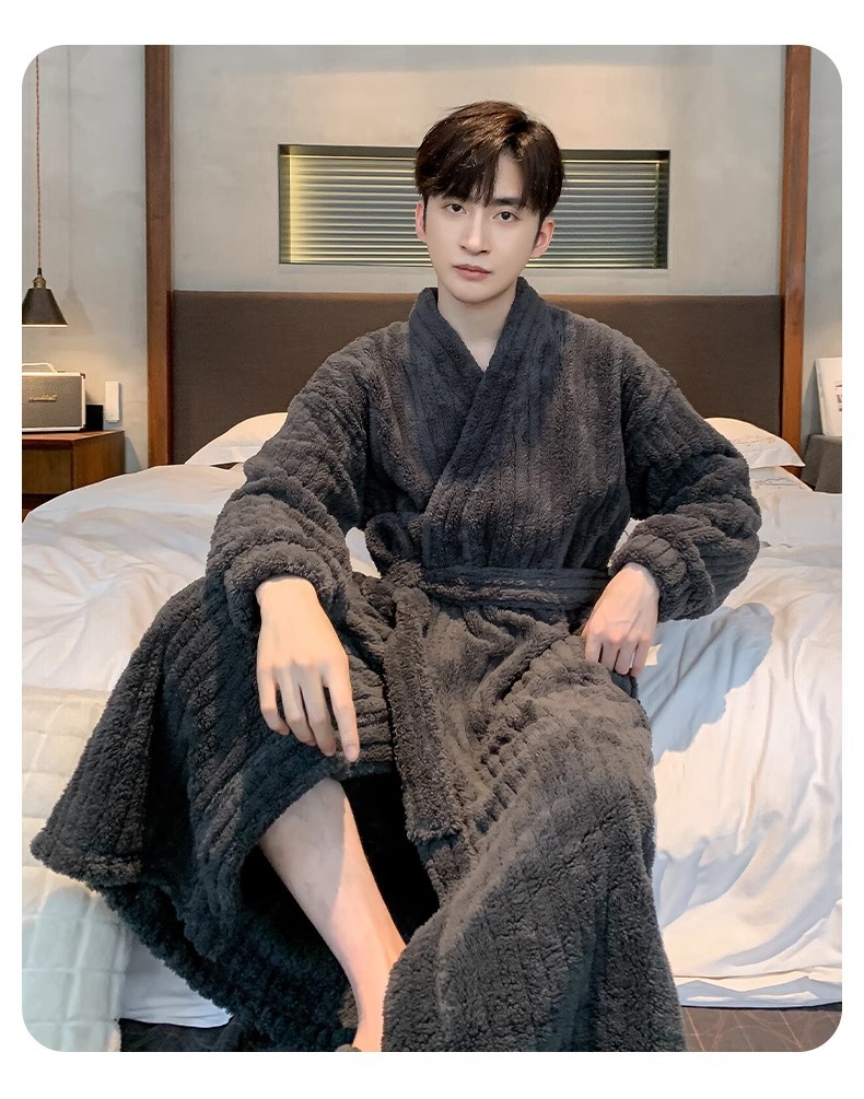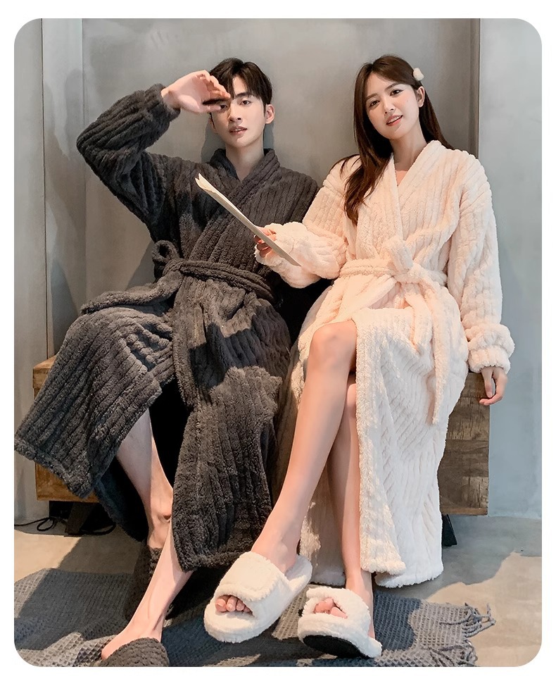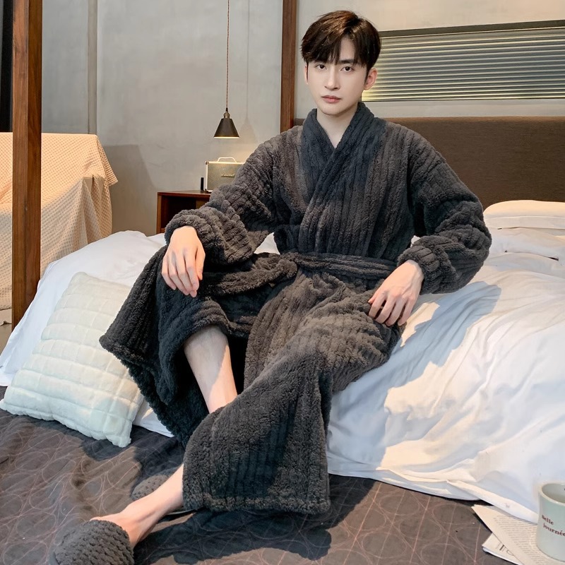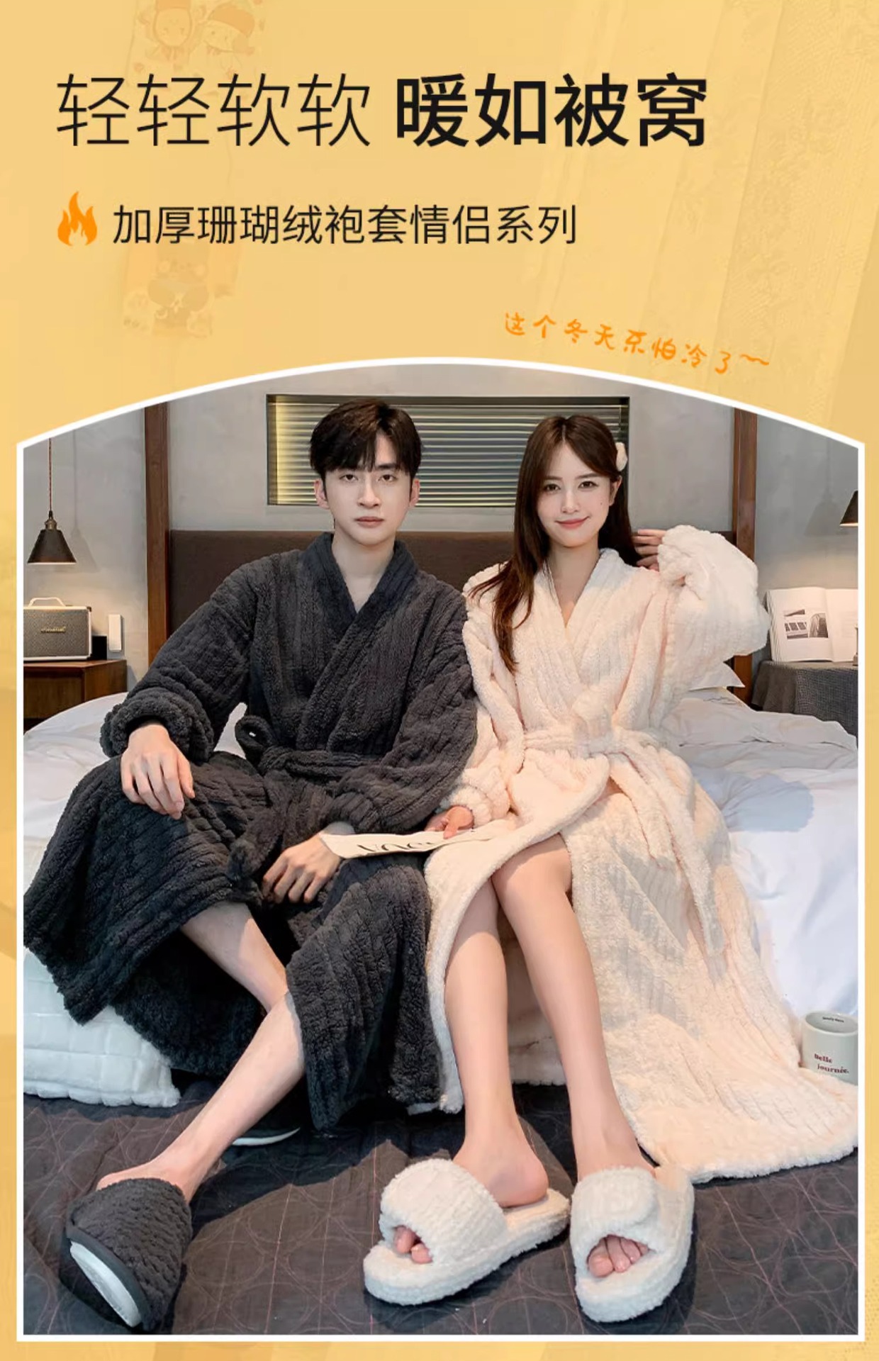 긴 산호 양털 남자 겨울 목욕 목욕 가운 플란넬 파자마에 기모 여자의 가을과 겨울 가운스토어 가기