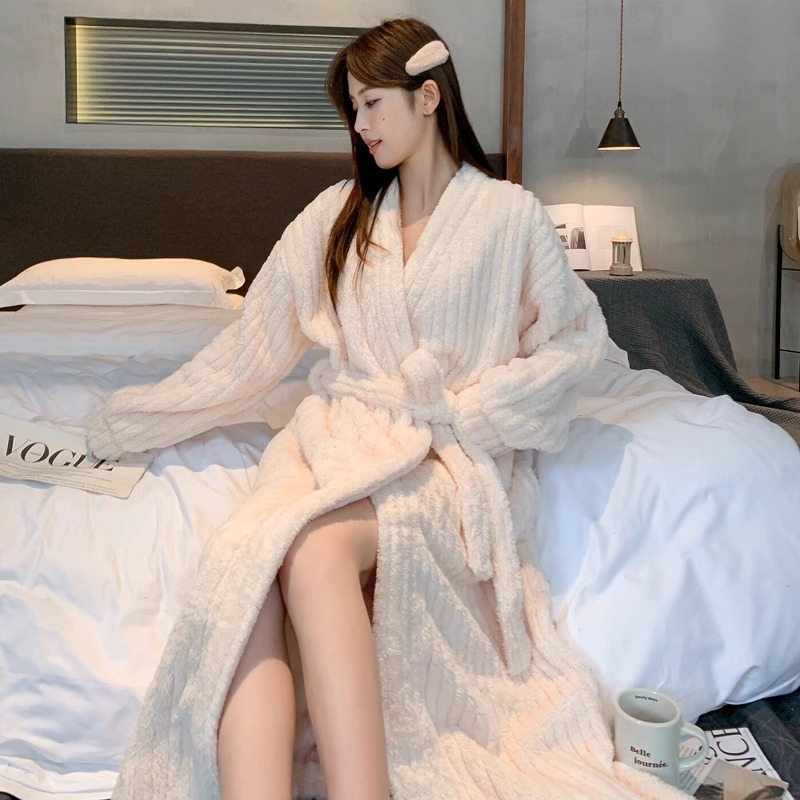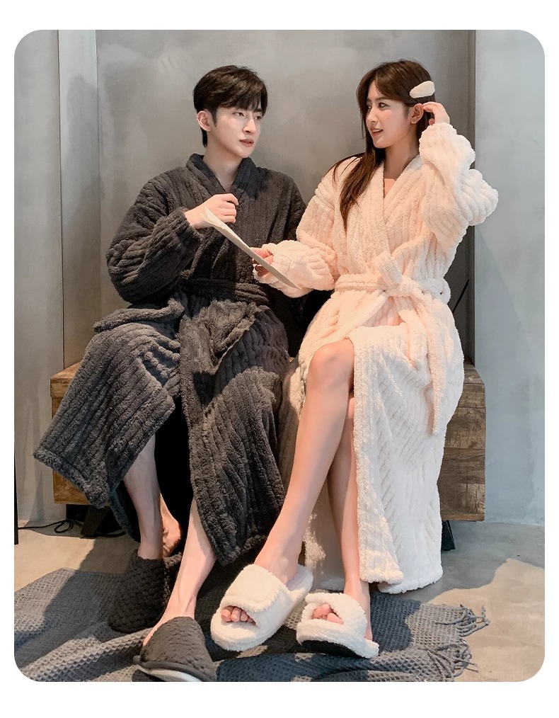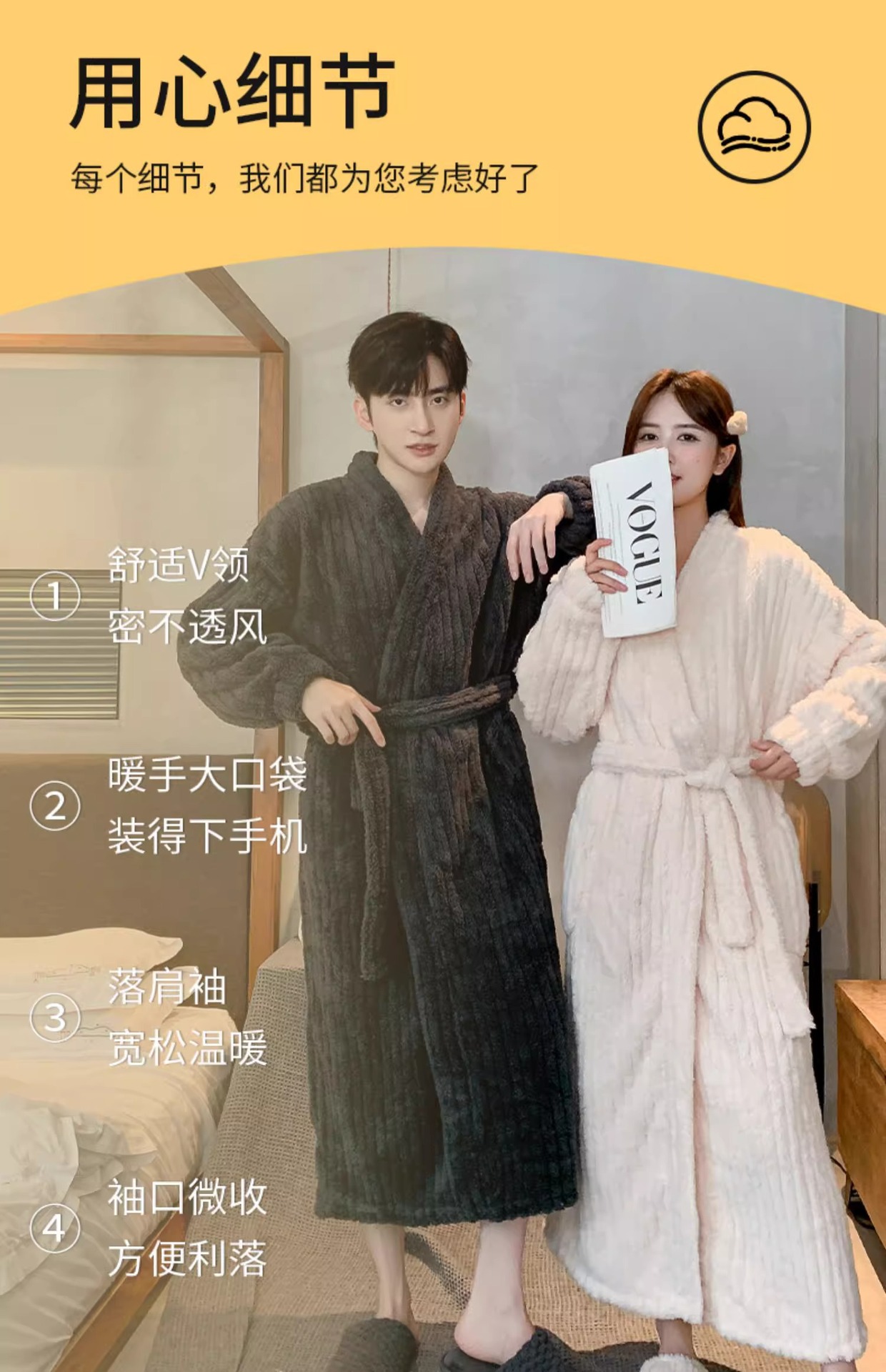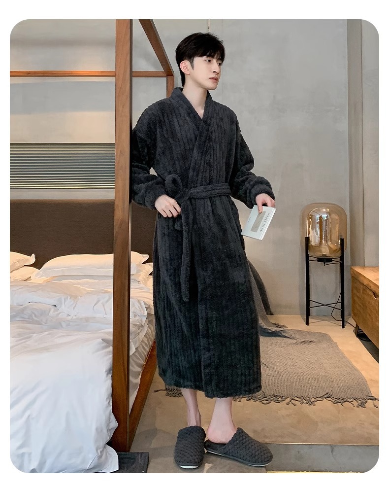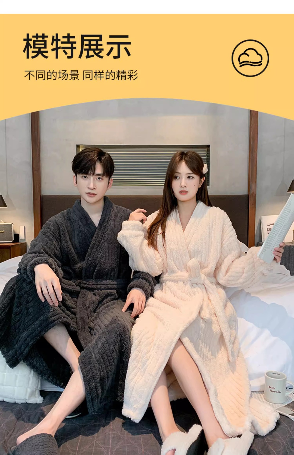 긴 산호 양털 남자 겨울 목욕 목욕 가운 플란넬 파자마에 기모 여자의 가을과 겨울 가운스토어 가기
