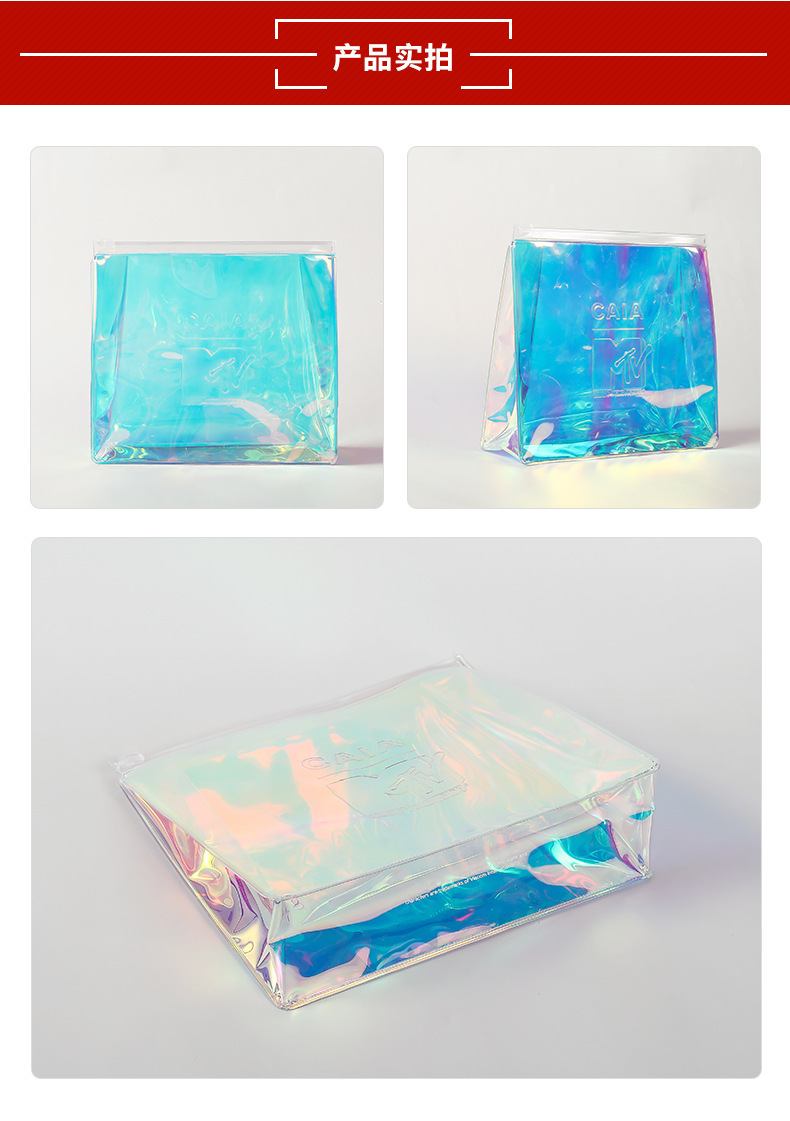 사용자 정의 레이저 eva 지퍼 가방 손목 다채로운 pvc 입체 가방 플라스틱 핸드백 연골 선물 포장 투명스토어 가기