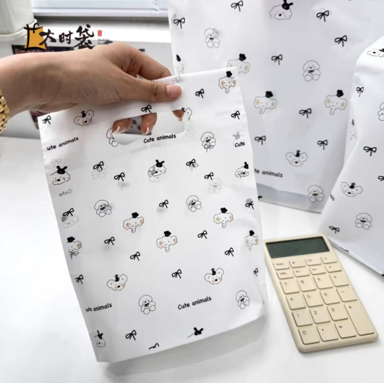 프로스트 푸딩 개 토트 버터 노란색 쇼핑 비닐 봉투 쥬얼리 속옷 화장품 두꺼운 포장 가방스토어 가기