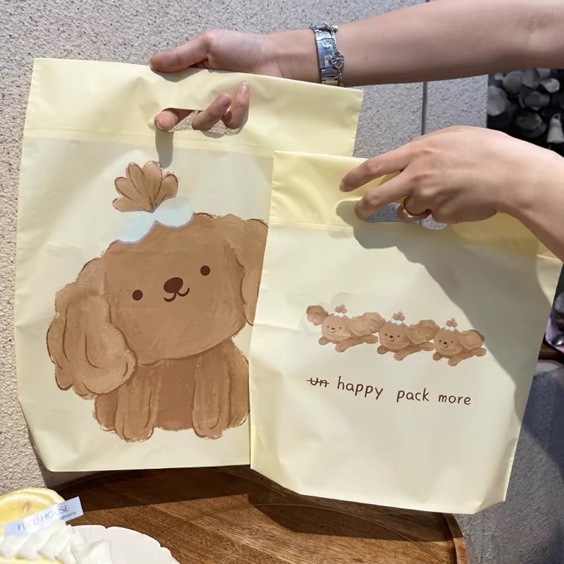프로스트 푸딩 개 토트 버터 노란색 쇼핑 비닐 봉투 쥬얼리 속옷 화장품 두꺼운 포장 가방