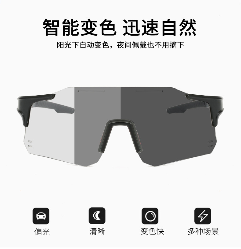 新款日夜两用偏光变色骑行眼镜自行车运动太阳镜男防风登山护目镜