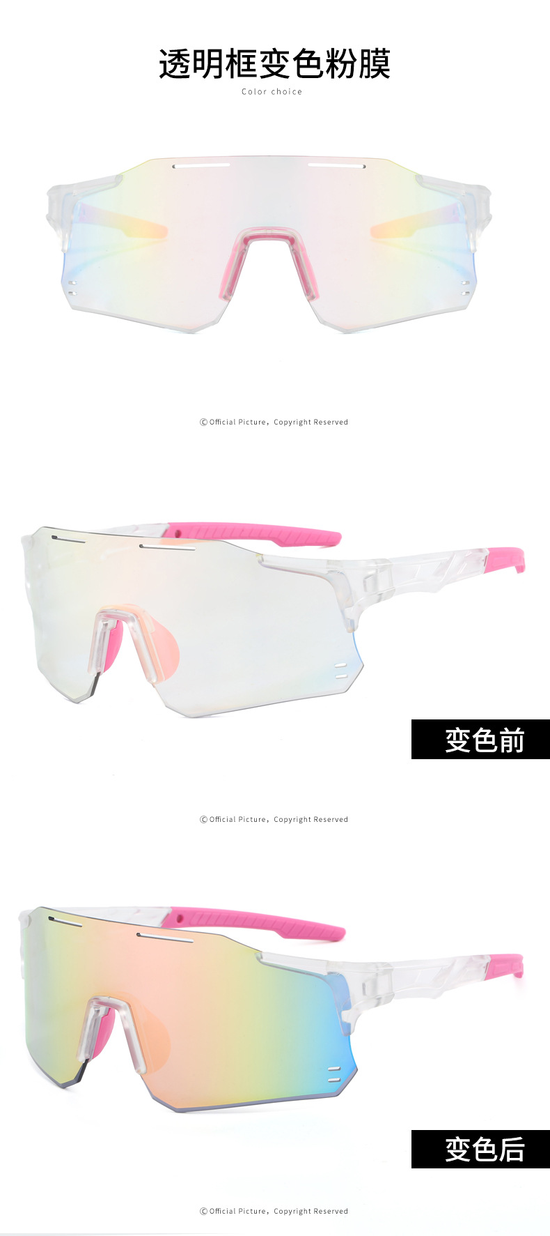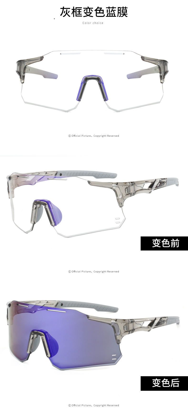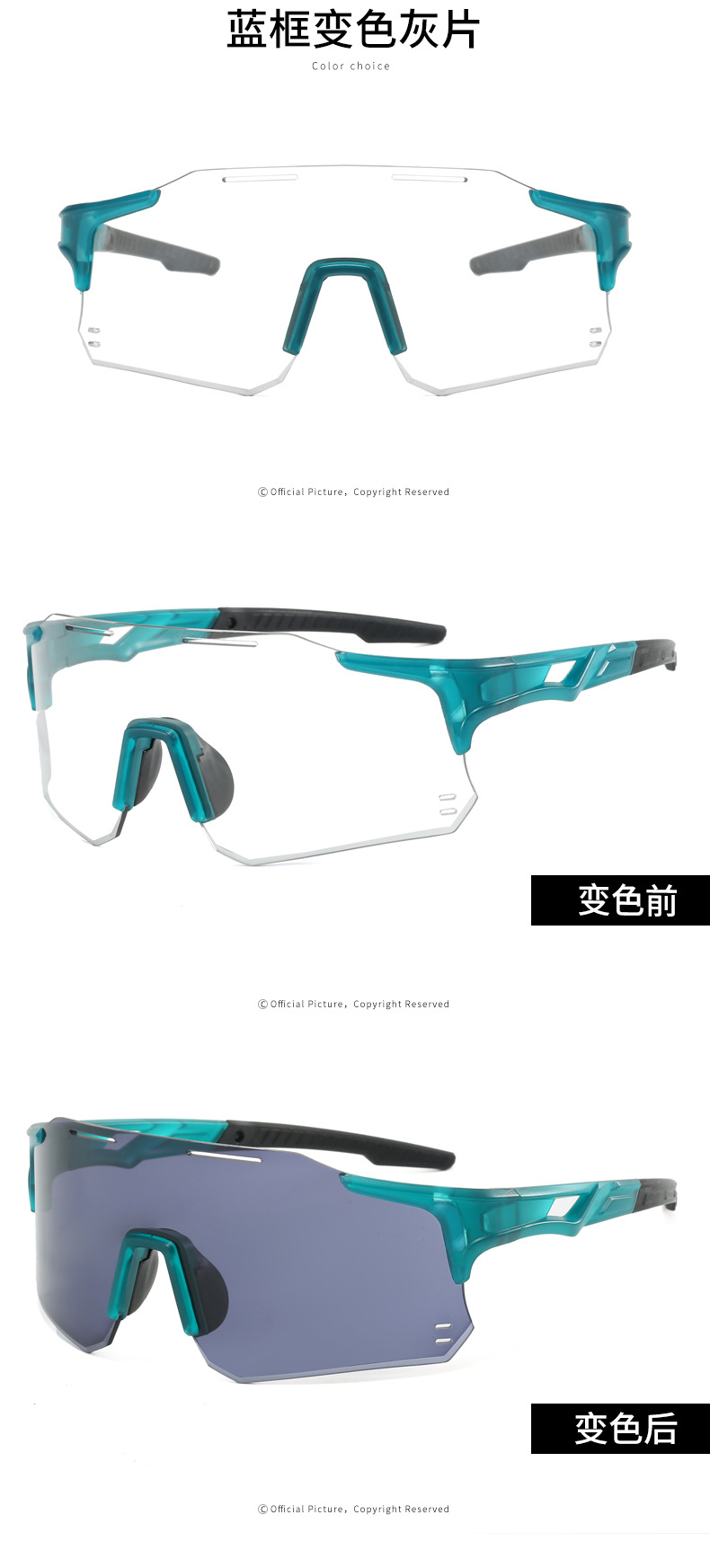 新款户外运动骑行眼镜欧美自行车变色太阳镜男女连体跨境运动墨镜