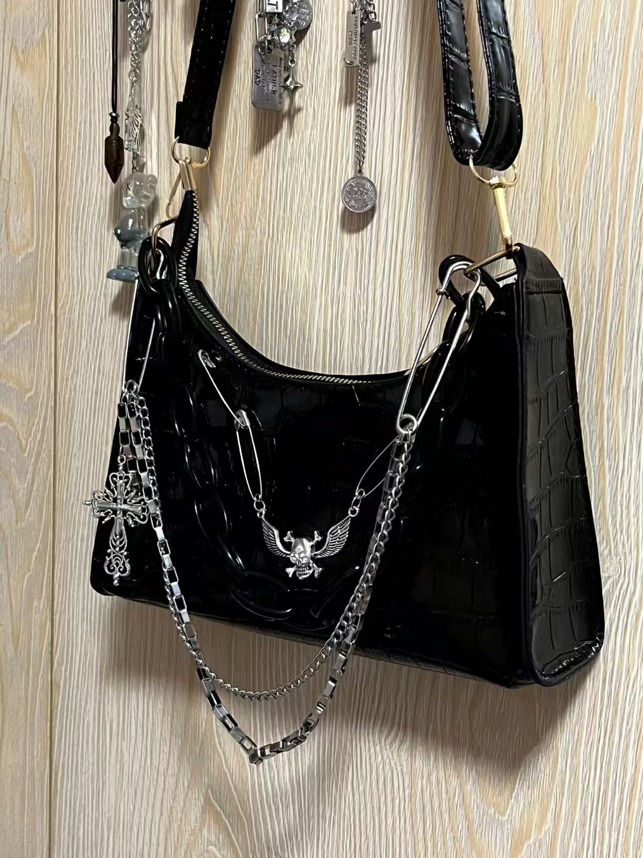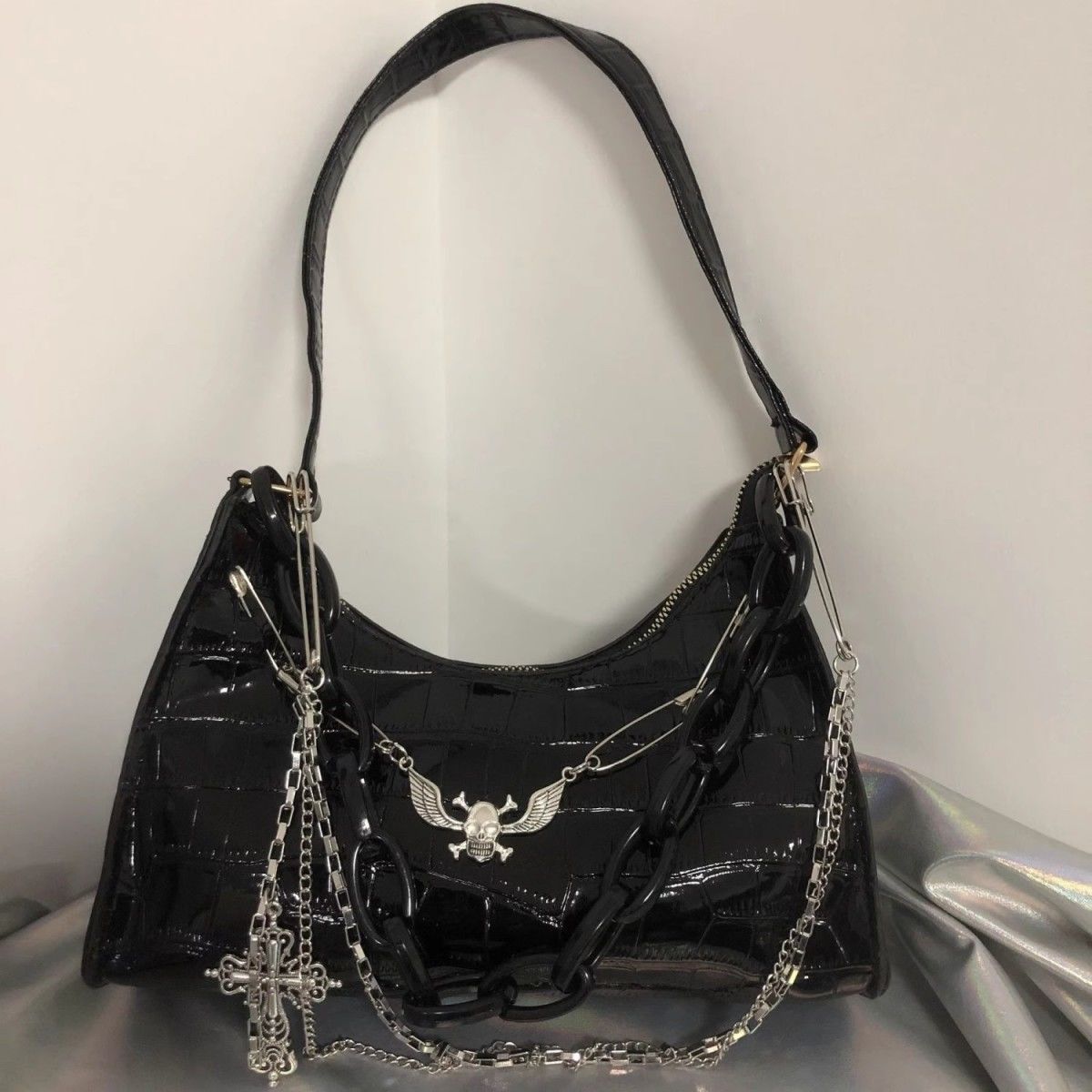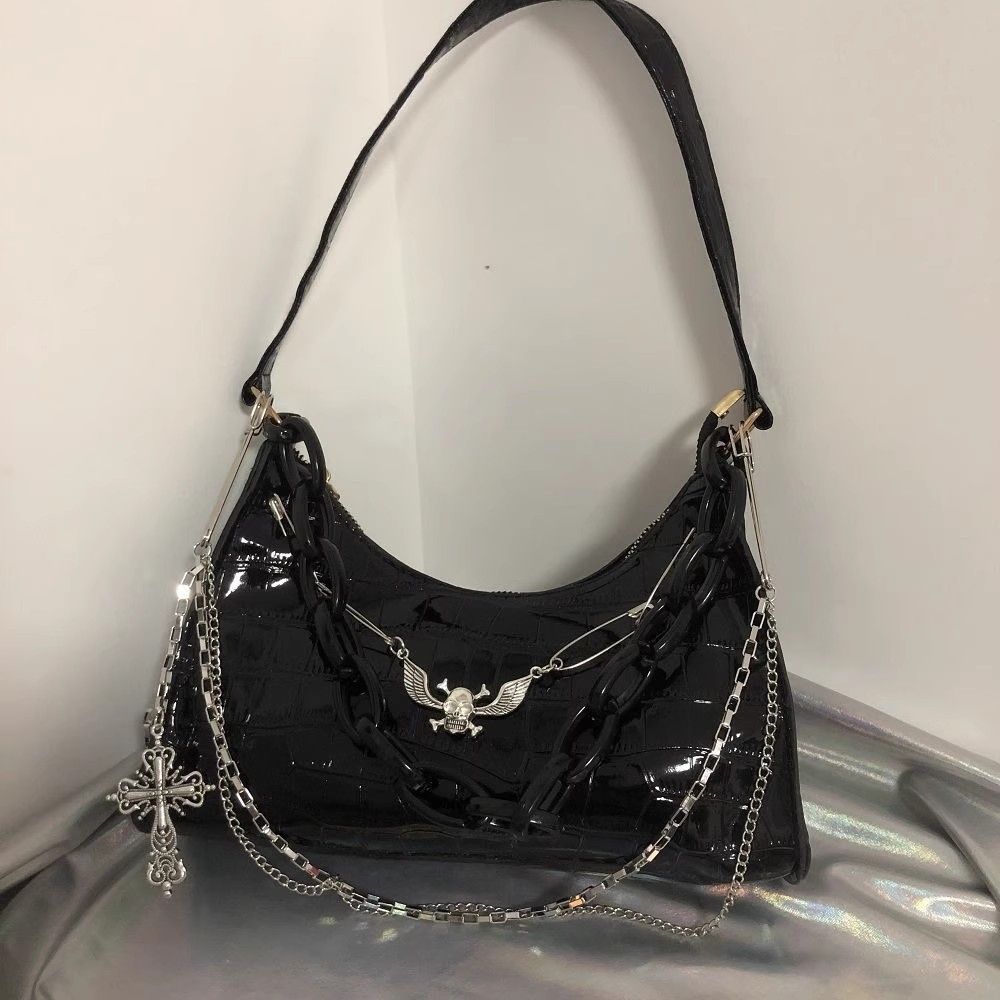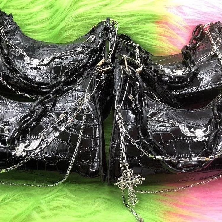 희년 스파이스 소녀 두개골 체인 언더암 가방 크로스 악어 패턴 다크 핸드 숄더 백스토어 가기