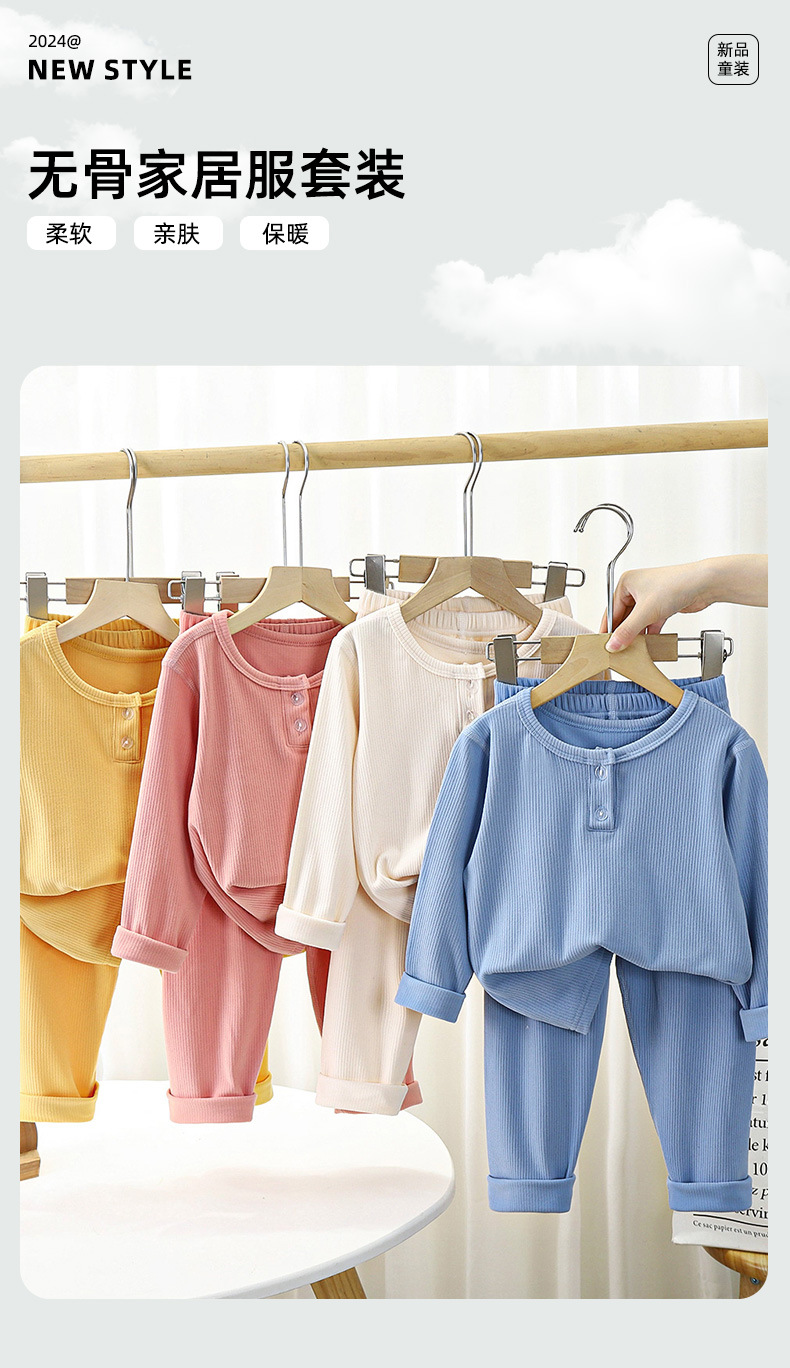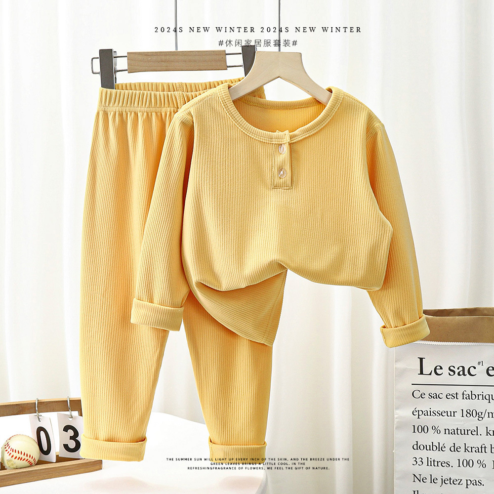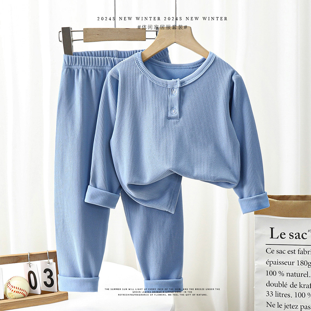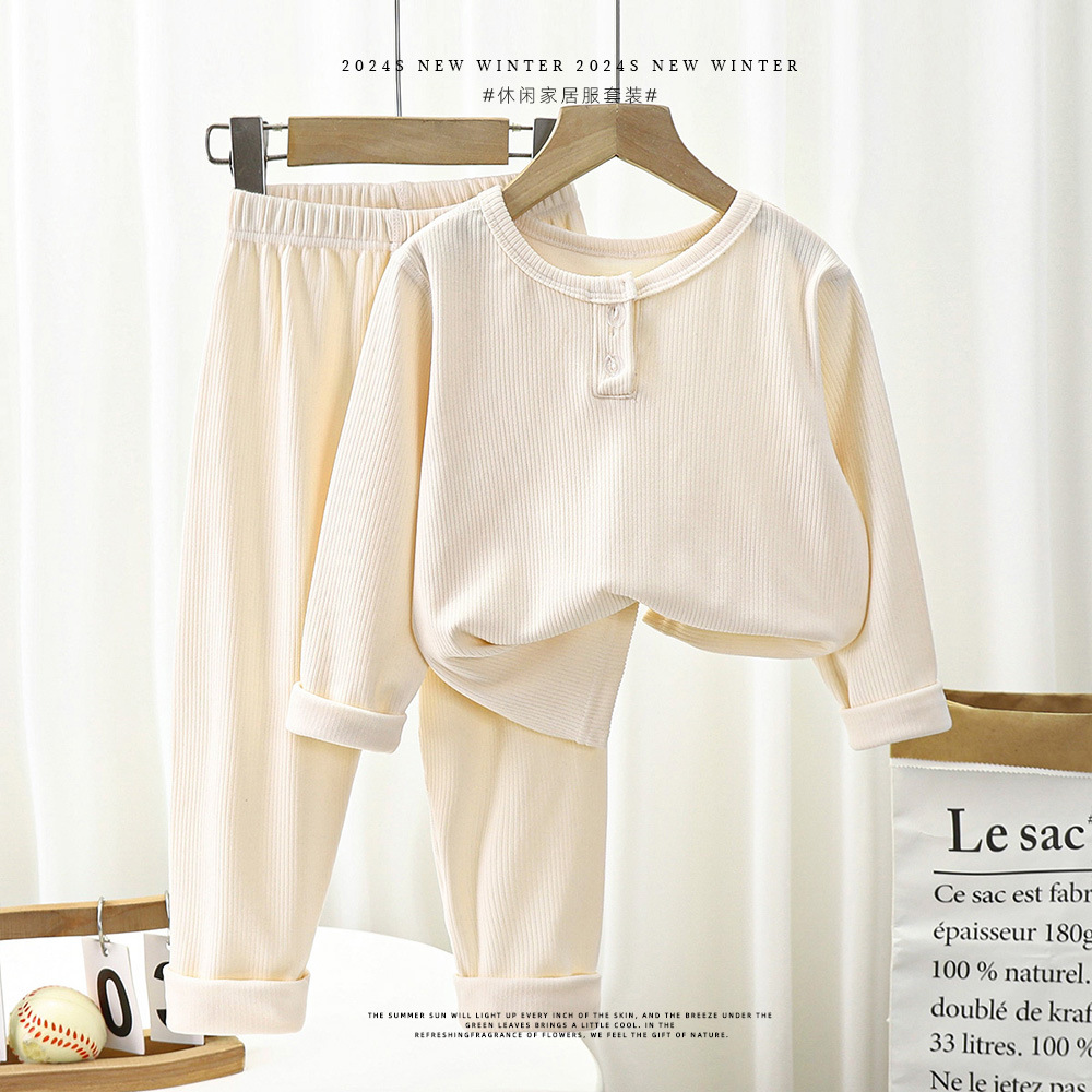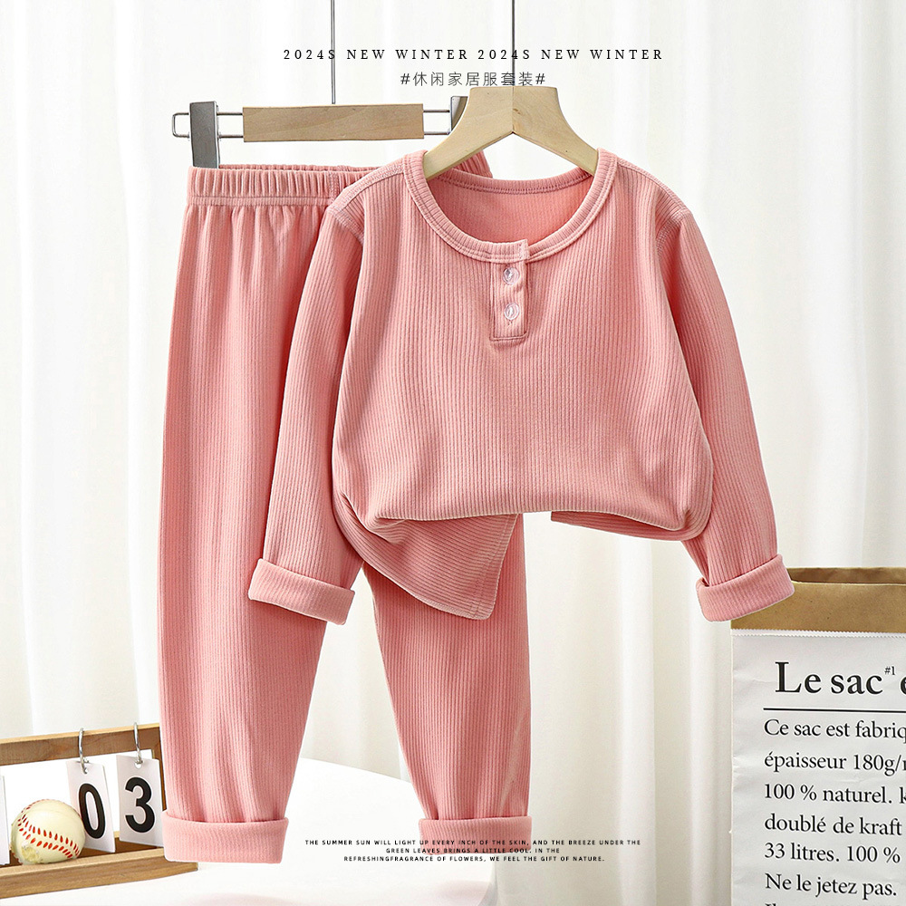 어린이 벨벳 본리스 홈 의류 세트 소녀 가을 옷과 바지 파자마 소년 아기의 열 속옷 2 피스 세트
