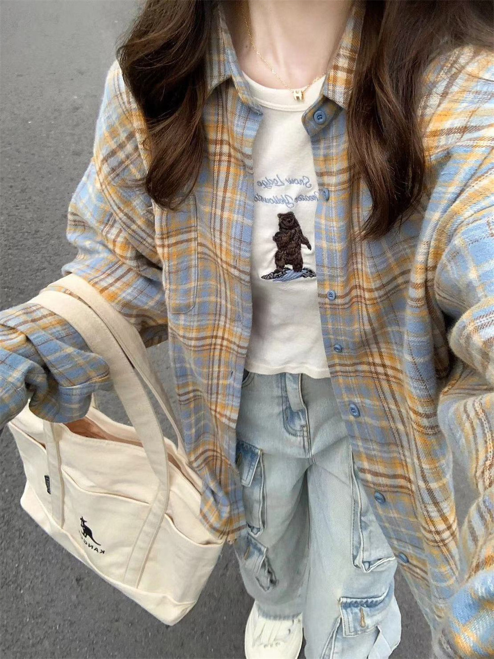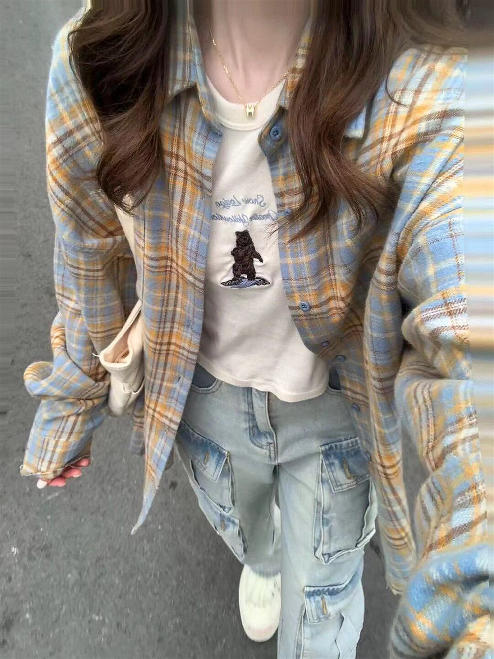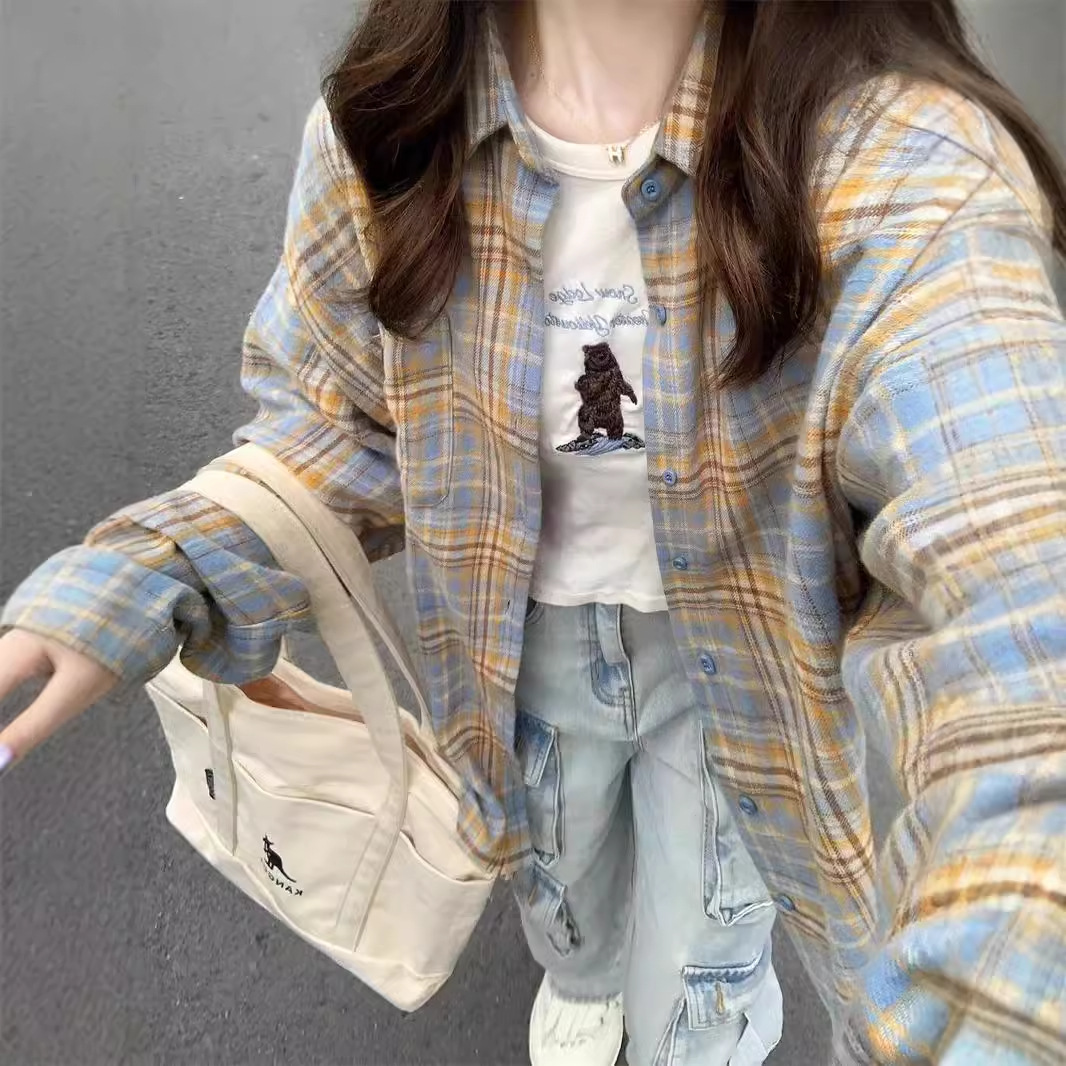 아메리칸 레트로 체크무늬 긴팔 셔츠 여성용 봄, 가을 루즈핏 자외선 차단 캐주얼 셔츠 재킷스토어 가기