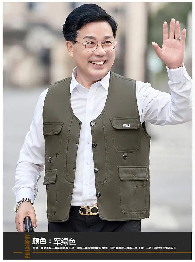 도매 중년 남성 플러스 사이즈 봄과 가을 얇은 멀티 포켓 야외 조끼 아빠 복장스토어 가기