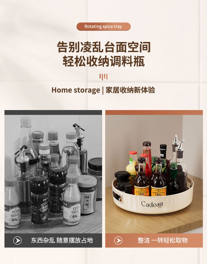 주방 회전 조미료 트레이 다기능 조미료 병 랙 가정용 데스크탑 라운드 플라스틱 저장 트레이 도매스토어 가기