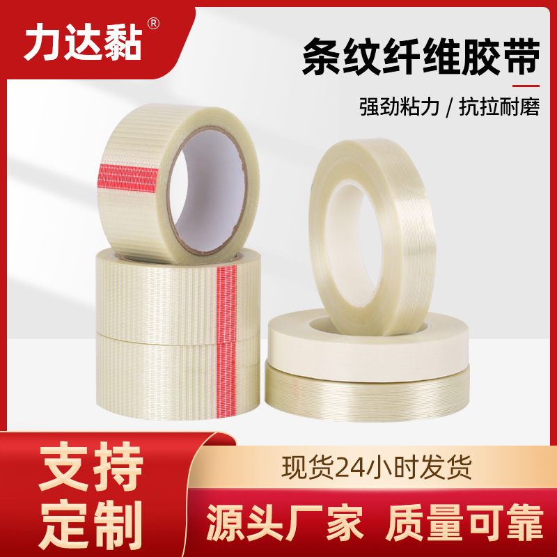 리튬 배터리 포장 및 묶음용 강력한 트레이스리스 메쉬 유리 양면 테이프 제조업체의 크로스보더 스트라이프 섬유 테이프