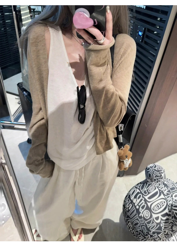 Queen Moxi 동남 아시아 회색 니트 카디건 초가을 작은 코트 여성 게으른 얇은 양복 조끼 62602