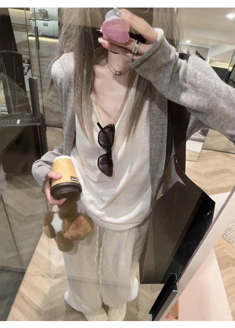 Queen Moxi 동남 아시아 회색 니트 카디건 초가을 작은 코트 여성 게으른 얇은 양복 조끼 62602스토어 가기
