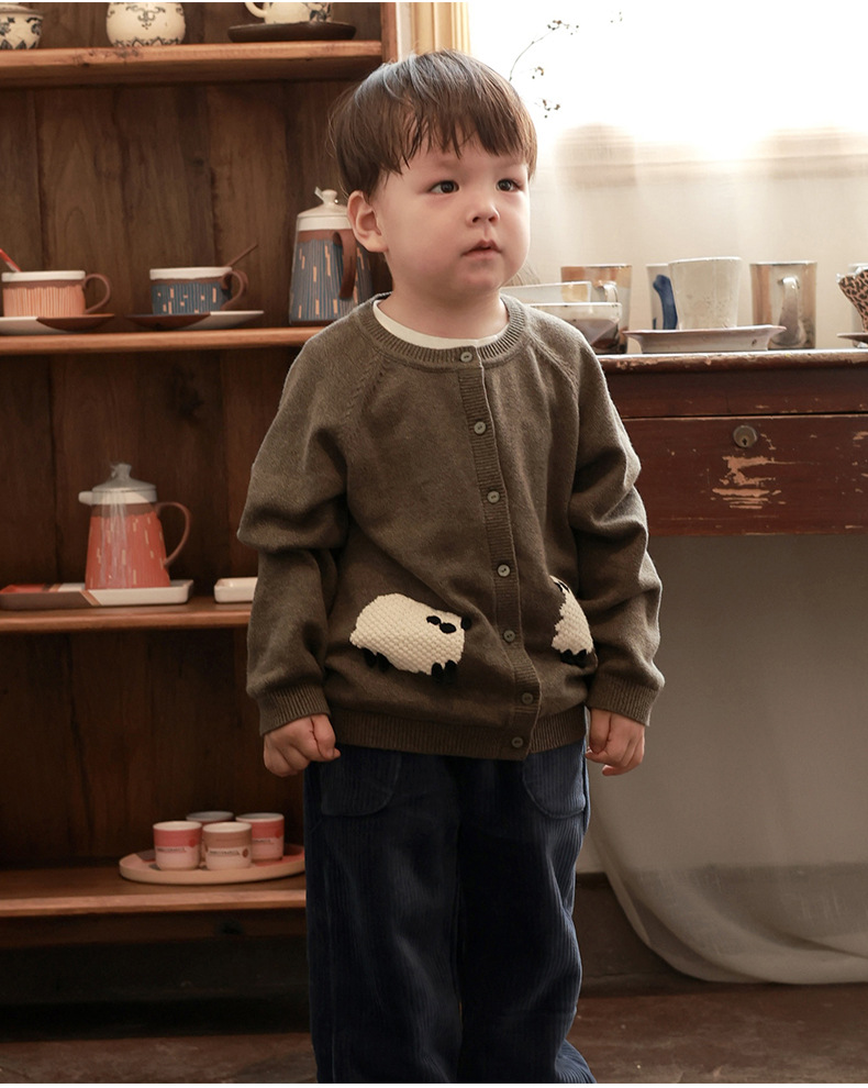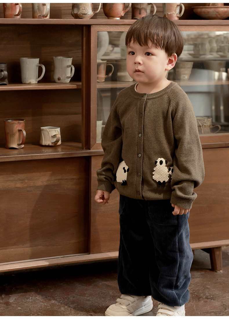어린이 카디건 스웨터 2025 유럽과 미국의 가을, 겨울 동물 자수 탑 소년과 소녀 아기 아동 의류 재킷스토어 가기