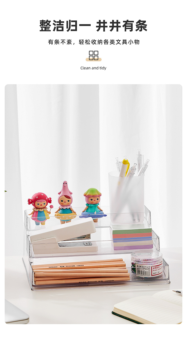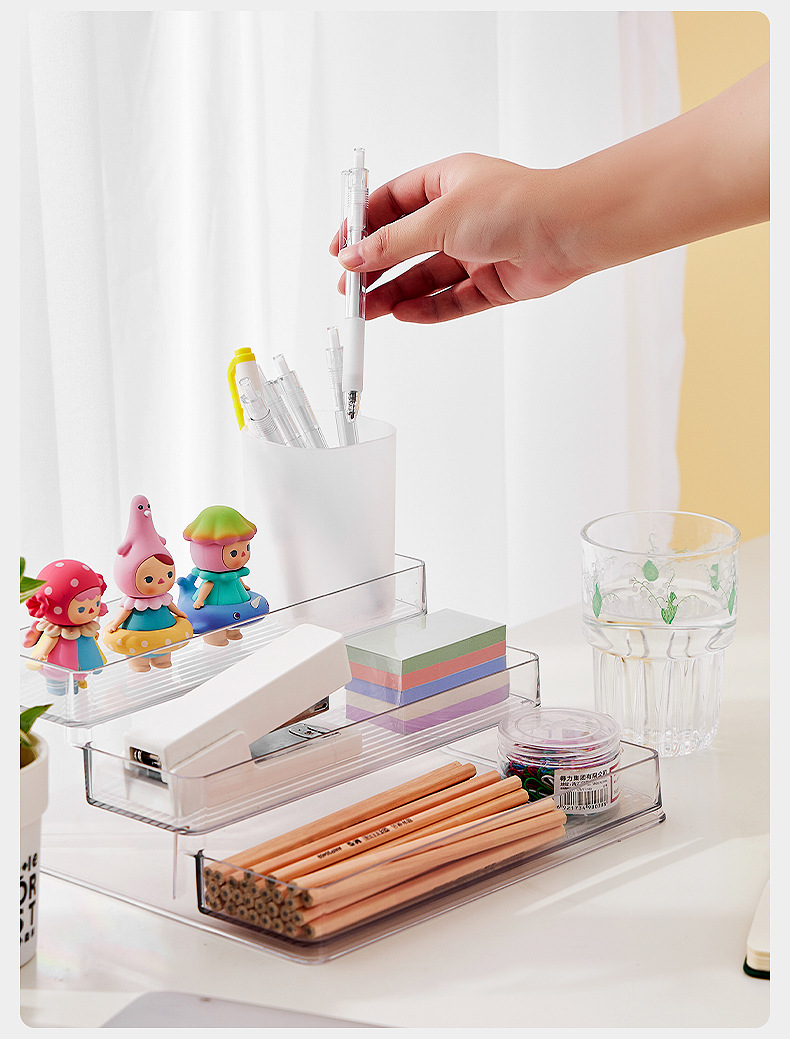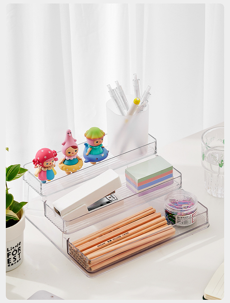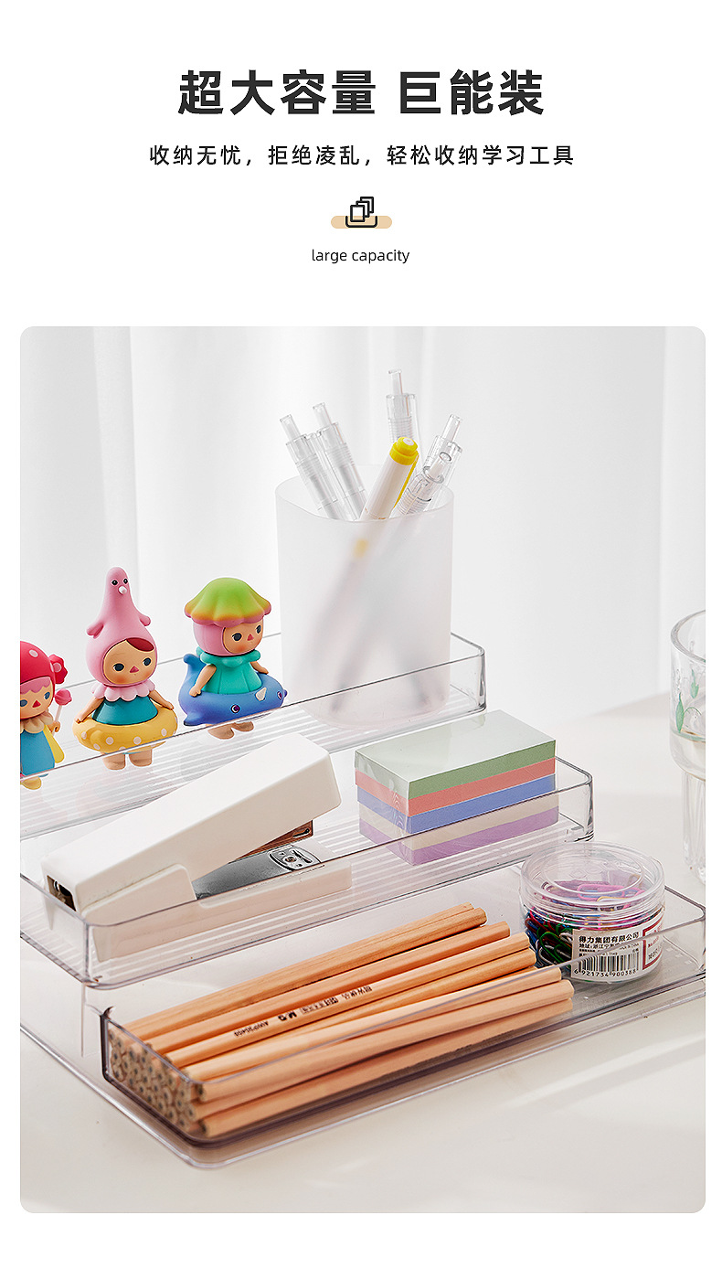 스테핑 된 PET 선반 데스크탑 잡화는 저장 상자 식품 학년 대용량 학생 문구가 상자를 조직합니다.