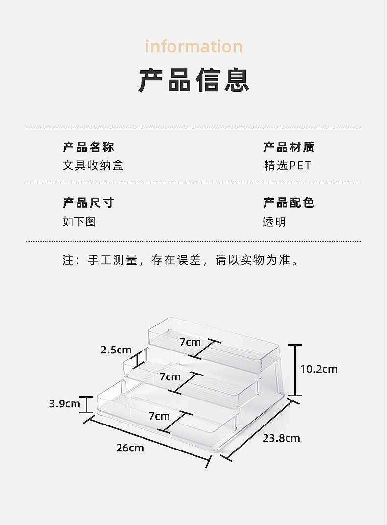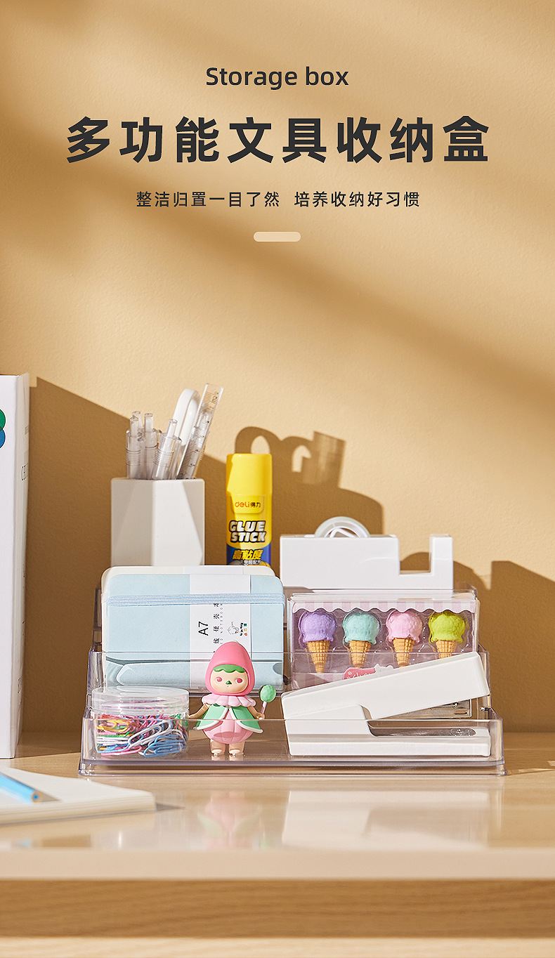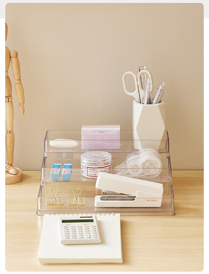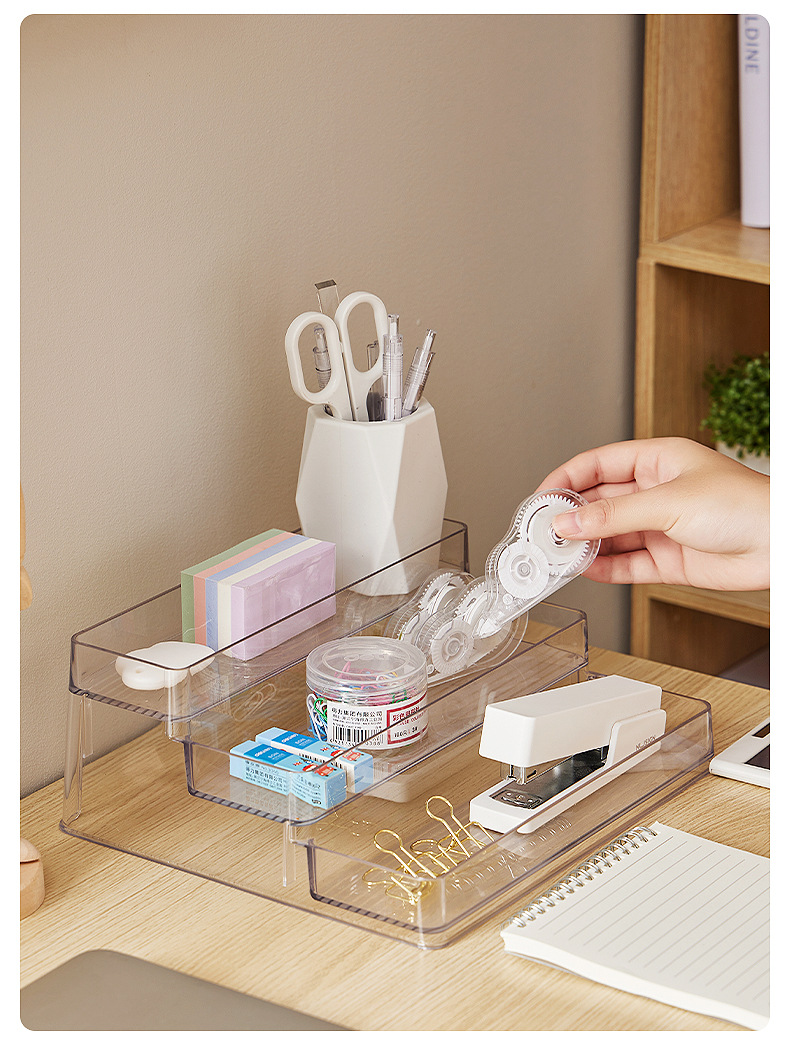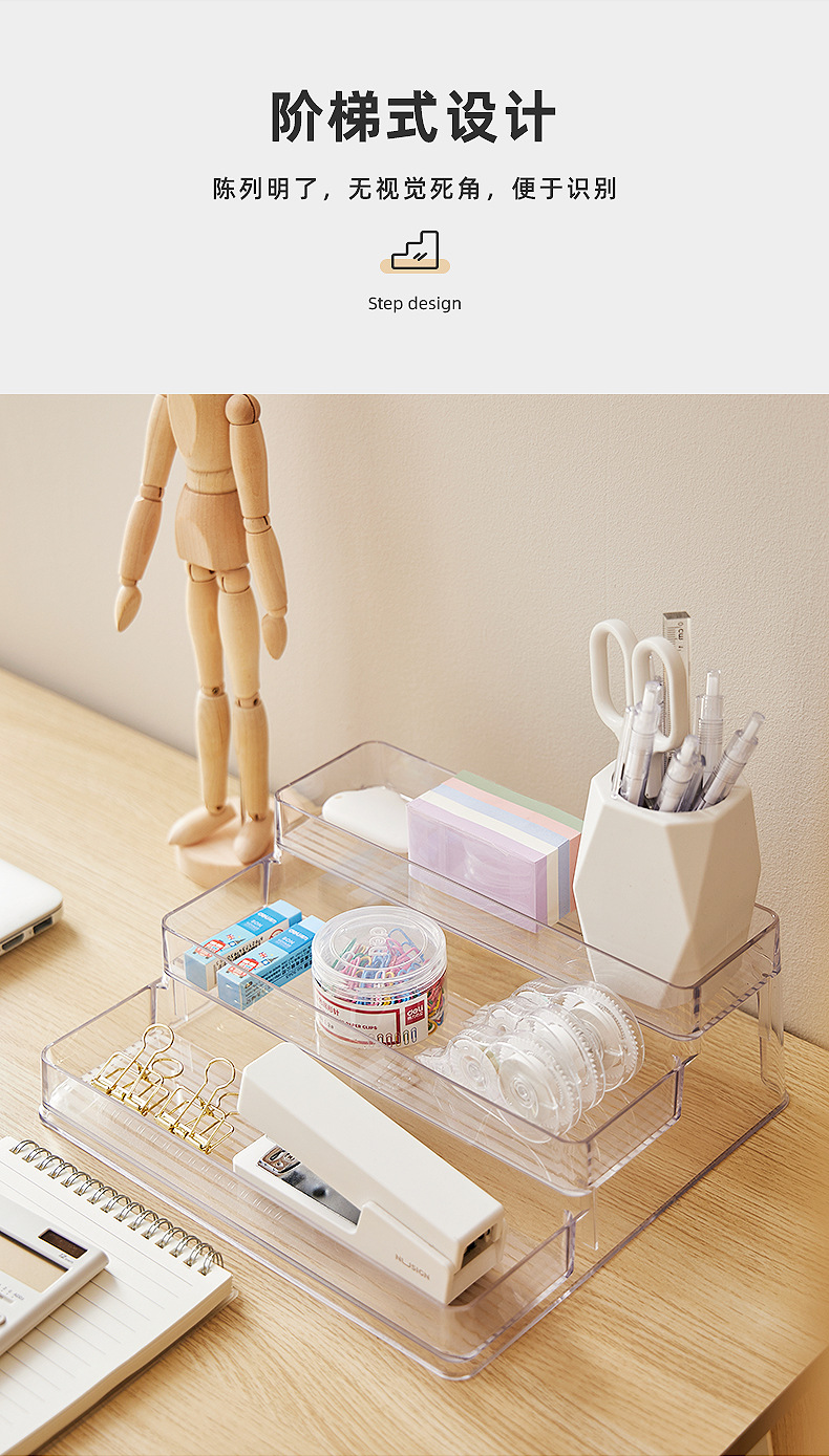 스테핑 된 PET 선반 데스크탑 잡화는 저장 상자 식품 학년 대용량 학생 문구가 상자를 조직합니다.