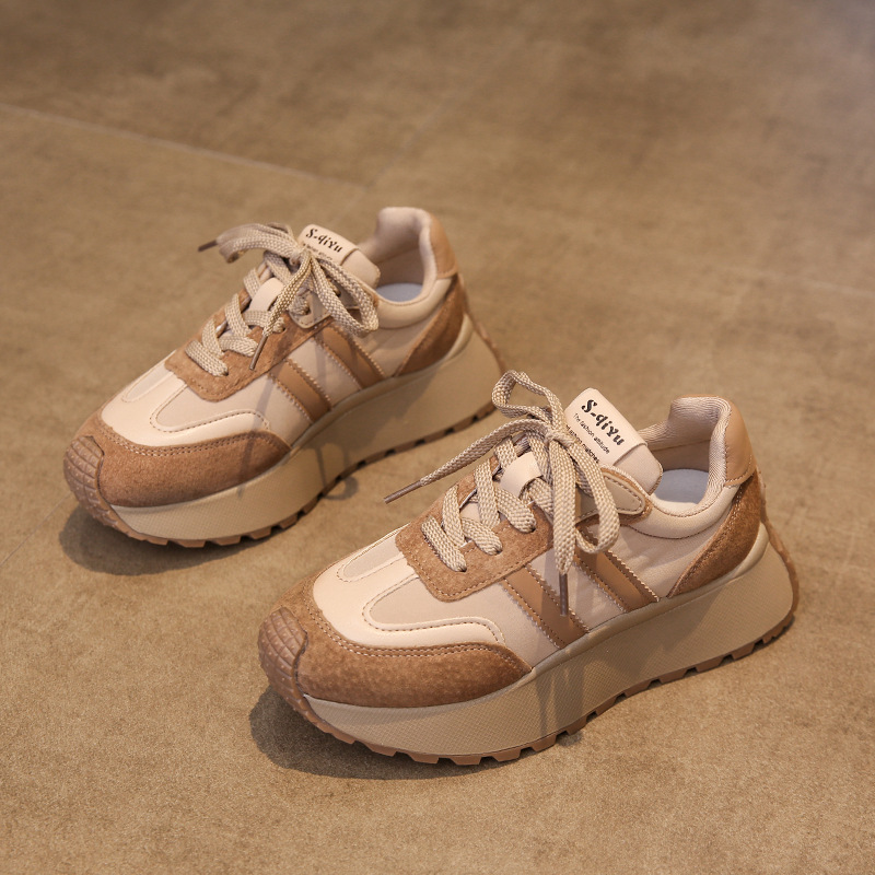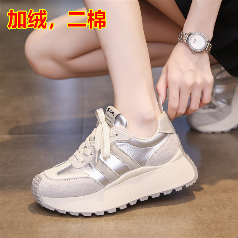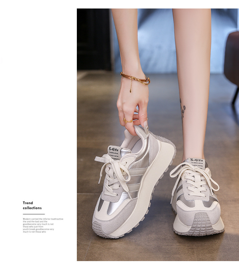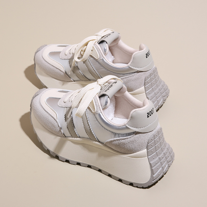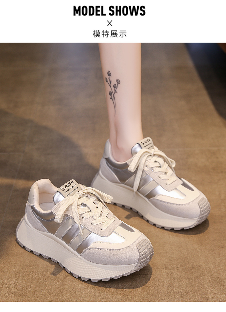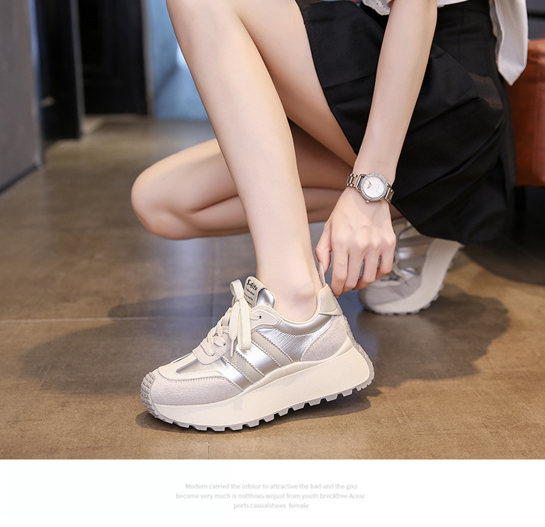 여성 플랫폼 캐주얼 신발 와플 포레스트 검프 신발 여성의 2024 새로운 가을 싱글 레이어 신발 여성의 증가 스포츠 실버 토레 신발스토어 가기