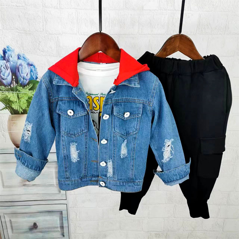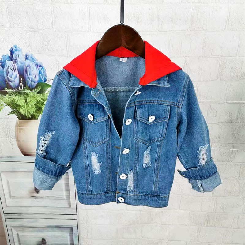 남아의 봄 가을 후드 데님 재킷 어린이 한국 캐주얼 편지 찢어진 재킷 카디건 탑스토어 가기