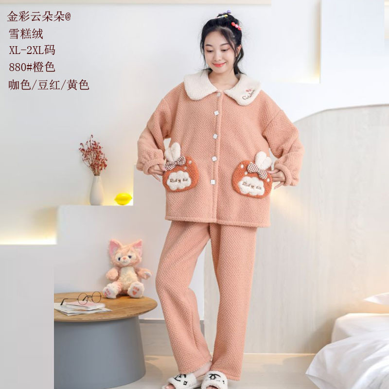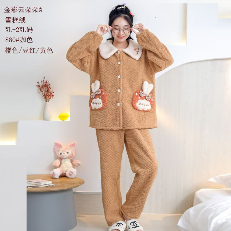 플래넬 캐시미어 눈송이 벨벳 홈웨어 패션 따뜻한 24 새로운 여성 섬 벨벳 캐주얼 파자마스토어 가기