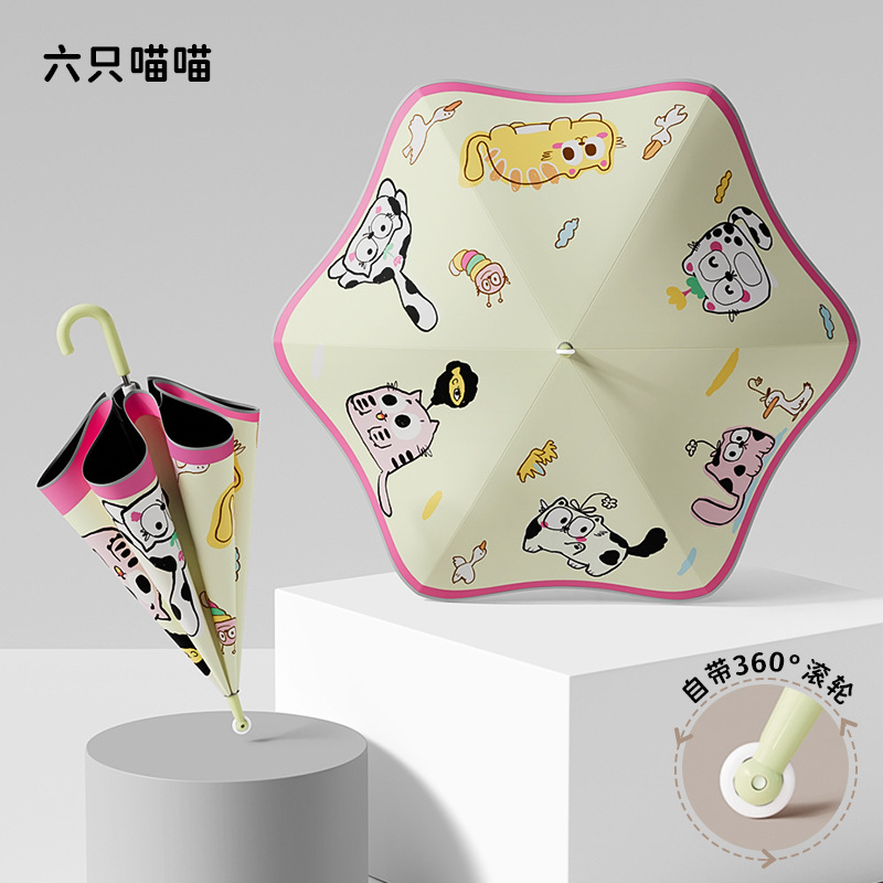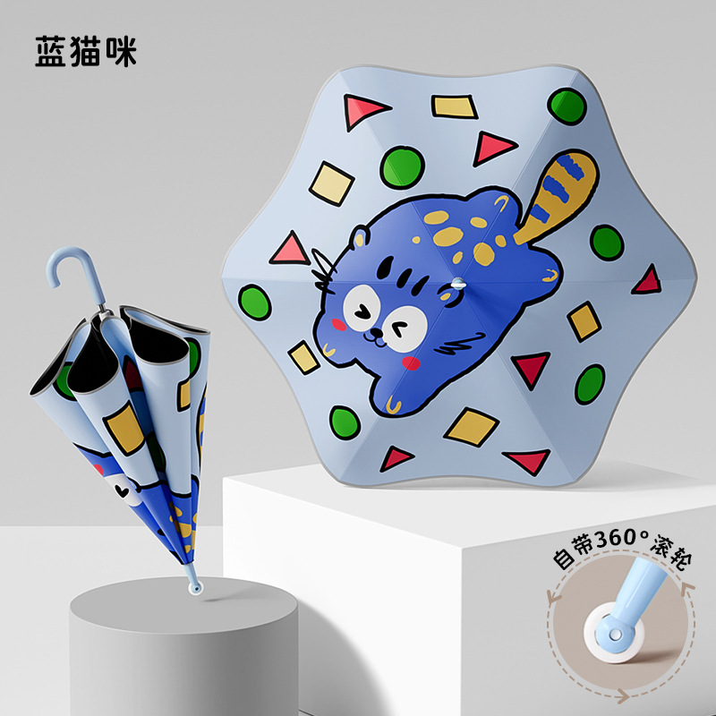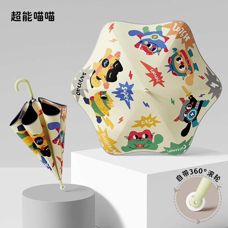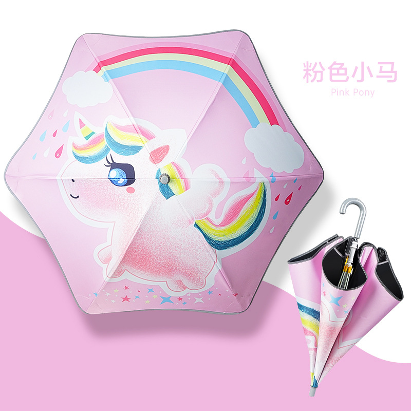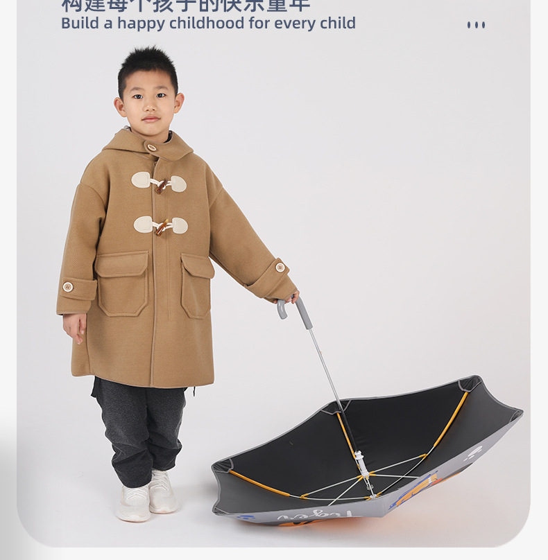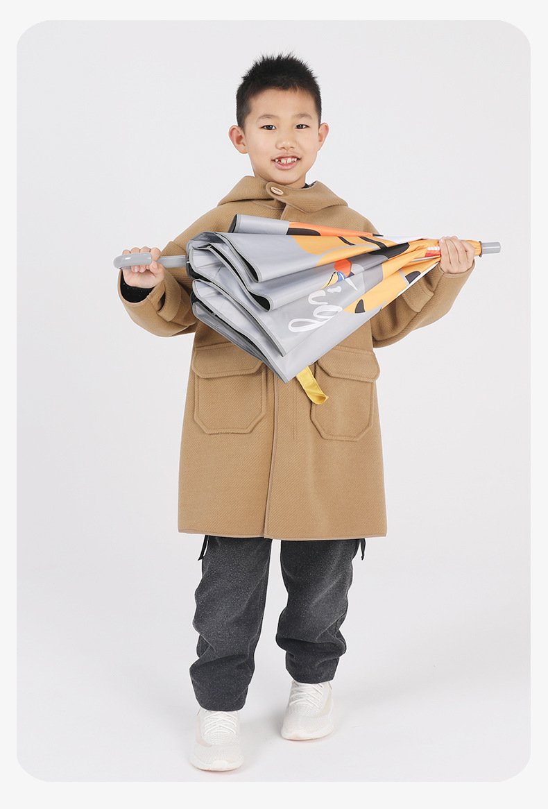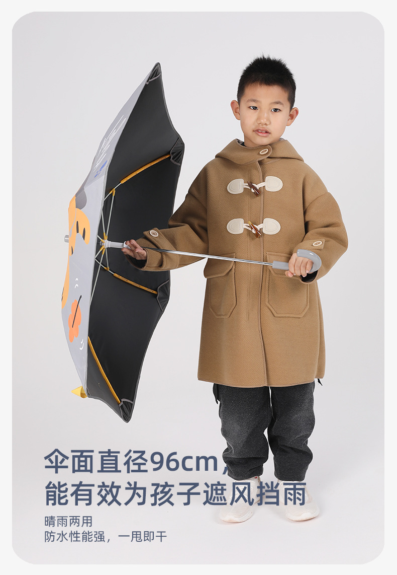 필렛 어린이 검은 우산 소년 초등학교 어린이 아기 유치원 소년 소녀 학교 작은 우산 긴 손잡이 특별
