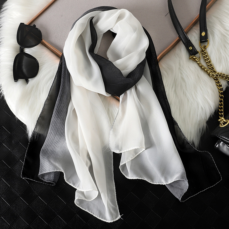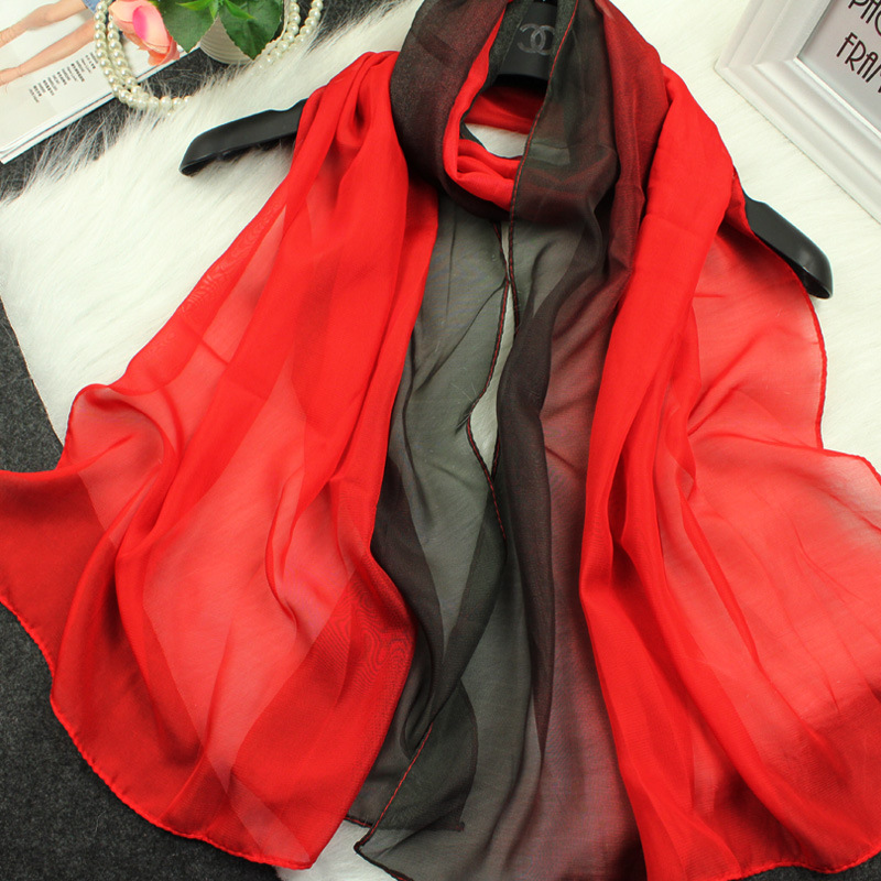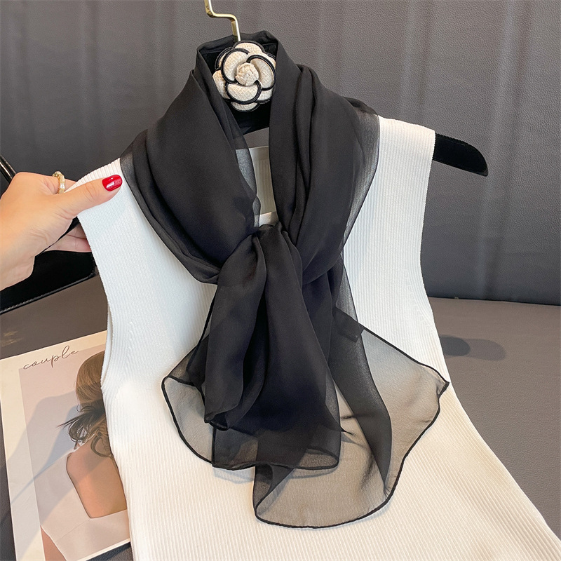 국경 간 실크 스카프 블랙 쉬폰 새로운 스카프 솔리드 컬러 레드 스카프 SCARF 여성용 작은 긴 스카프 2024 새로운스토어 가기