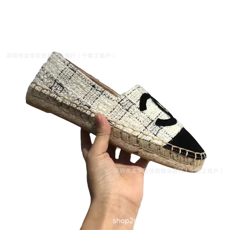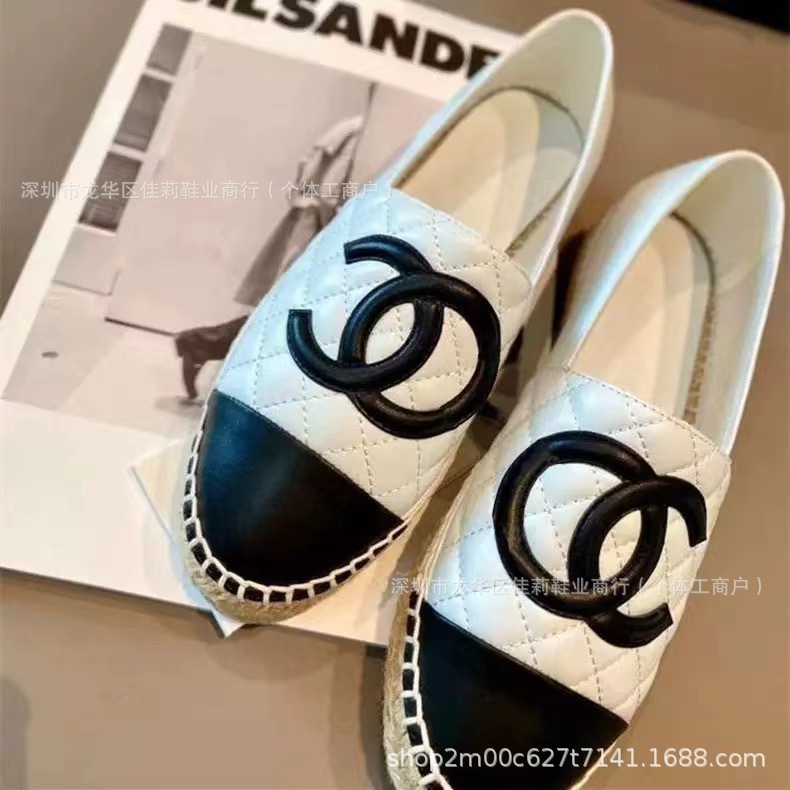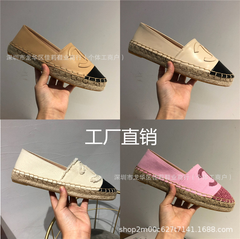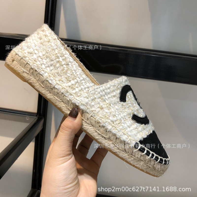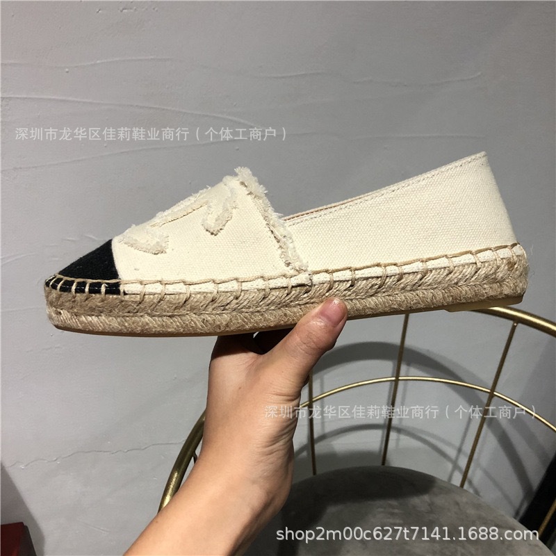 하이 버전 더블 C Xiaoxiang Granny 수제 어부 신발 여성의 2024 새로운 게으른 한 페달 Cowhide 캔버스 두꺼운 바닥